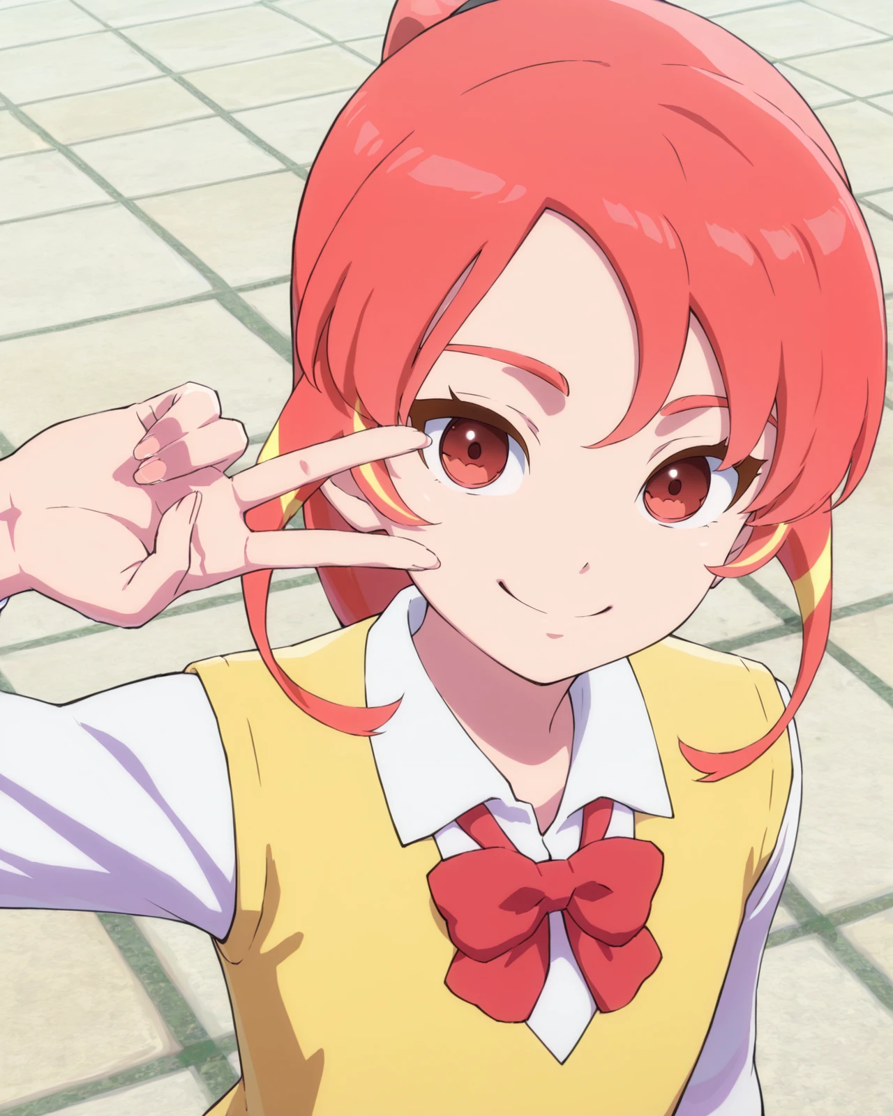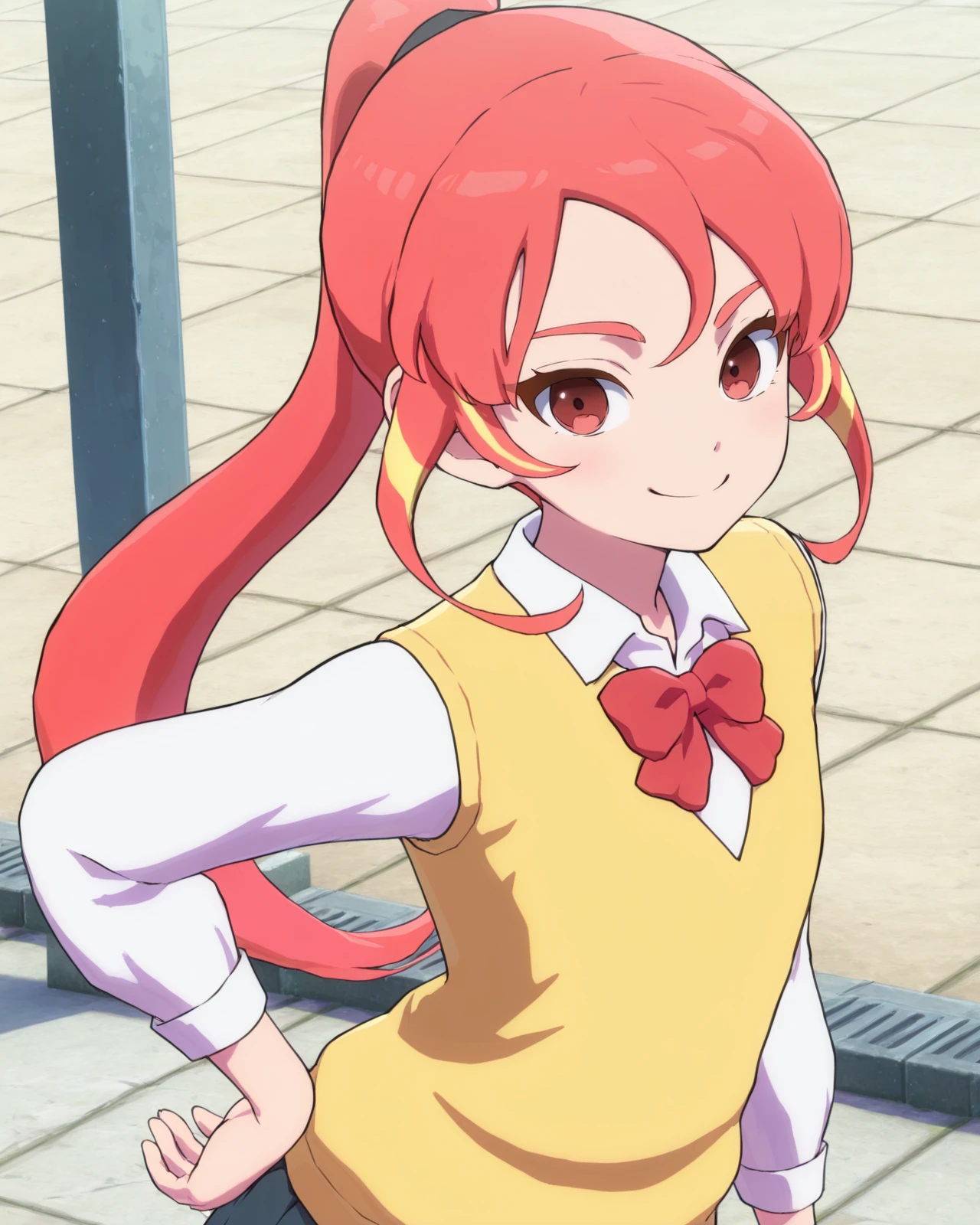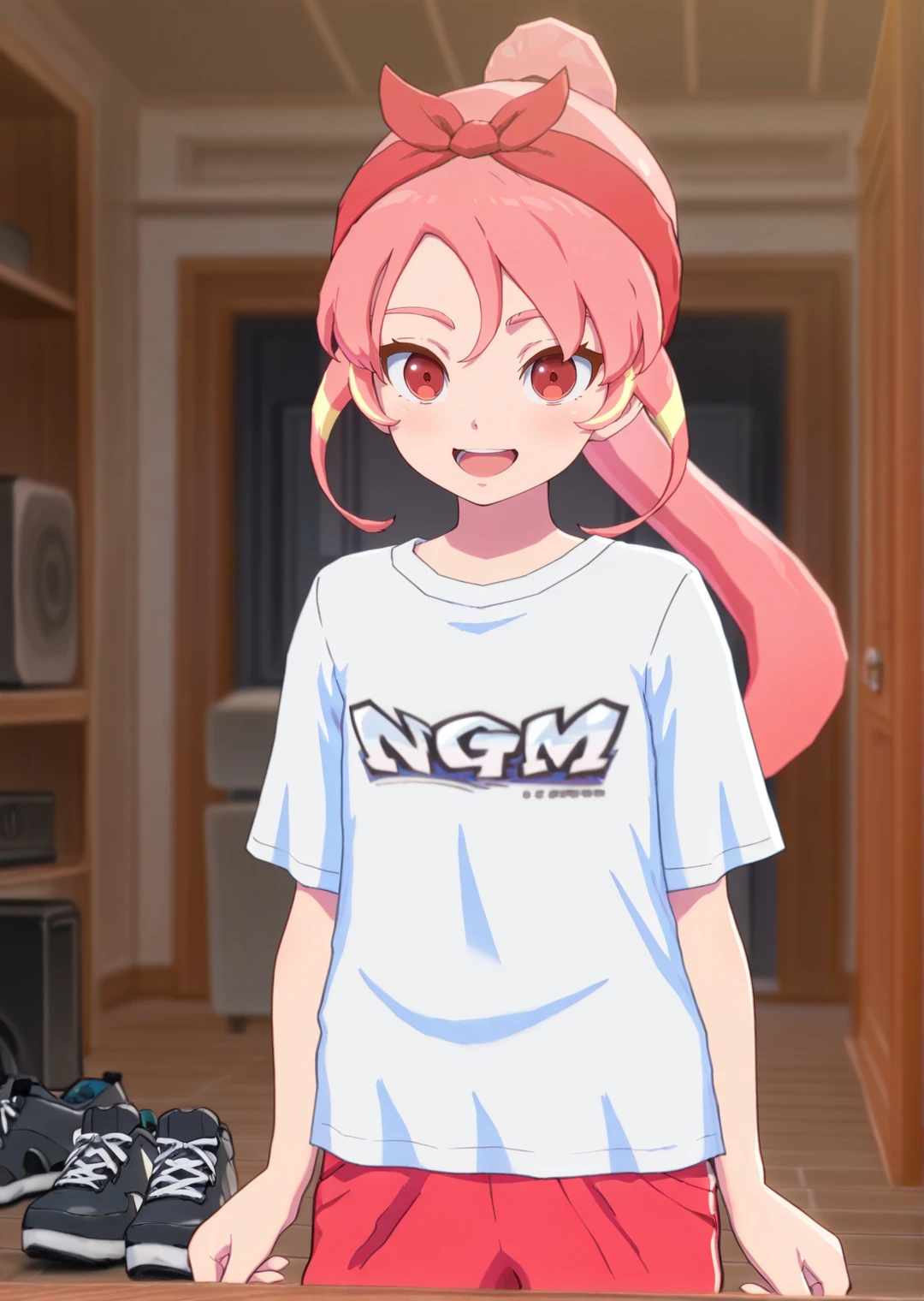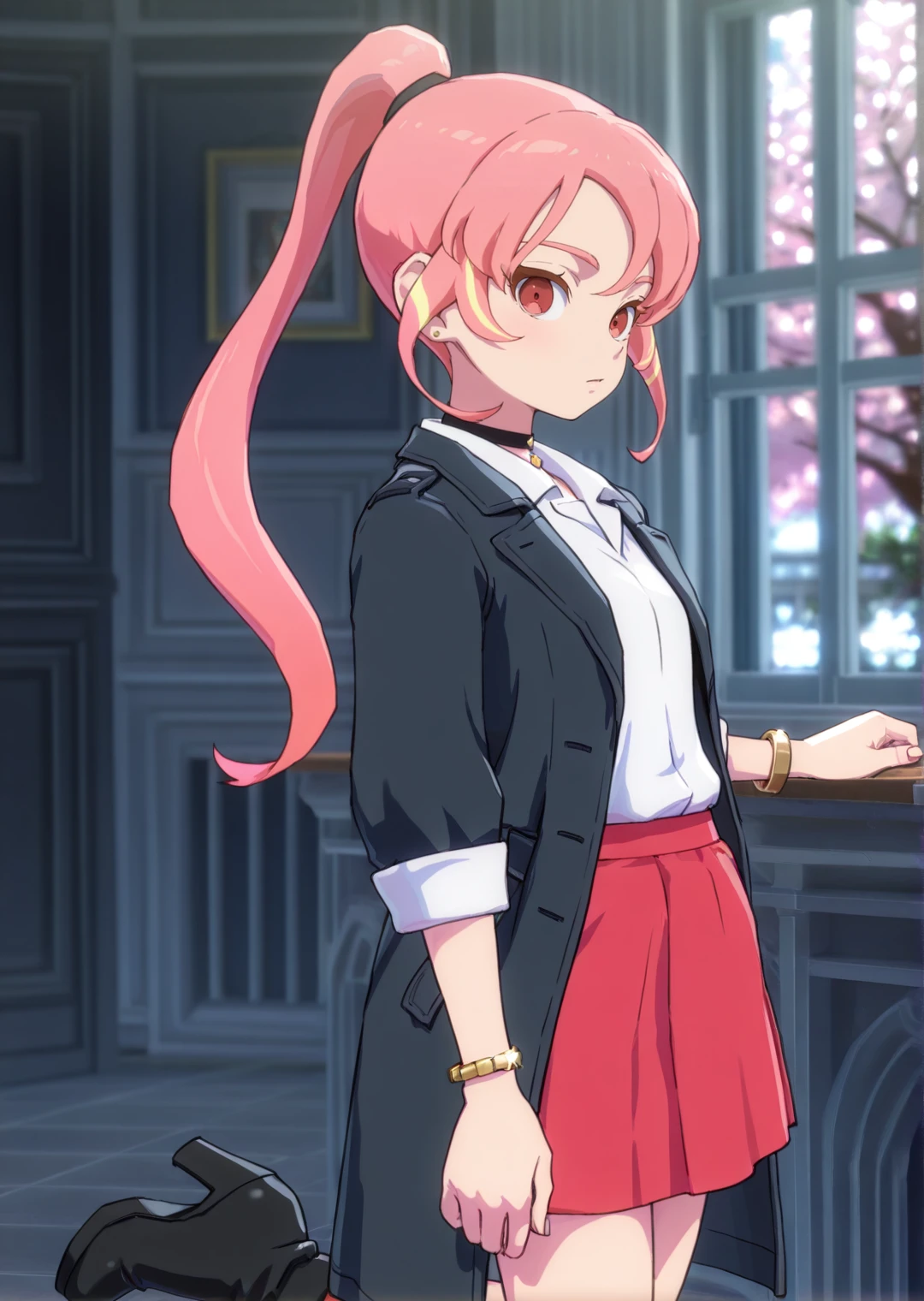 shinohara_raika, 1girl, long hair, ponytail, red eyes, pink hair, multicolored hair