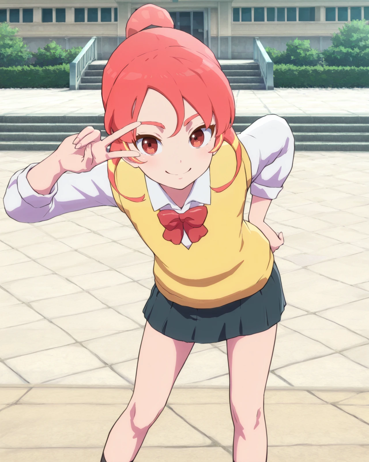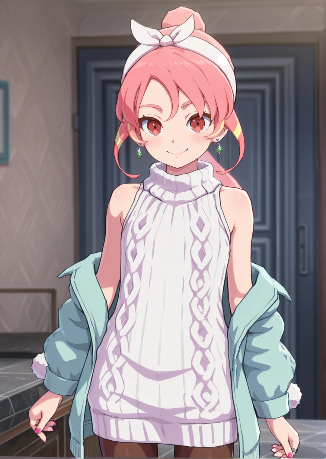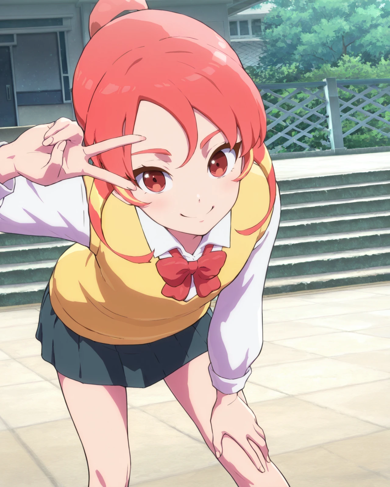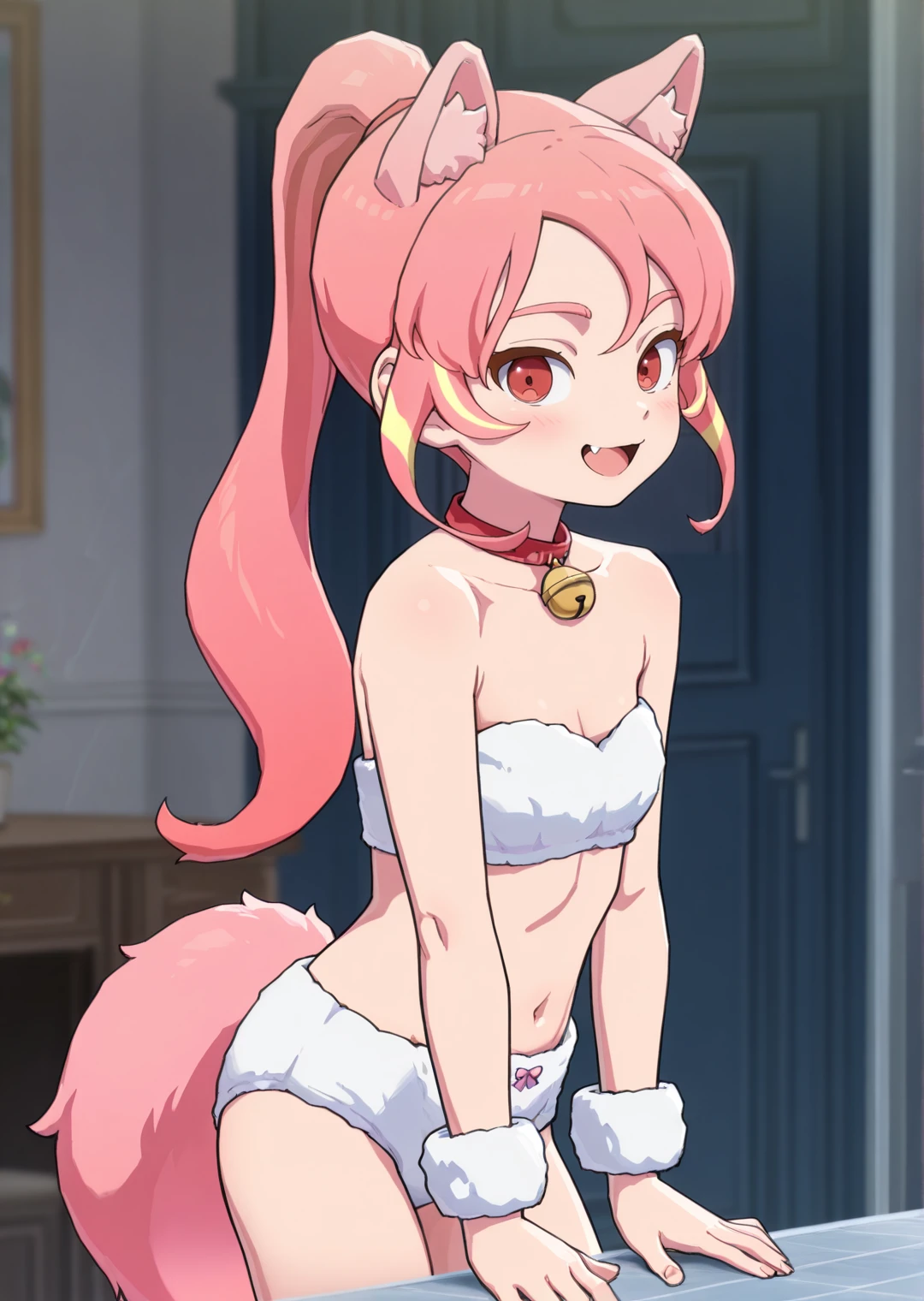 shinohara_raika, 1girl, long hair, ponytail, red eyes, pink hair, multicolored hair