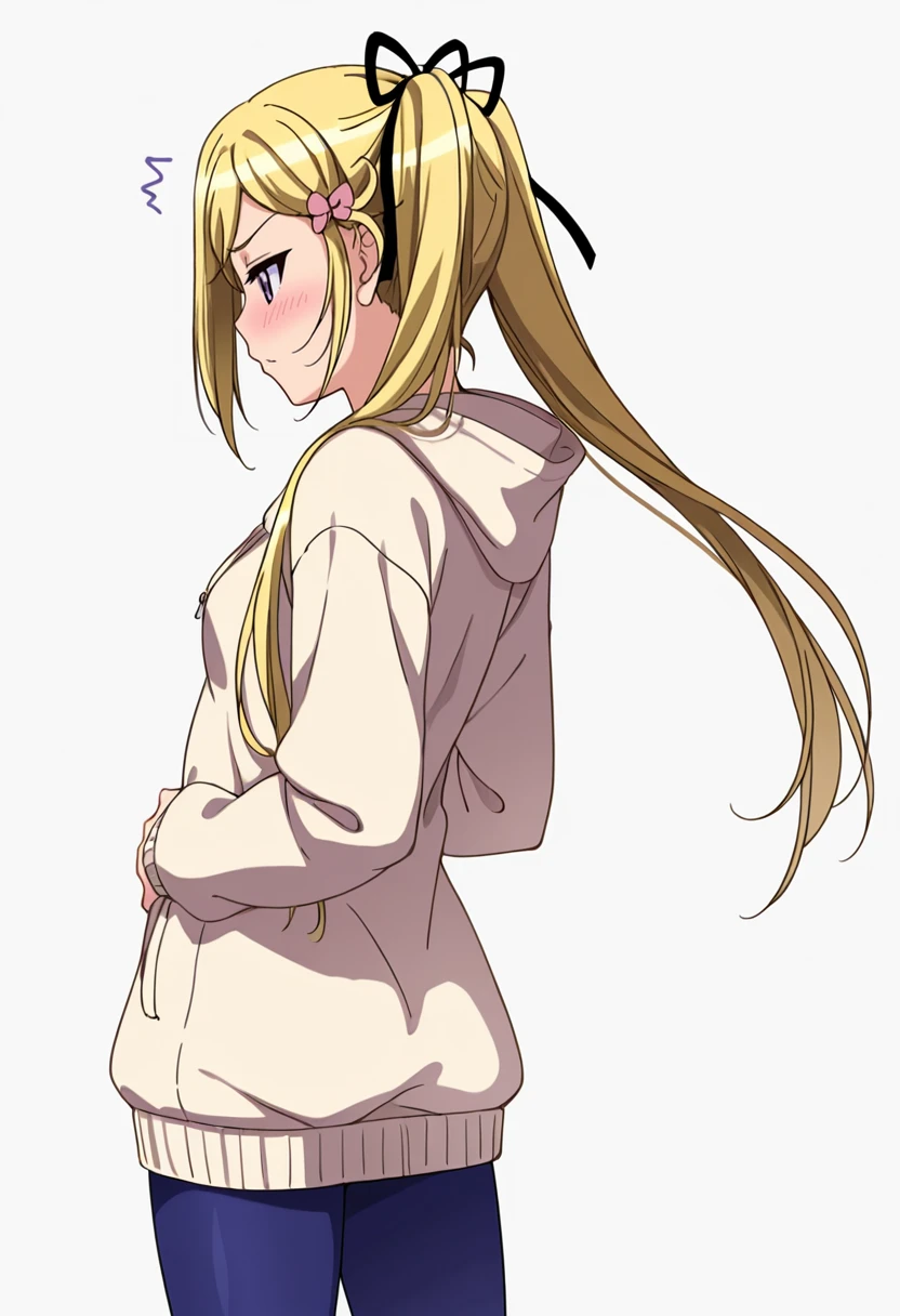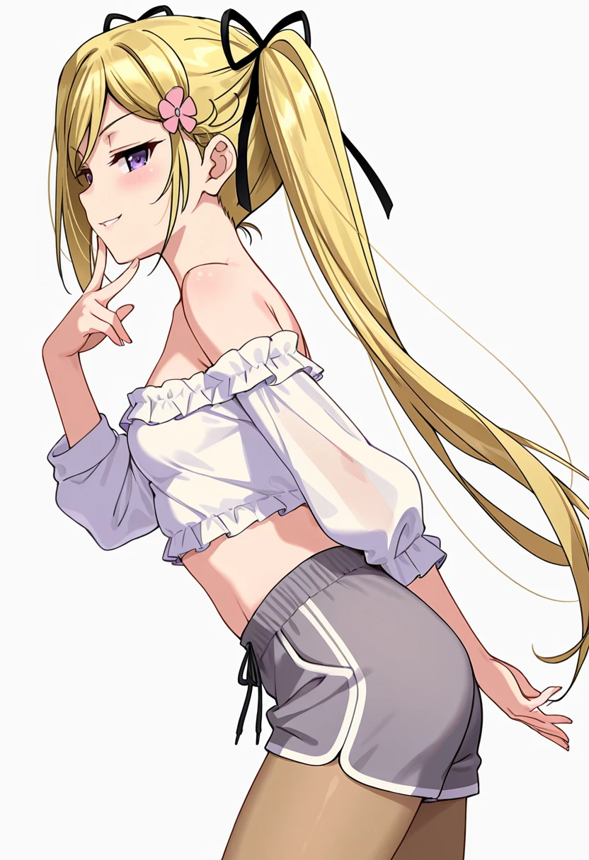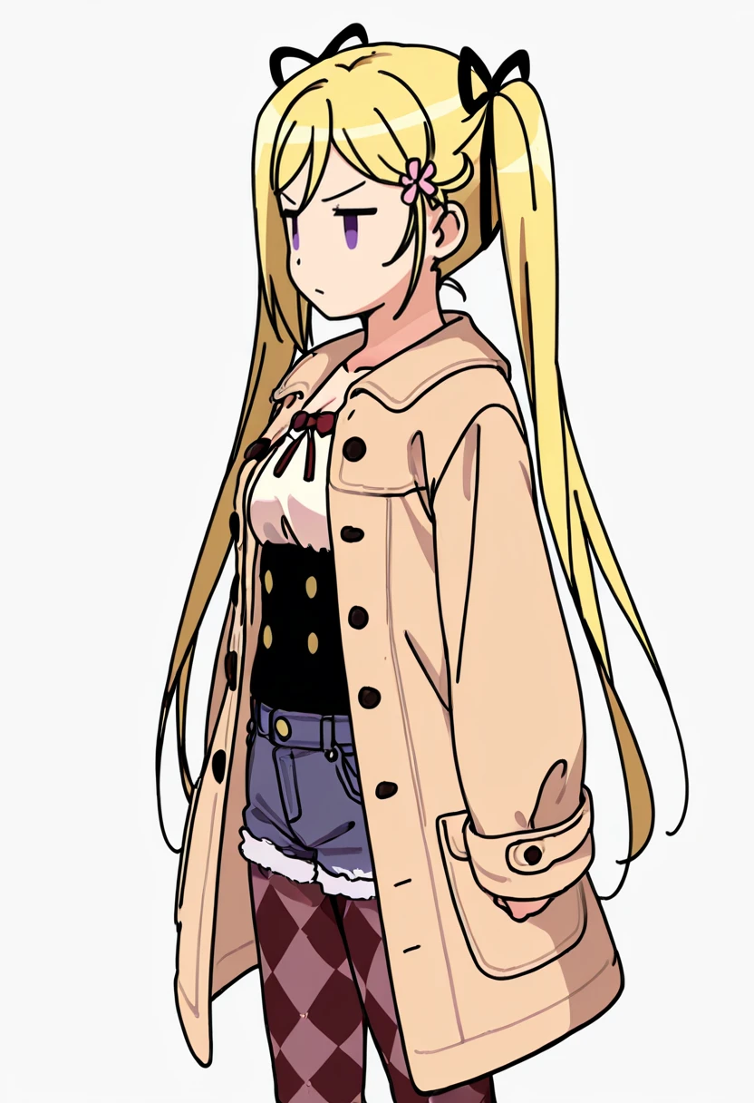 mafuyu_cnr, 1girl, blonde hair, twintails, long hair, purple eyes,small ???????, hair ribbon,👗Signature Outfit