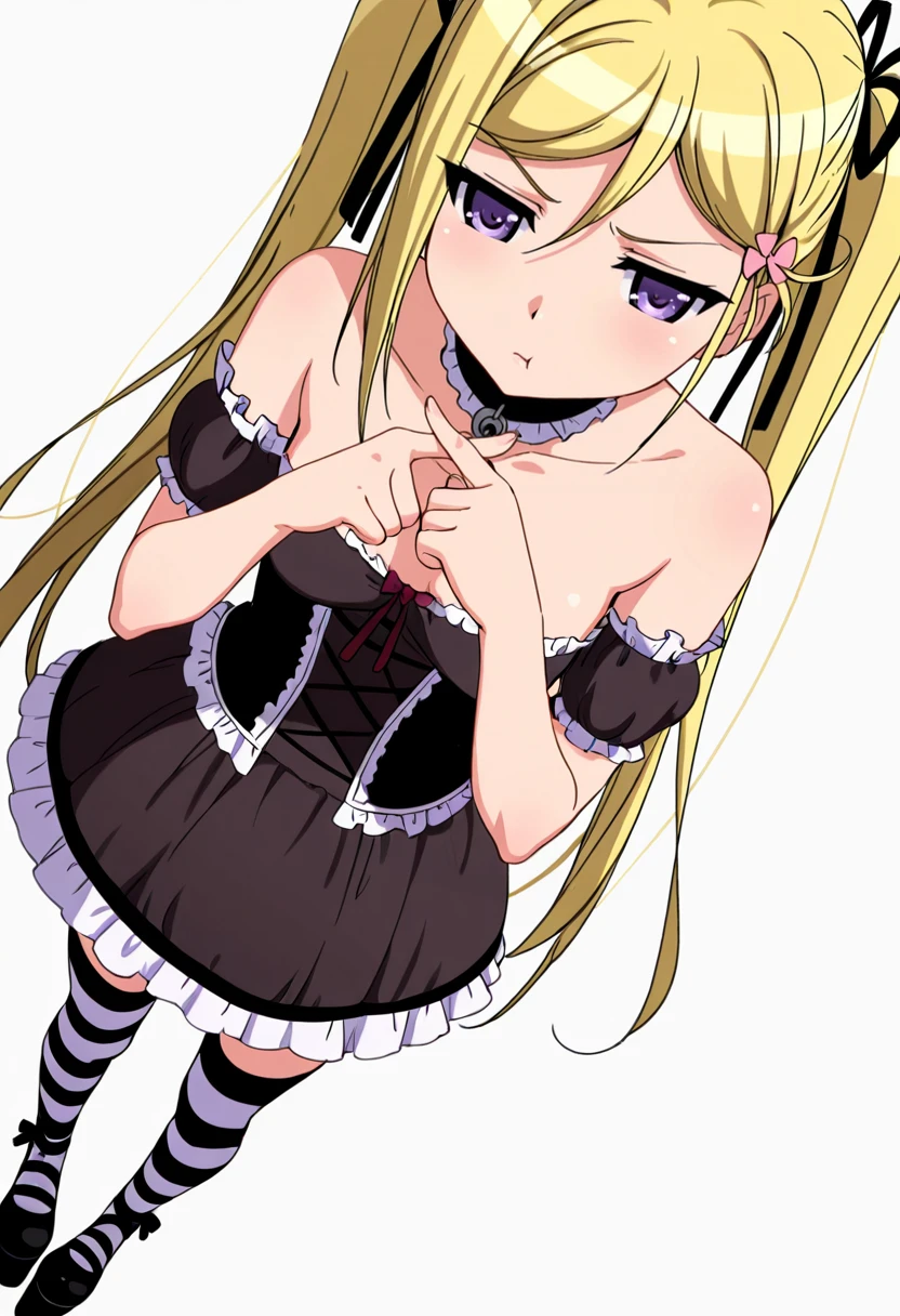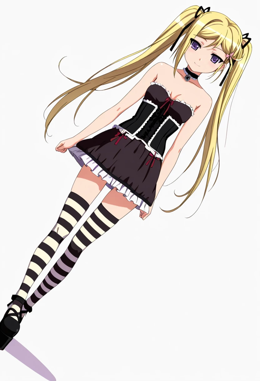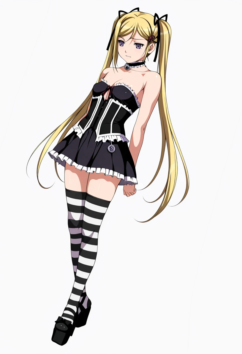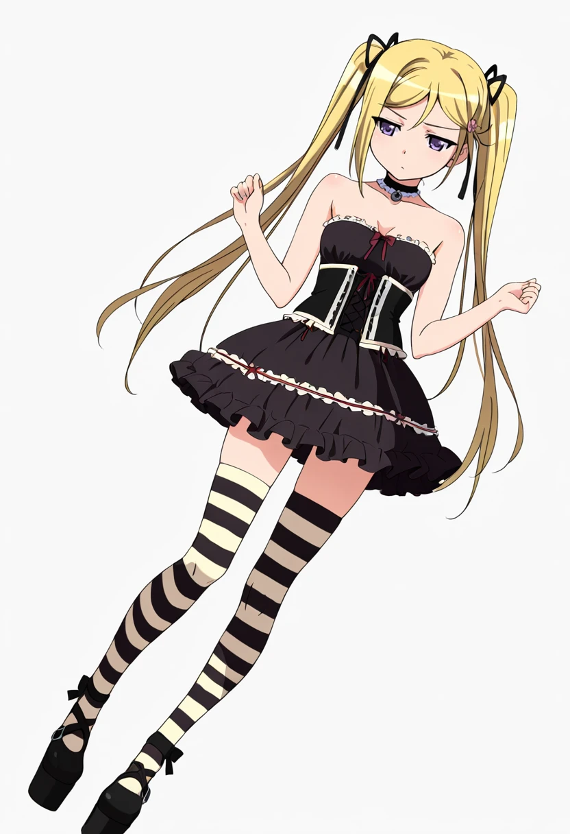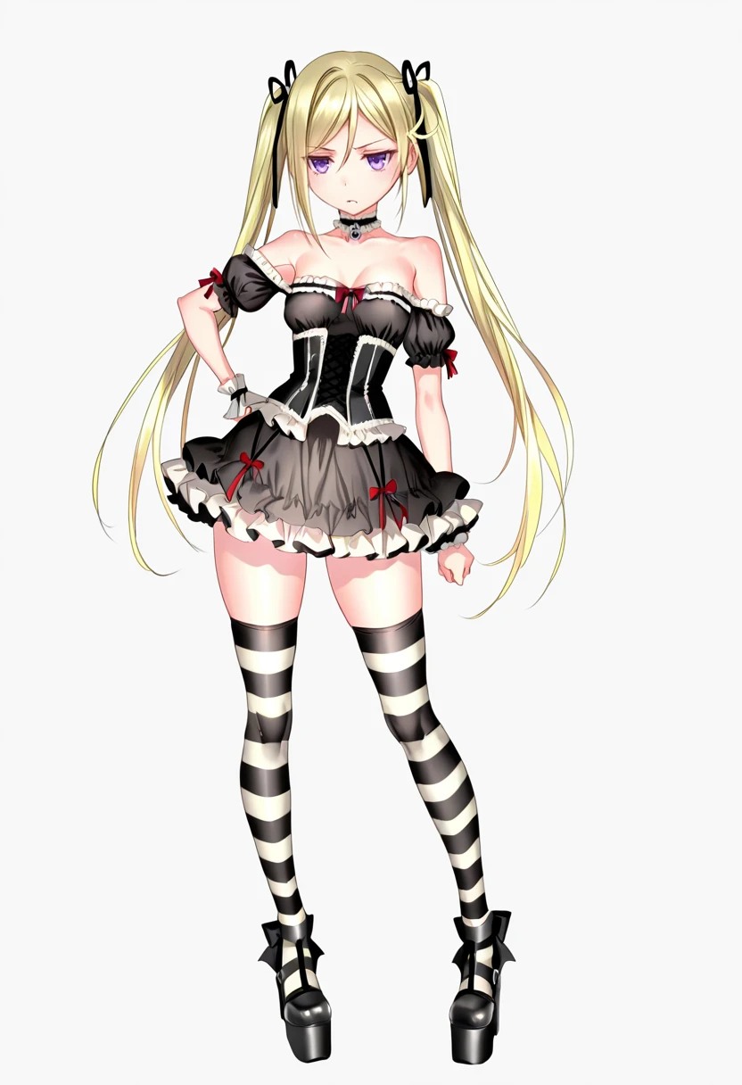 choker, ???? shoulders, frills,striped thighhighs,black dress,platform footwear, corset, FAQ