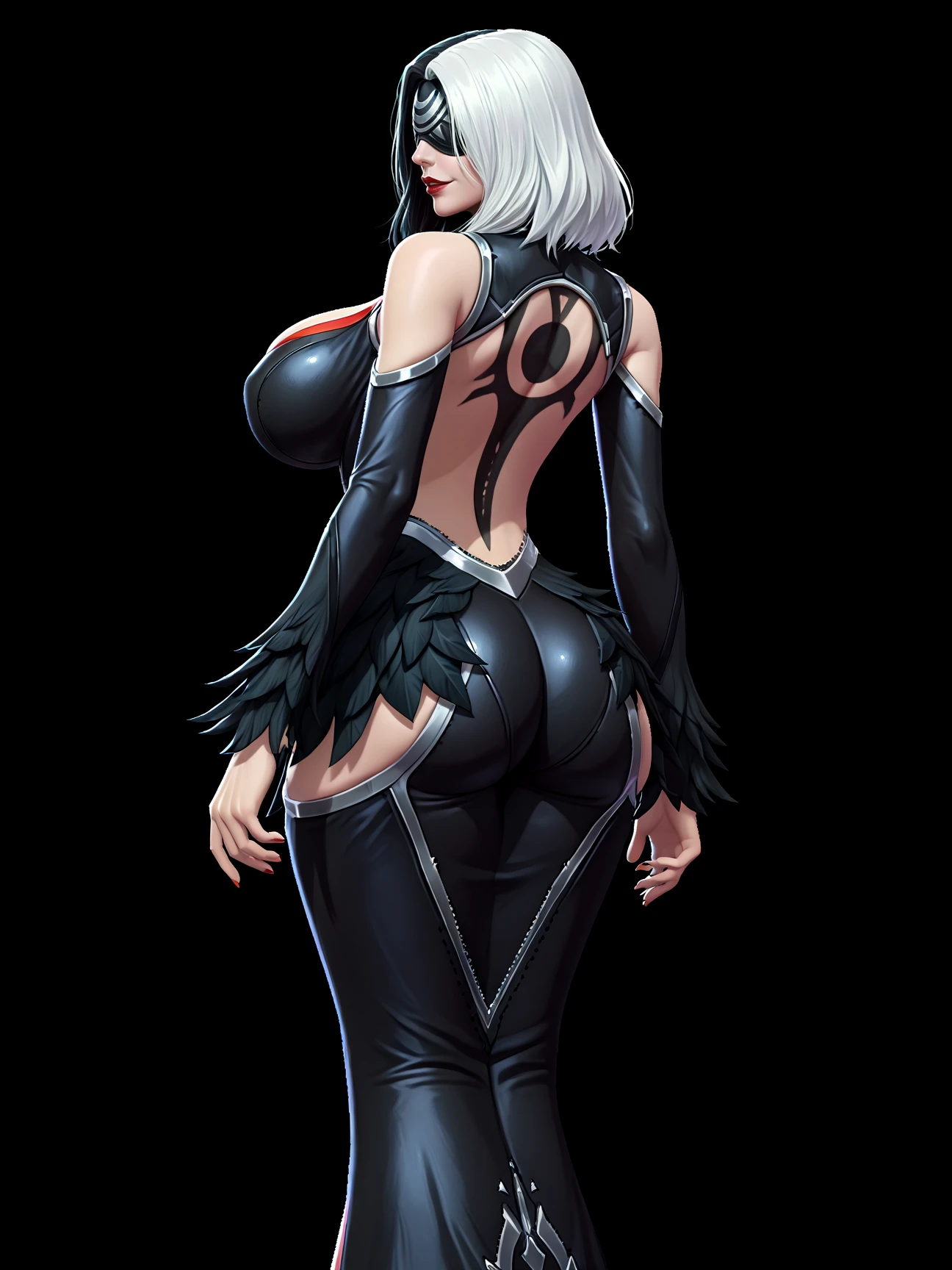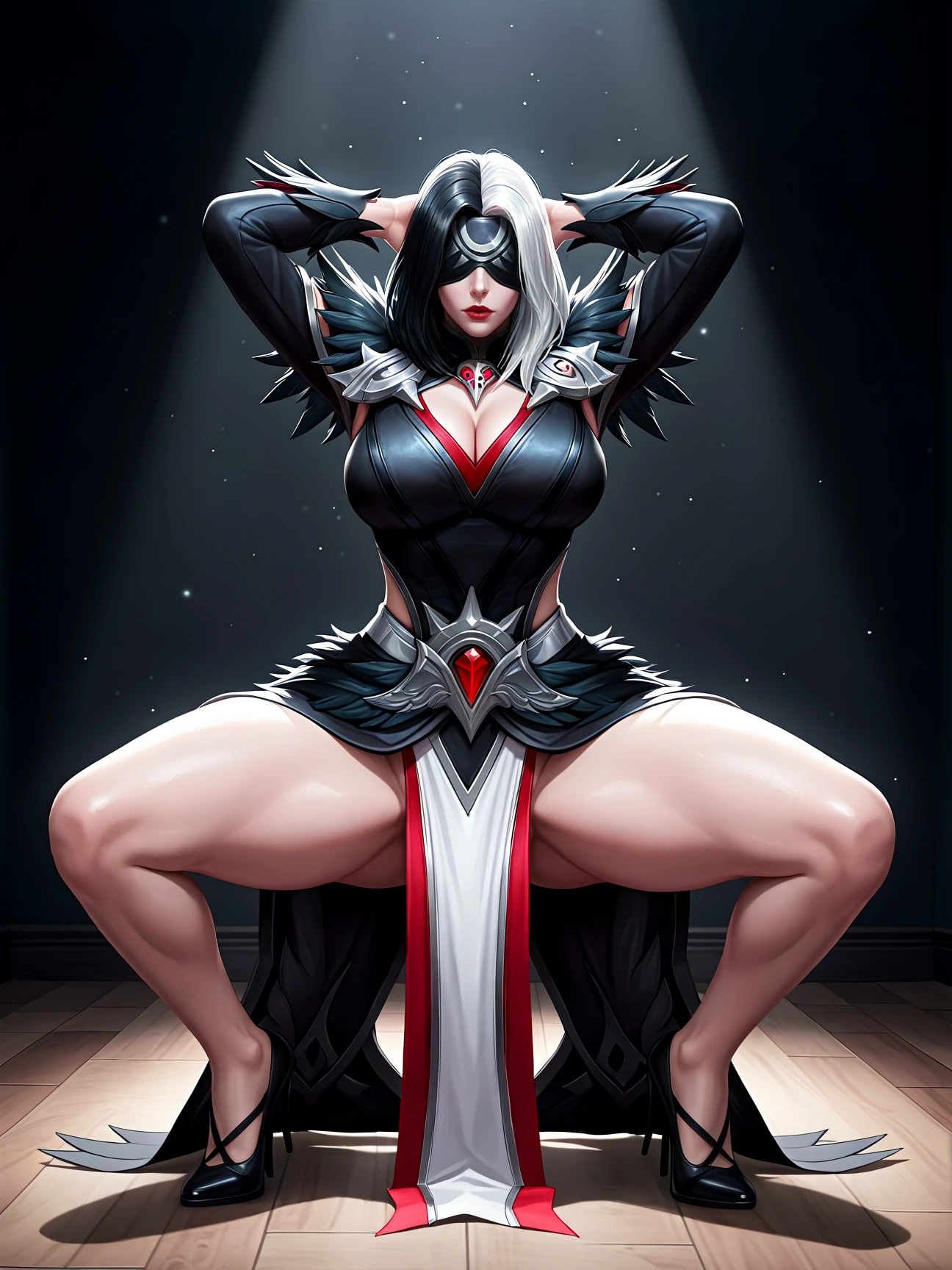 ADETAILER PROMPT: detailed face, realistic, white hair, black hair, two-tone hair, necklace, blindfold