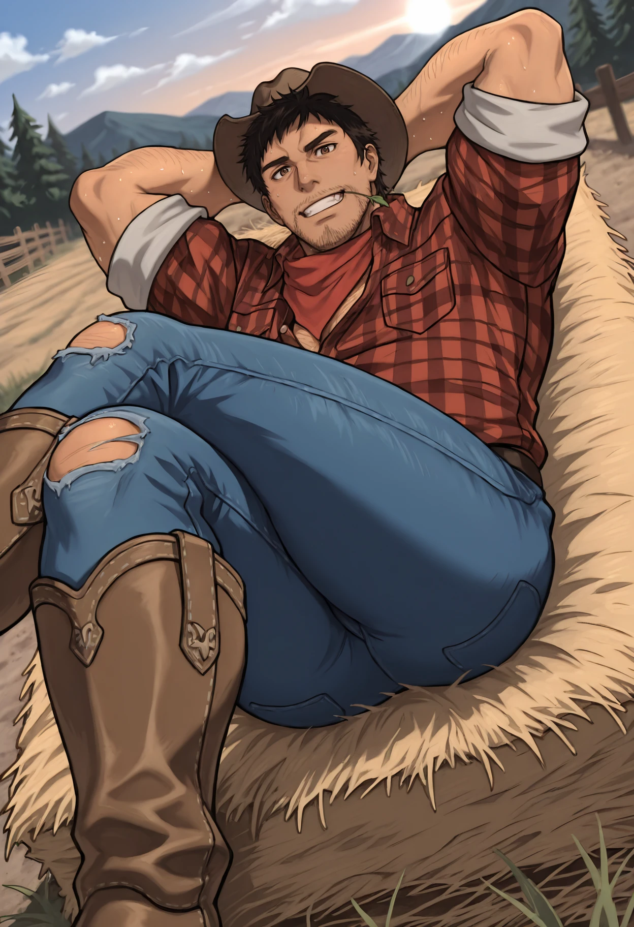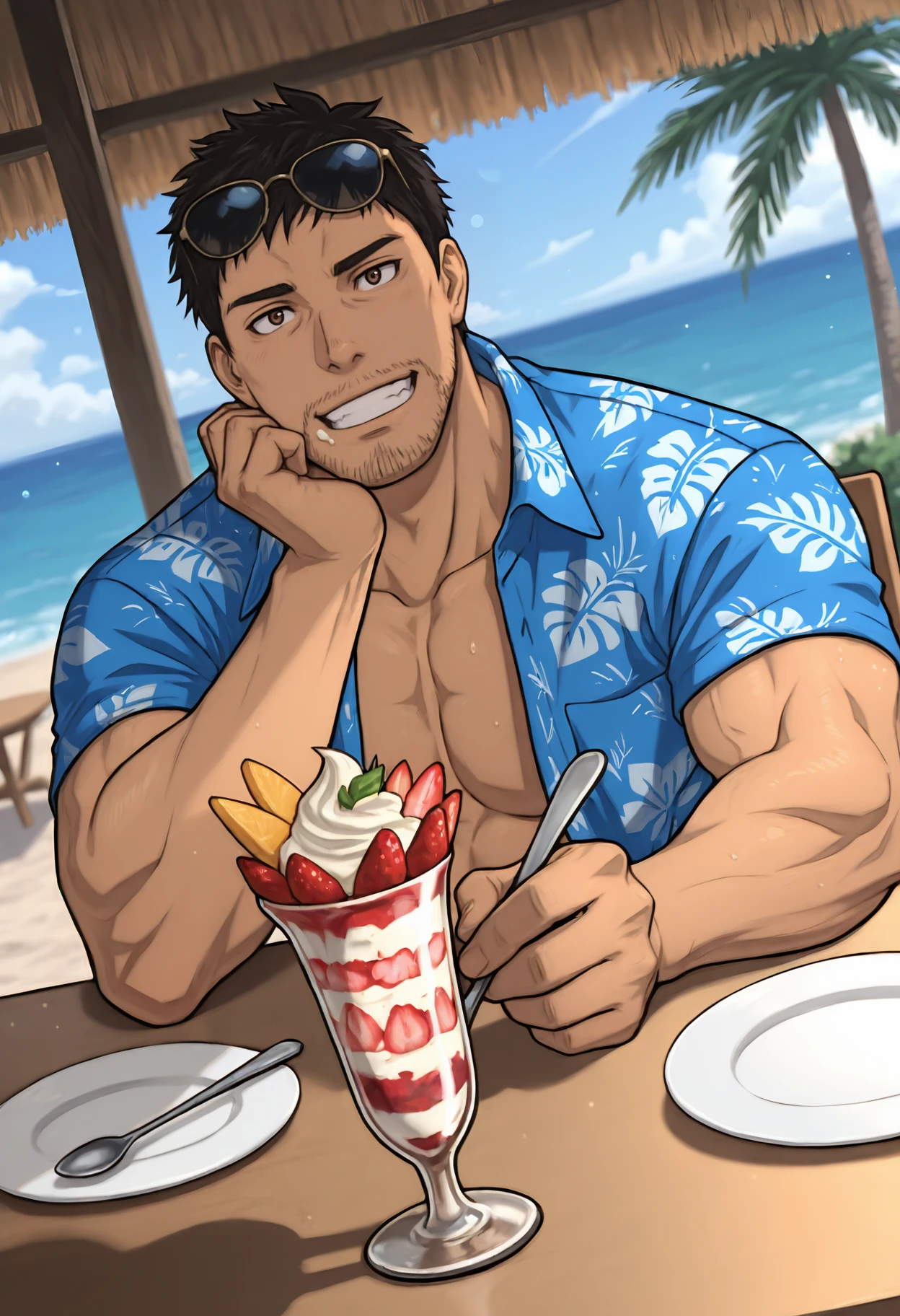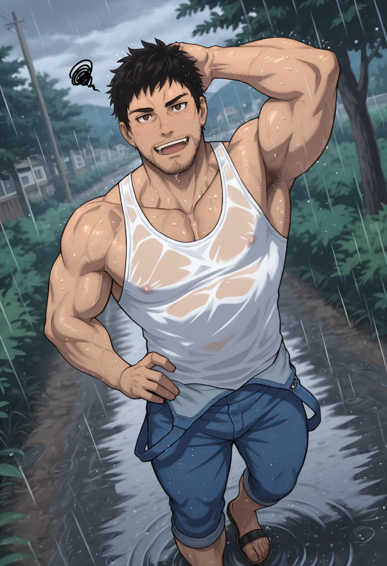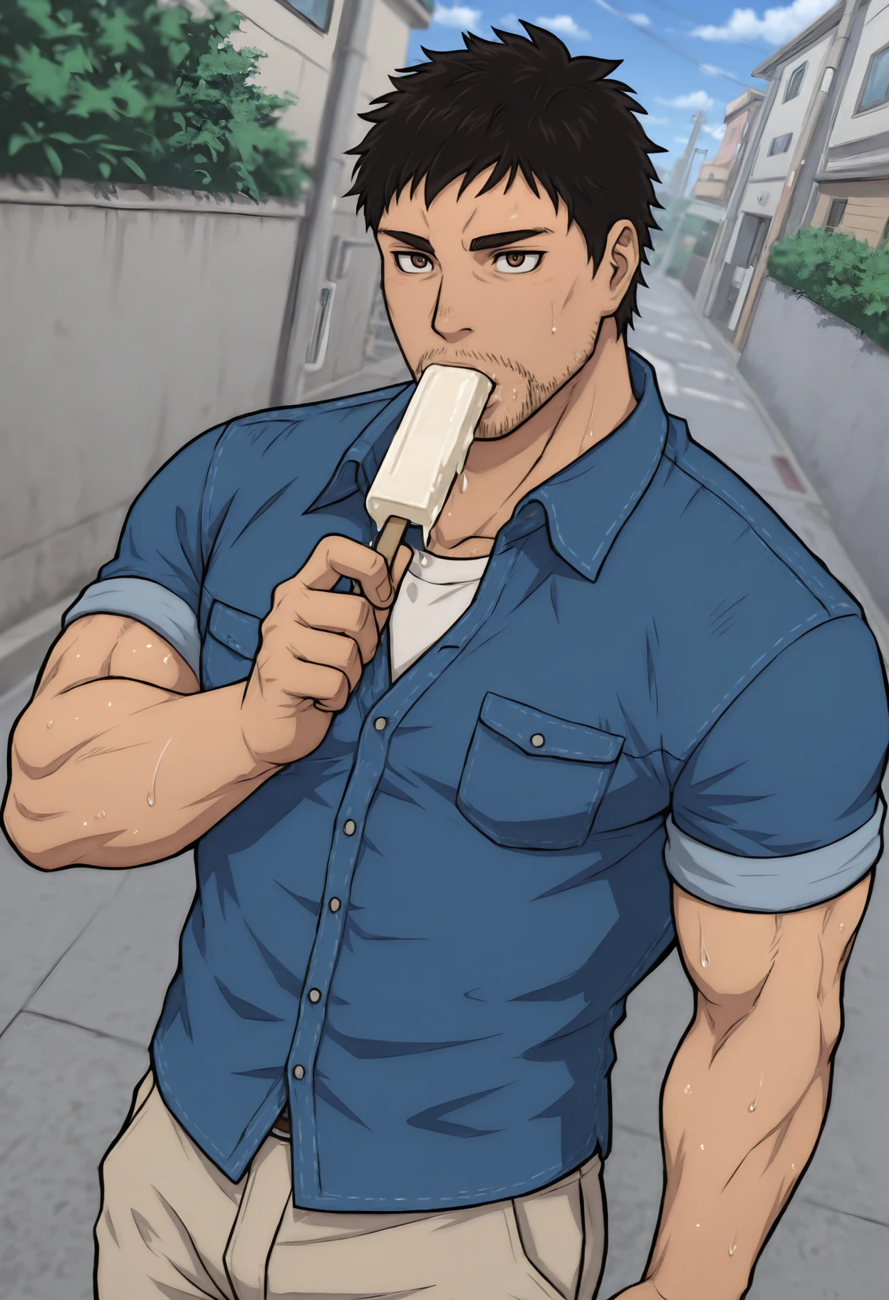 Tanzaburo Tojima, male, man, adult male, brown eyes, short hair, stubble beard, facial hair, strong jawline, serious expression