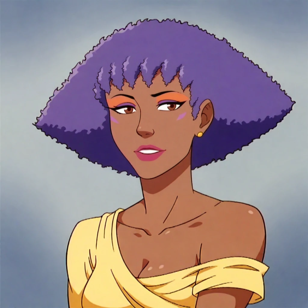 JemShana, purple hair, very dark skin