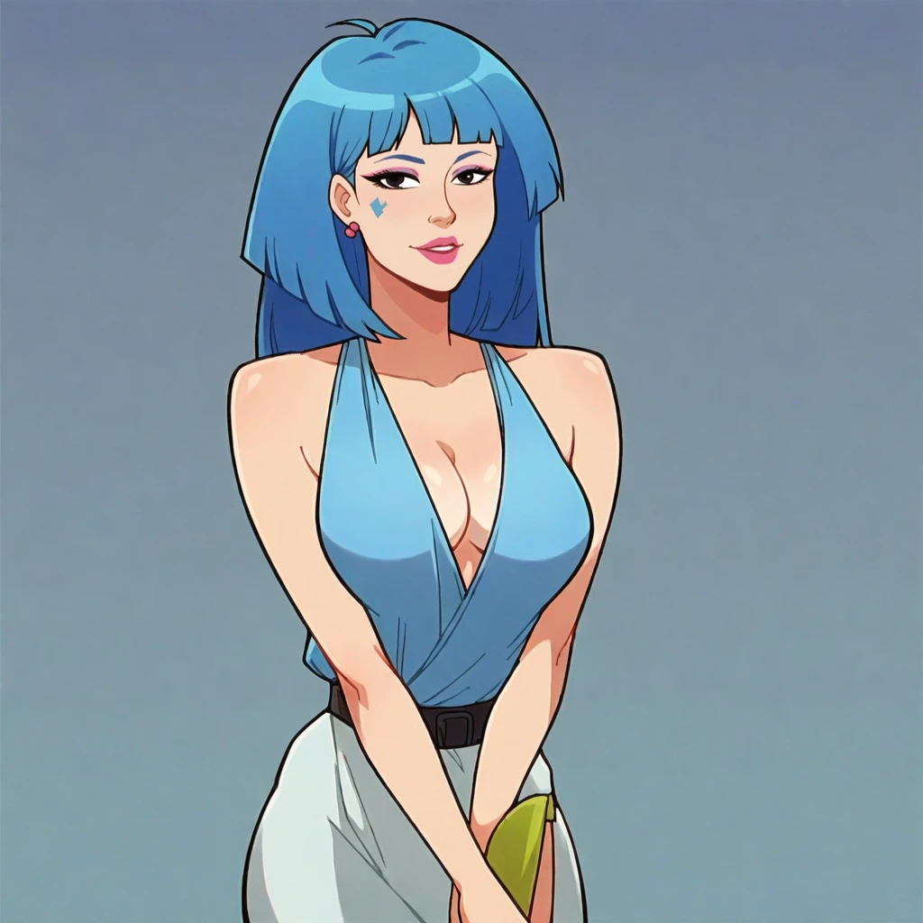 JemSynergy, bodysuit, teal hair, blue skin, solid eyes