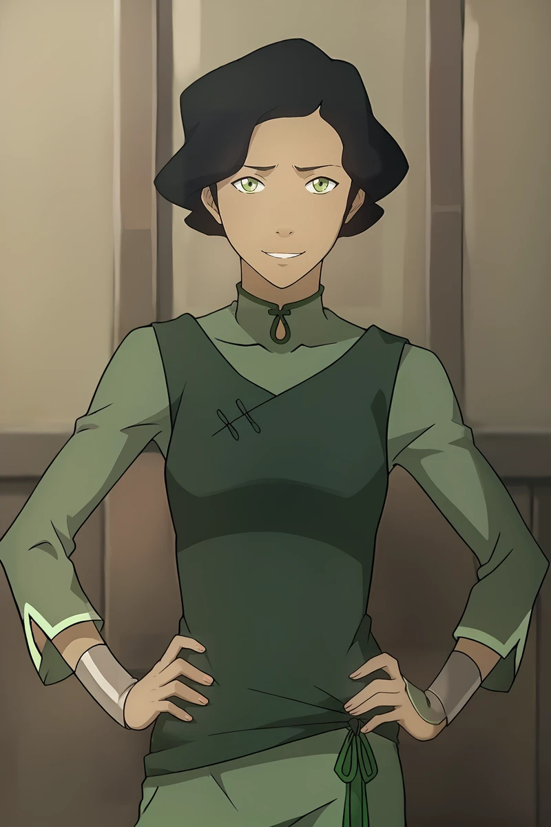 Basic outfit trigger: green outfit, green shirt, long sleeves, green pants, baggy pants