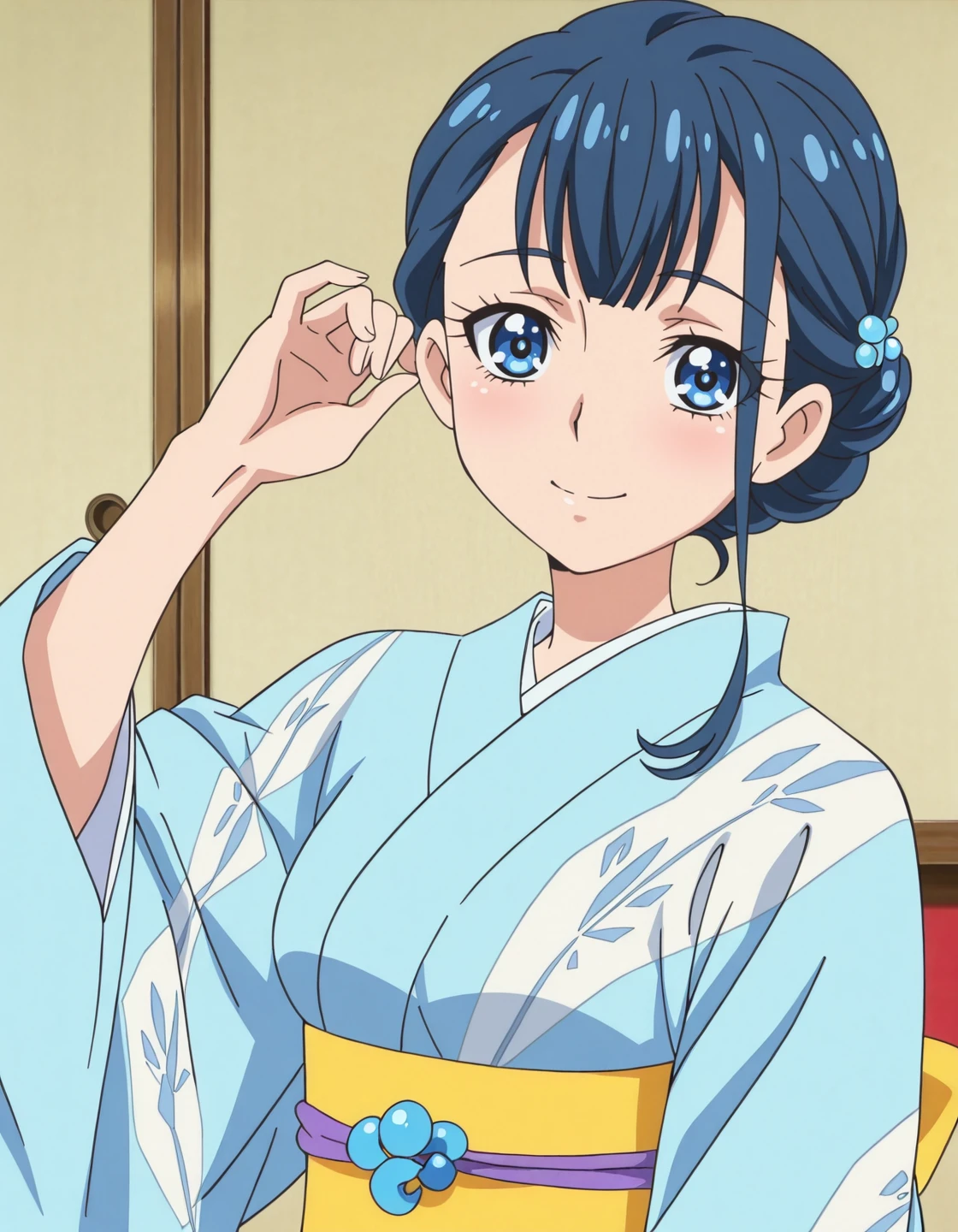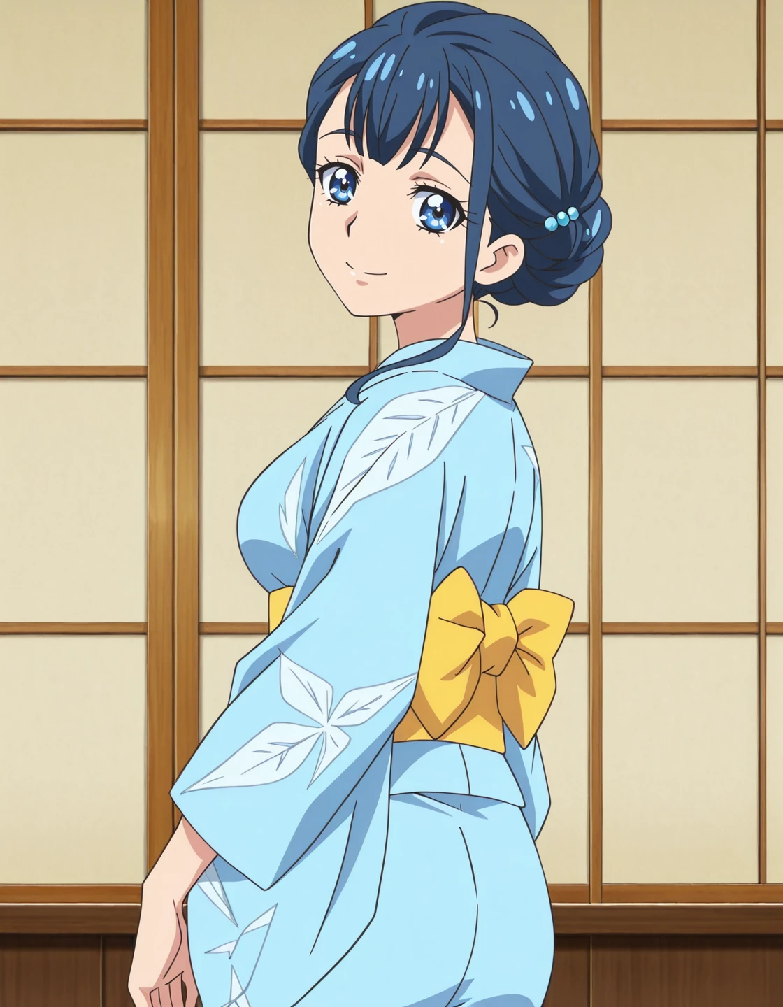 anime screencap, solo,1girl,saayayukata,yakushijisaaya,kimono,hair bun,<lora:yakushijisaaya_IL:0.8>, high definition,amazing quality,best quality,very aesthetic,masterpiece,absurdres