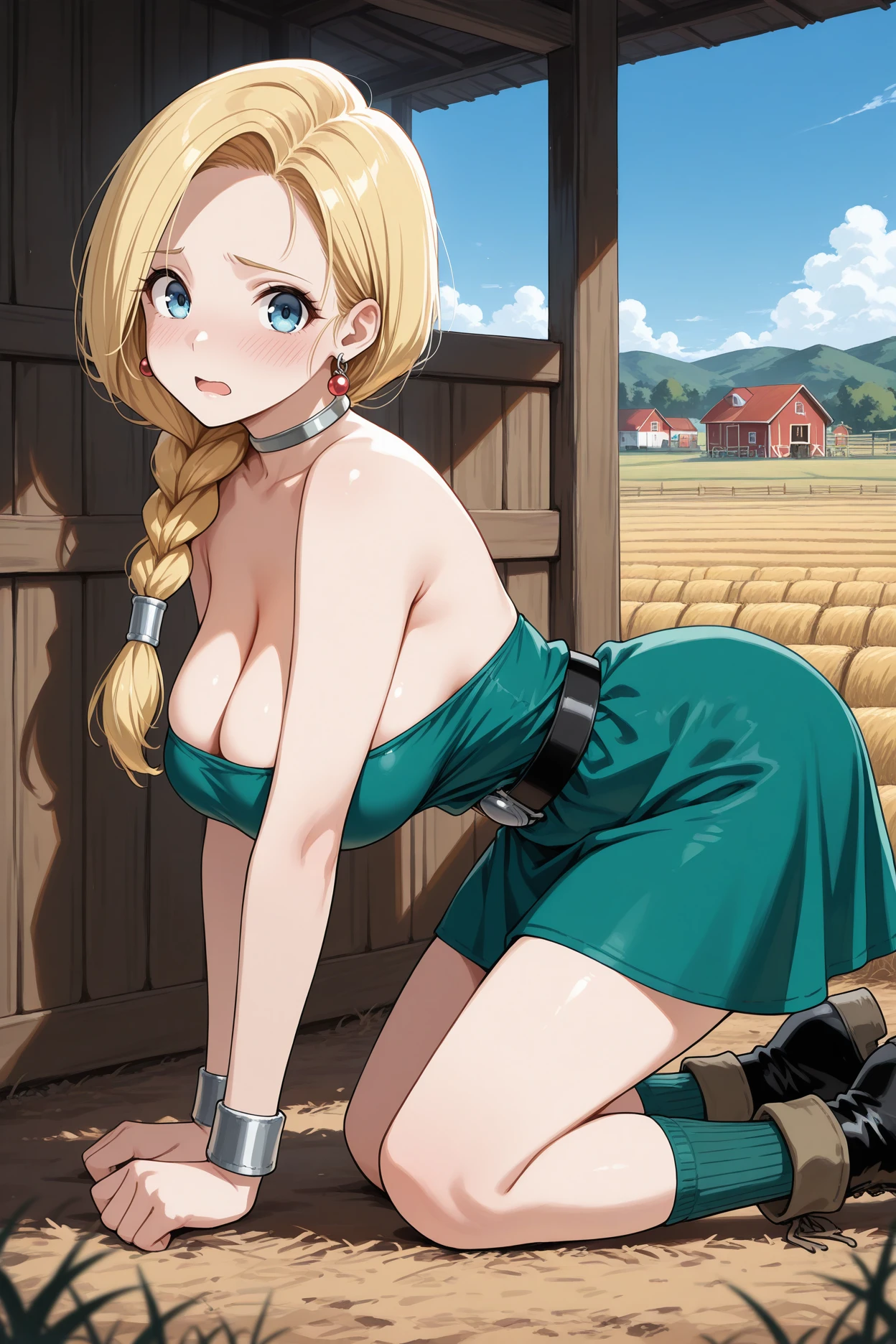 bncad5, blonde hair, single braid, hair over shoulder, long hair, blue eyes, large breasts