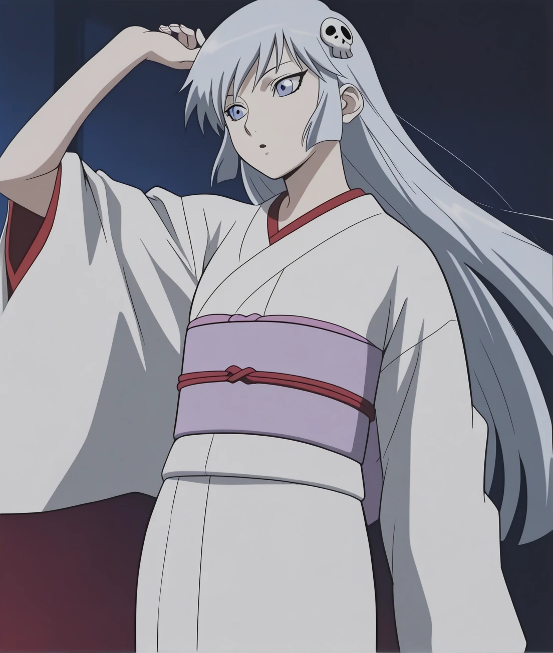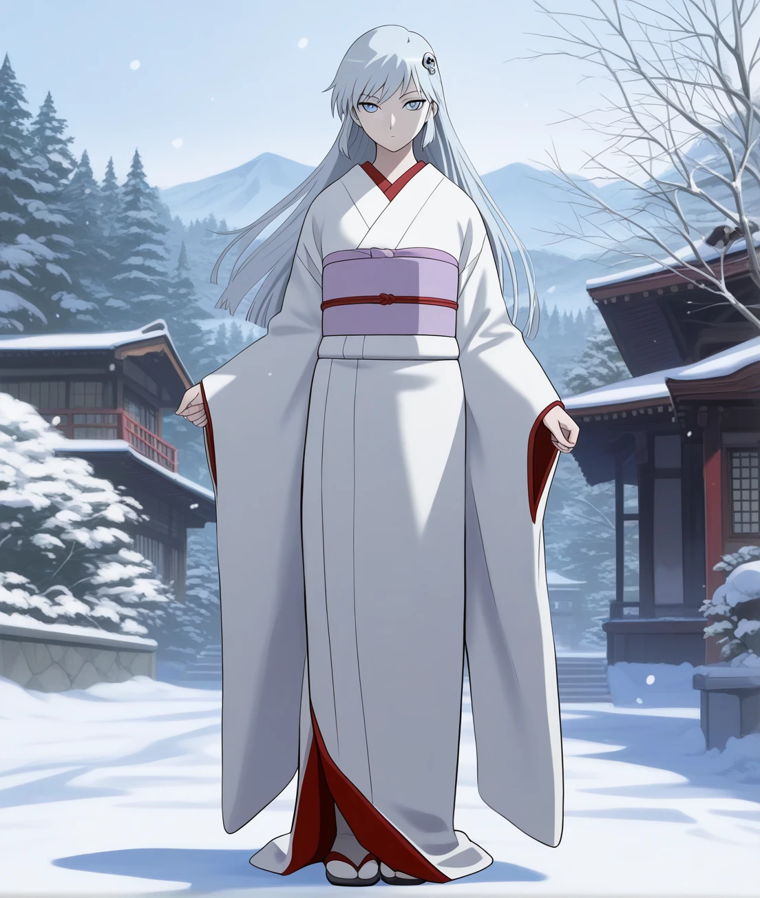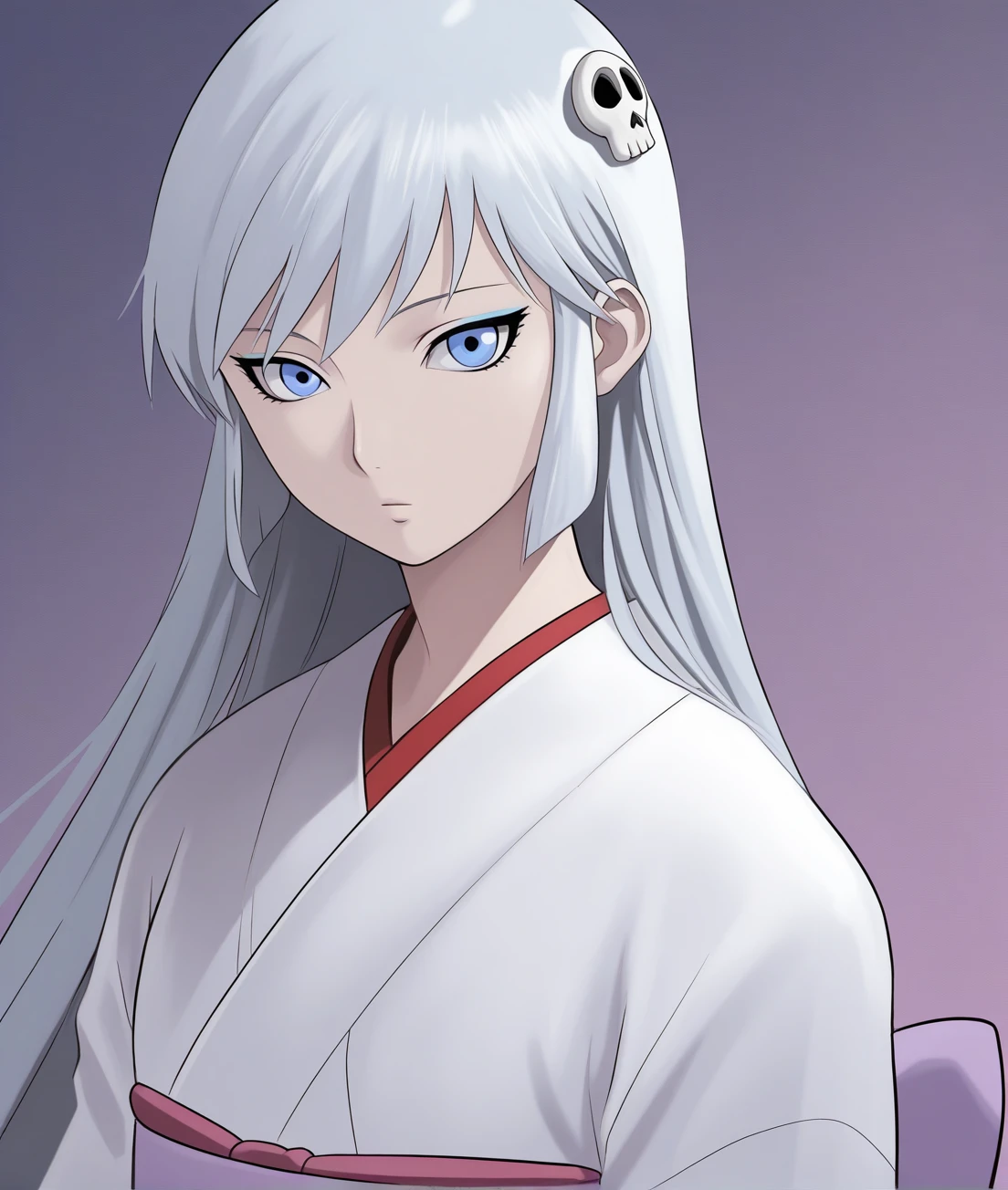 yukihime, white hair, long hair, blue eyes, meke up, kimono, obi,