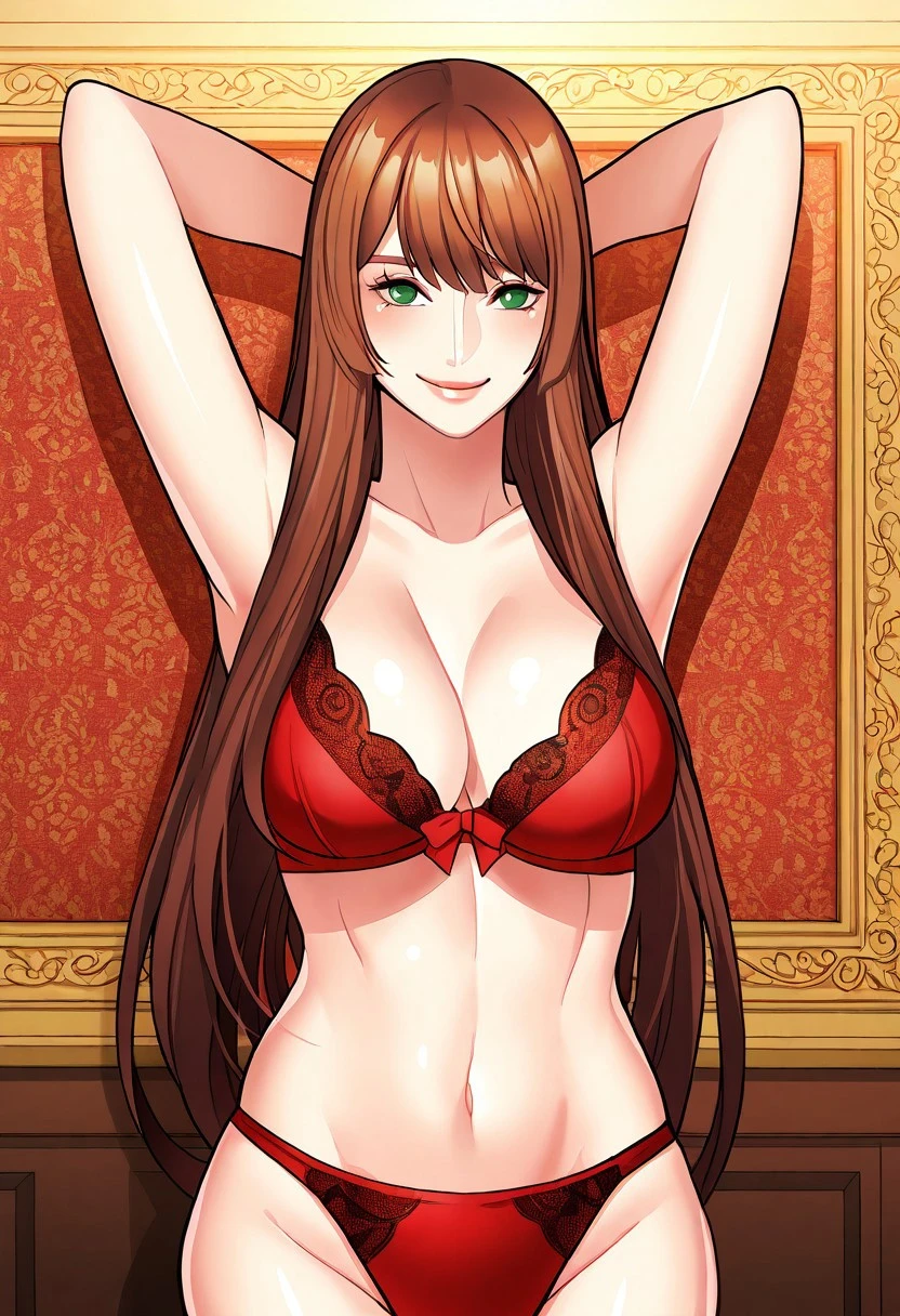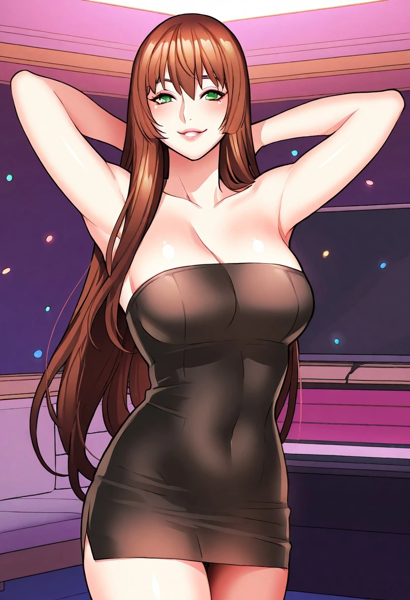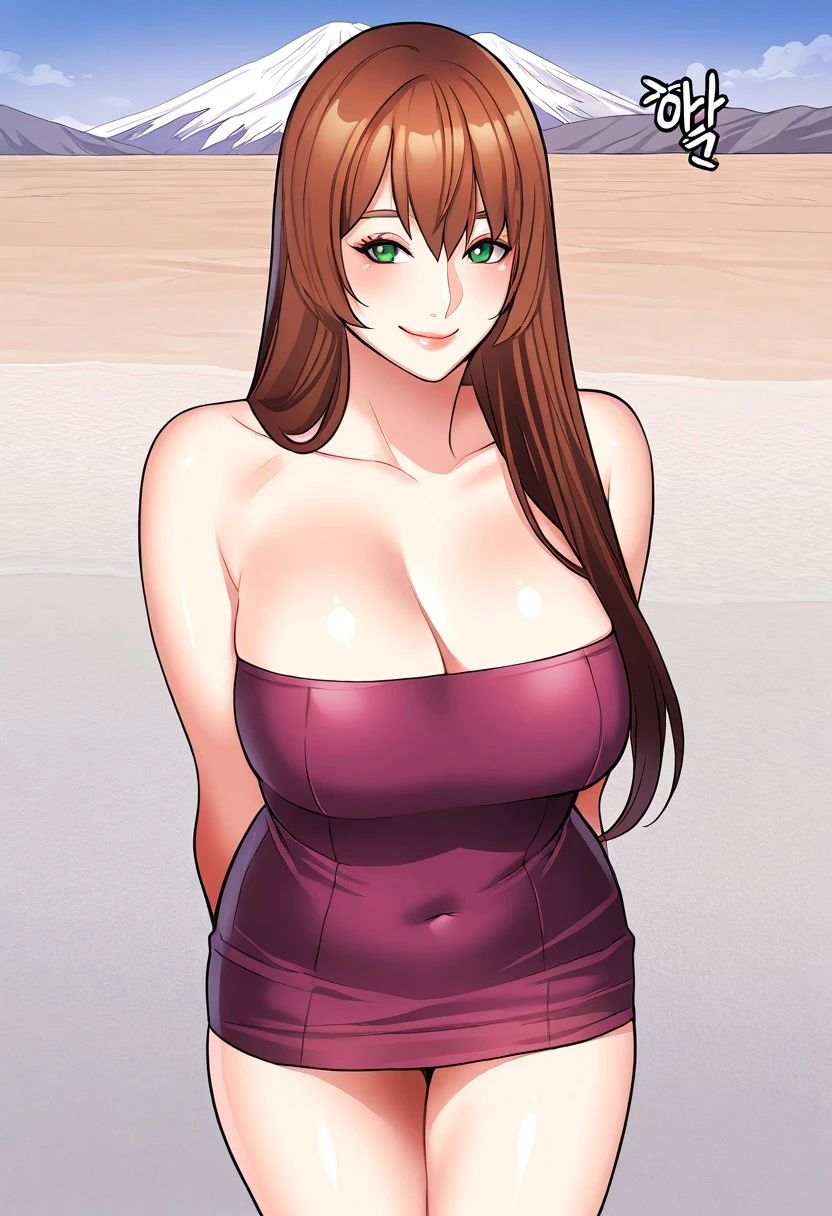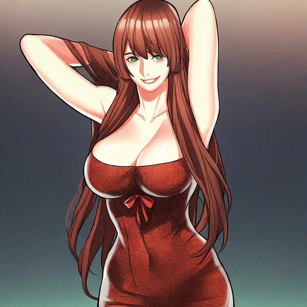 (( <lora:cho_yun-kyung:1> , cho_yun-kyung , normal waist, wide hips, beautiful skin, beautiful green eyes, clear eyes, bright pupils, beautiful eyes, beautiful brown hair, beautiful long hair, bangs, huge and shaggy breasts, natural beauty, extraordinary beautiful woman, attractive woman, super sexy woman, lustful body, sexy woman with seductive obscene body, sensual body, voluptuous body, sexy beauty, no piercings, no piercing, ))