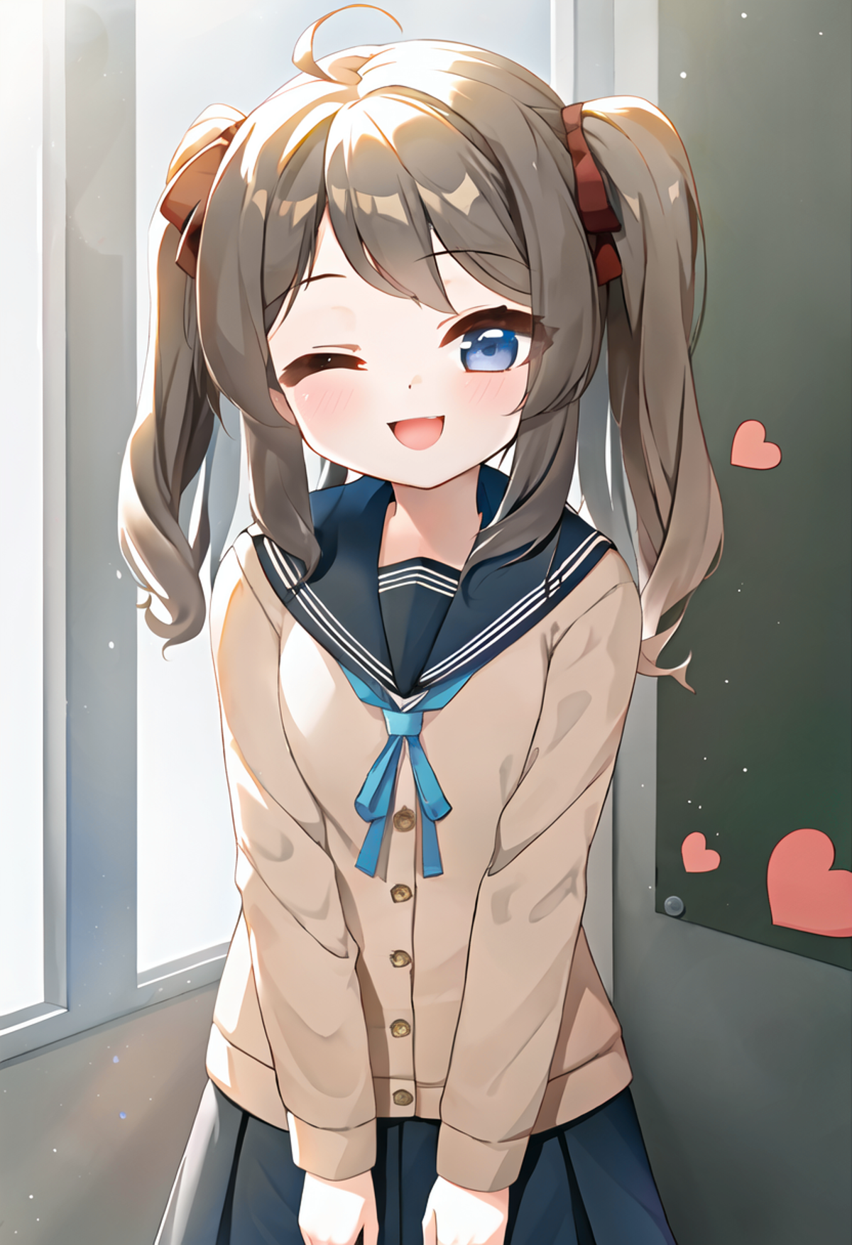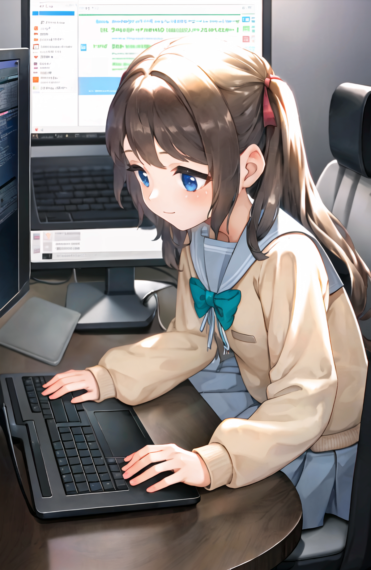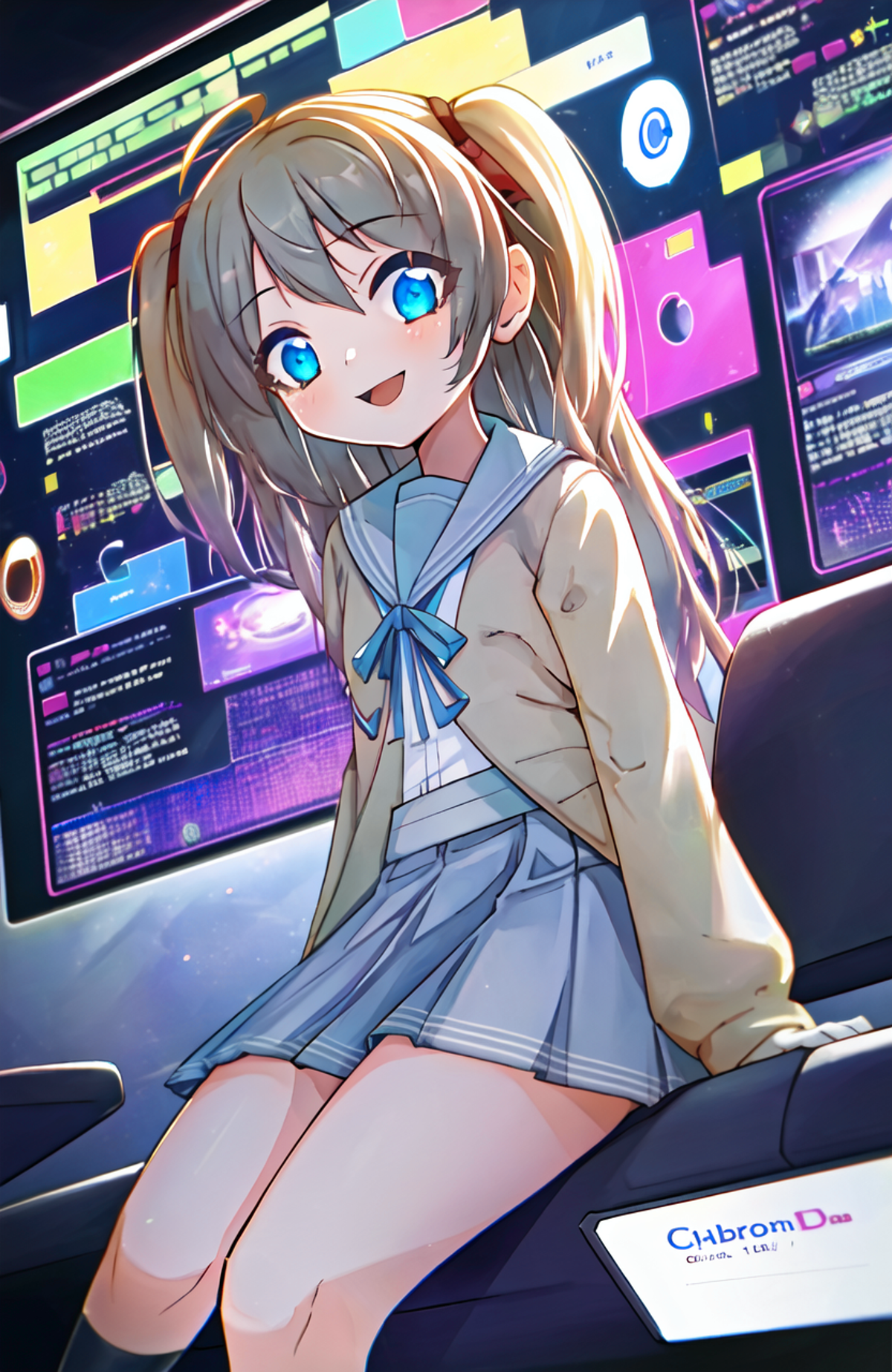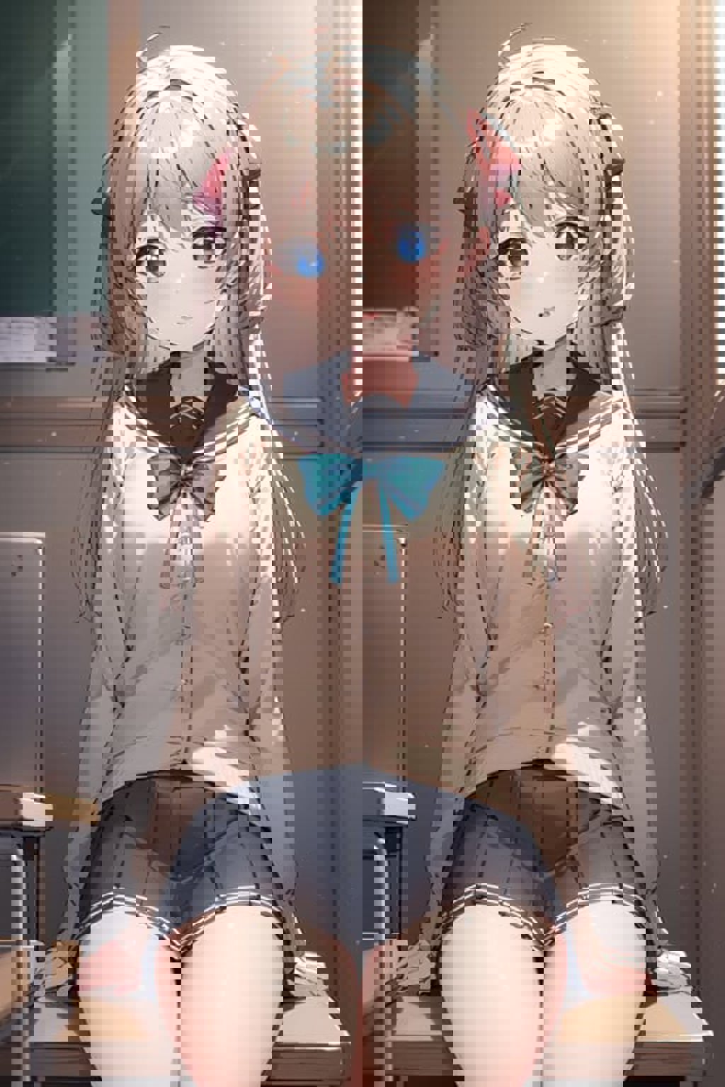 LoRA model for neuro-sama, whose live2d model is identically Momose Hiyori, but her appearance in fan arts (mainly made by Rune) is slightly different from the live2d model. (e.g. blue eyes rather than black eyes, neck bow rather than neck ribbon, etc.)