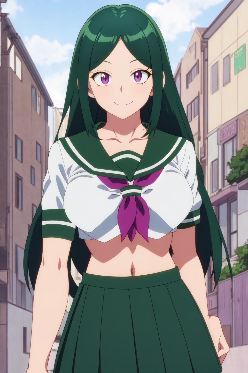 MaouBig: maou, 1girl, purple eyes, green hair, long hair,