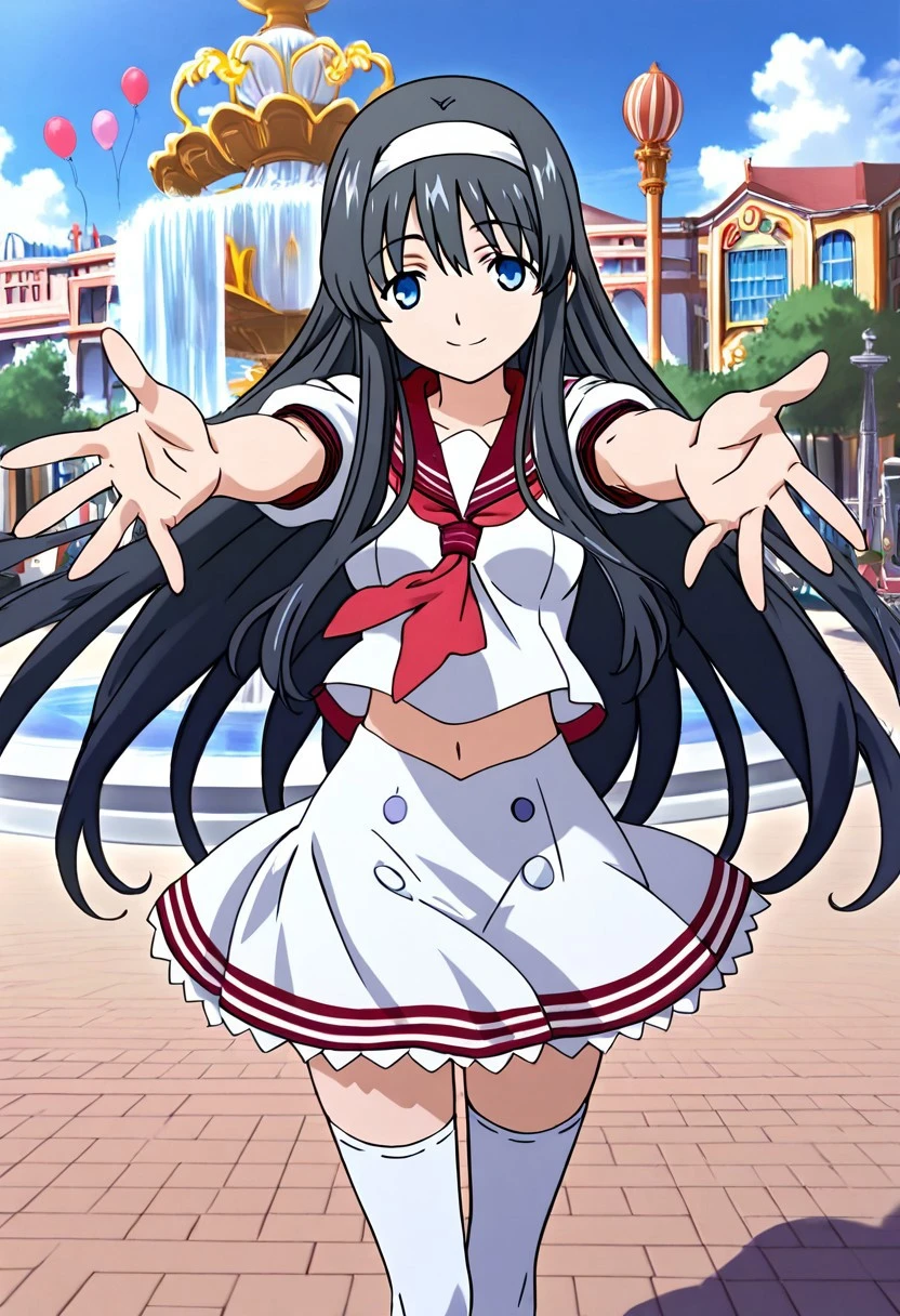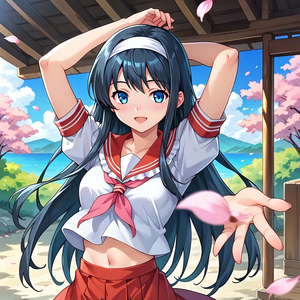 1girl, sennakyoudou, black hair, long hair, blue eyes, white hairband, small breasts,