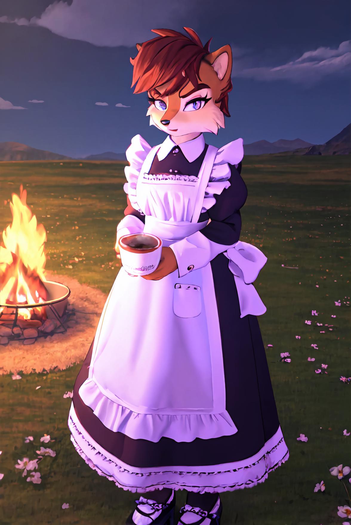 • red/brown hair, short hair