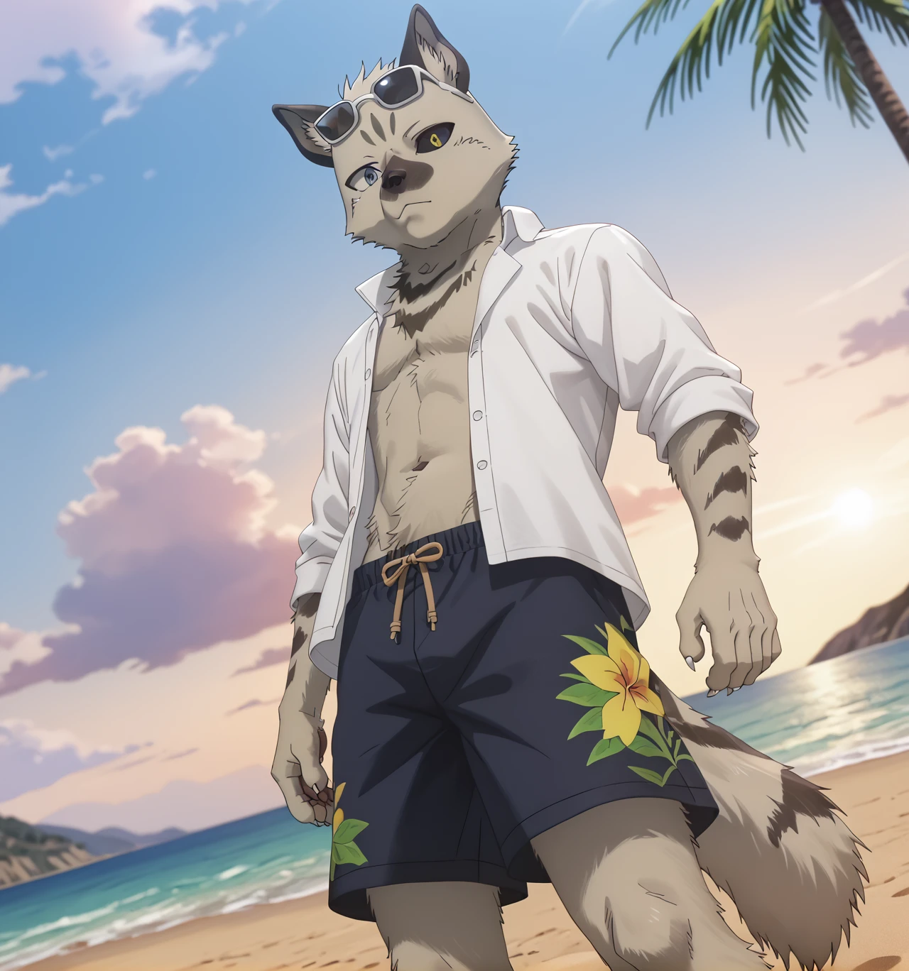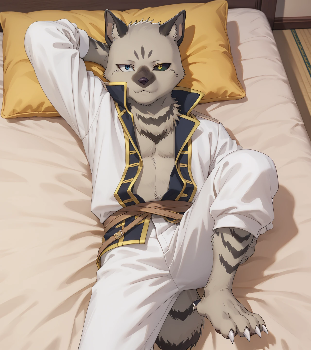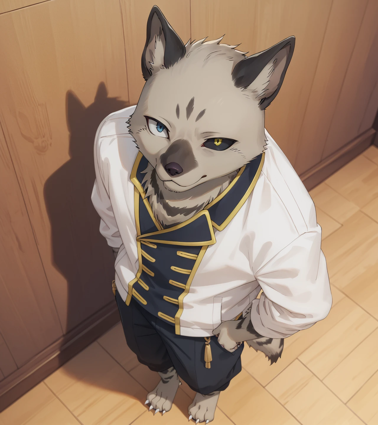 Military Uniform, White shirt, White pants, Grey fur