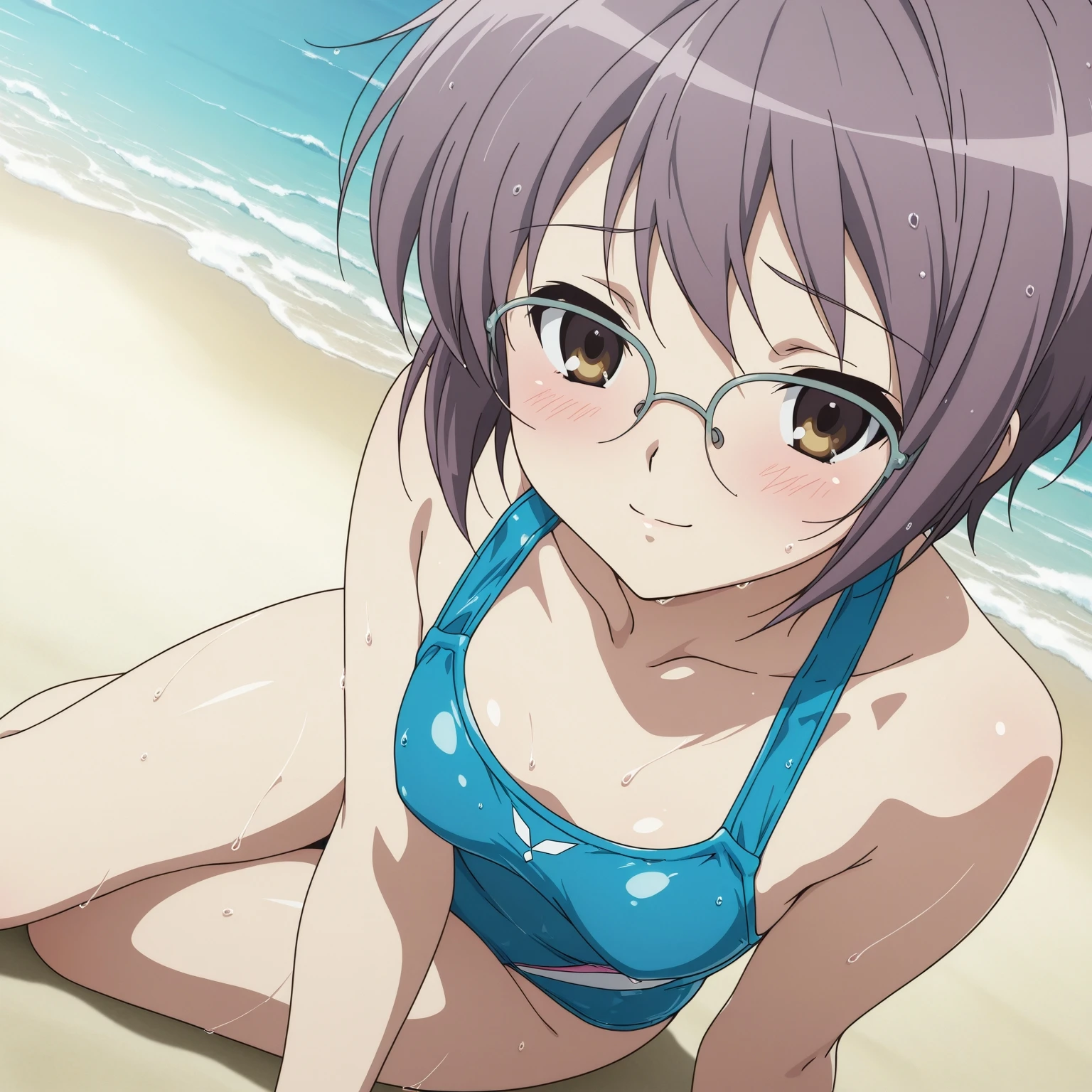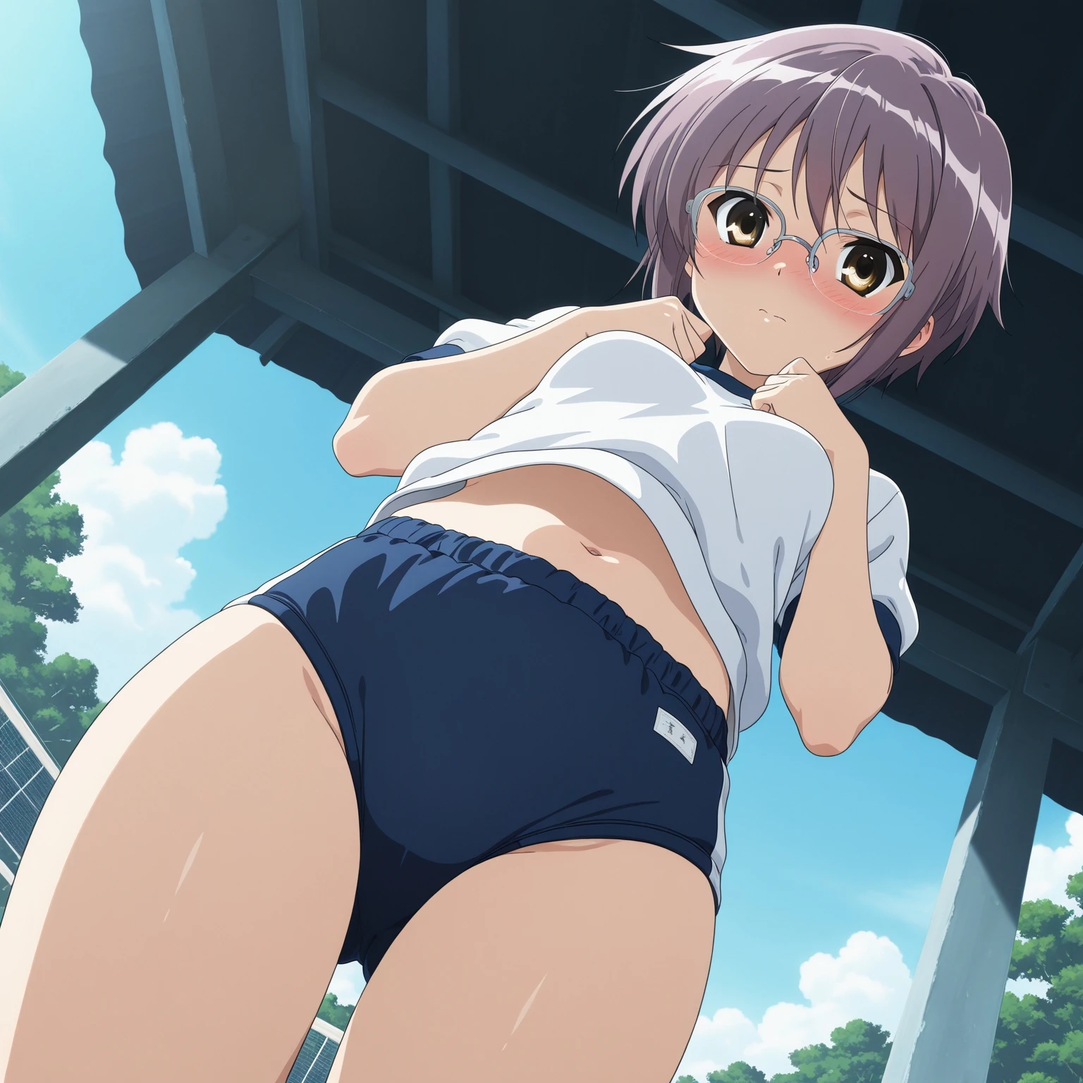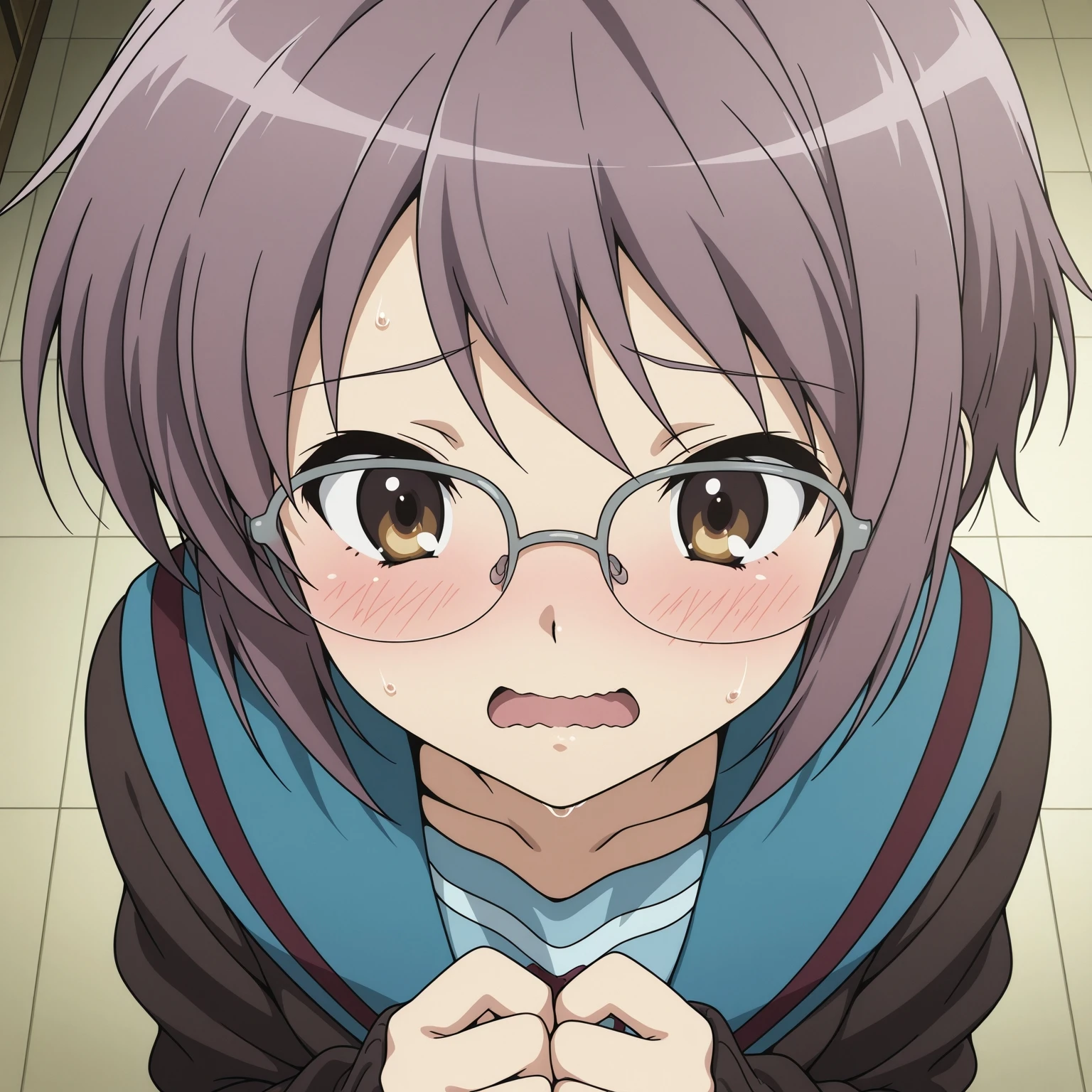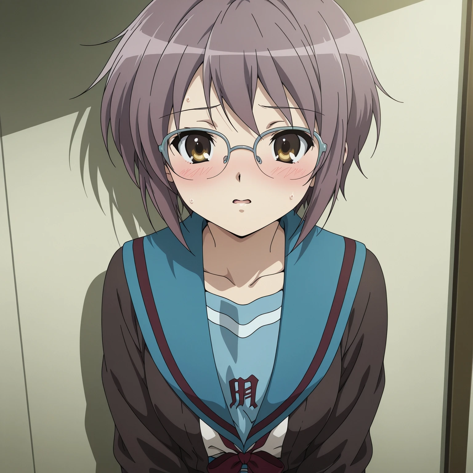 glasses,kita high school uniform, brown cardigan,black socks,shoes,