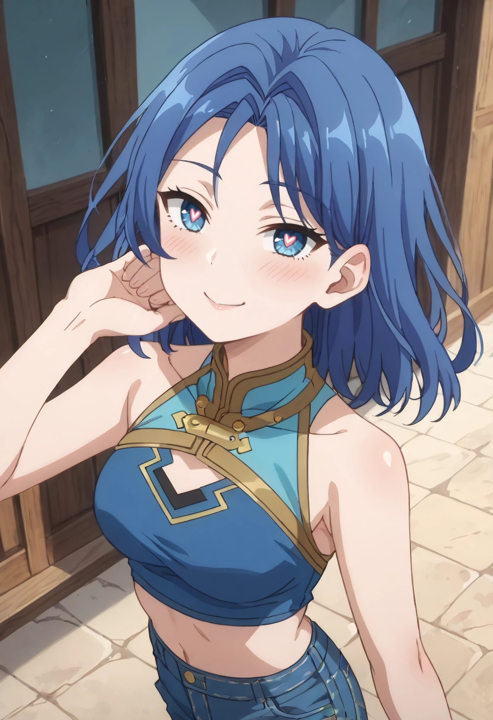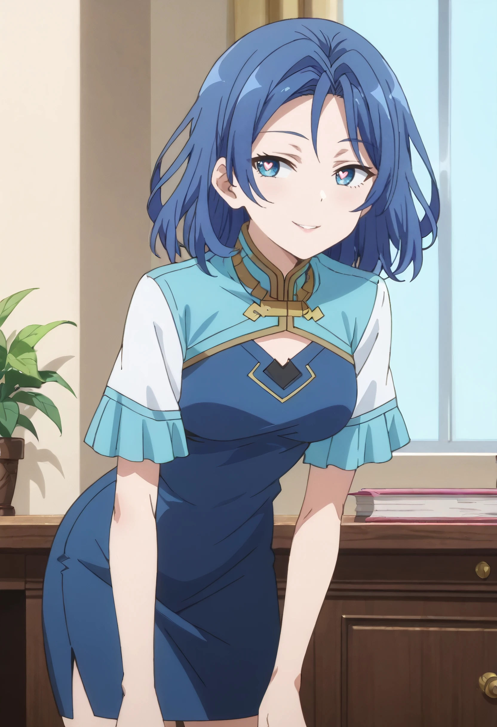 JHNFilmina, blue hair, blue eyes, medium hair, parted bangs,