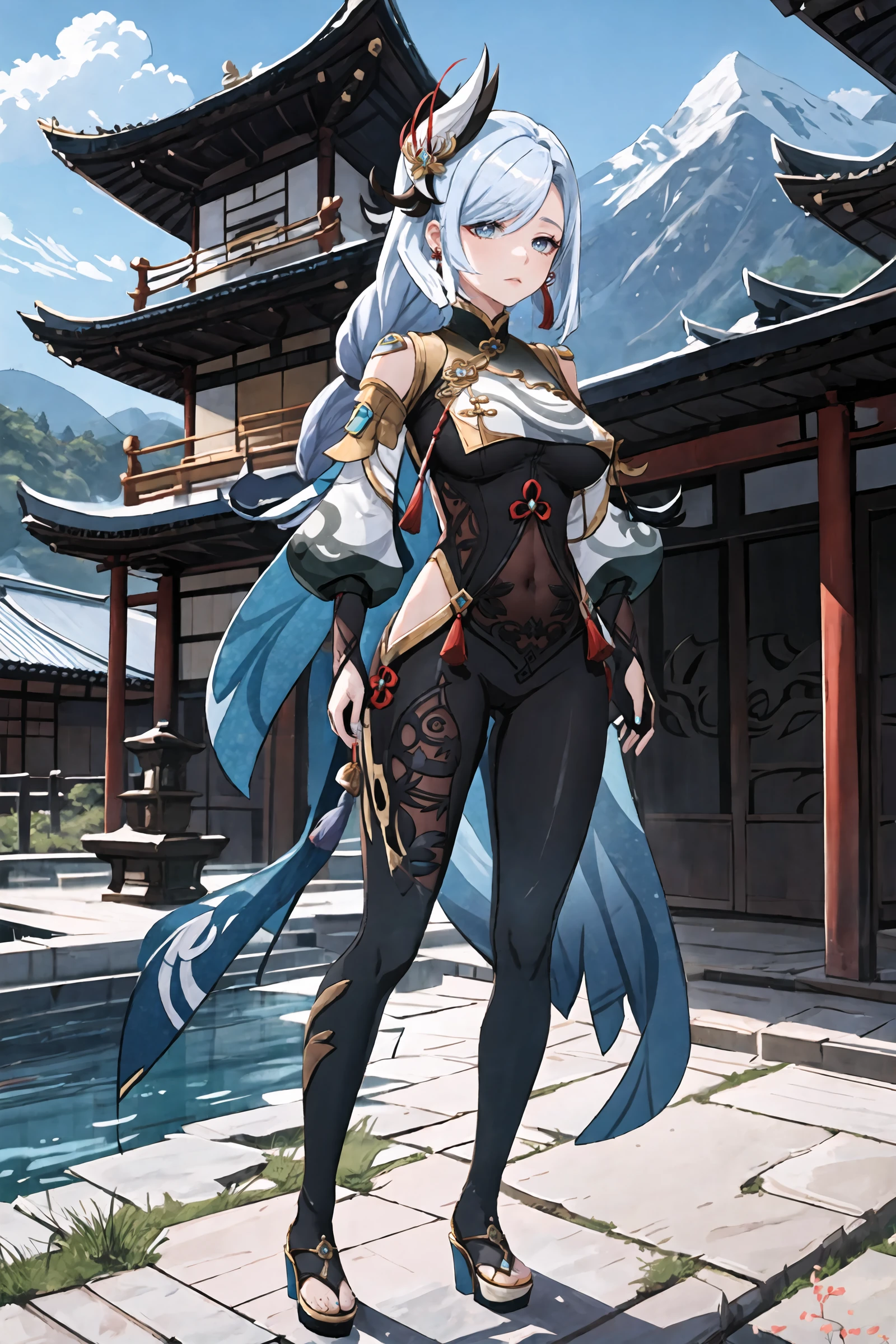 Lora model of Shenhe, the two official costumes are included in this single lora model. Trained with illustrations and enhanced by 3D model for best accuracy of the default costume, while still remaining great flexibility to remove/change the clothes. The training resolution is 1024x1024 for best performance.