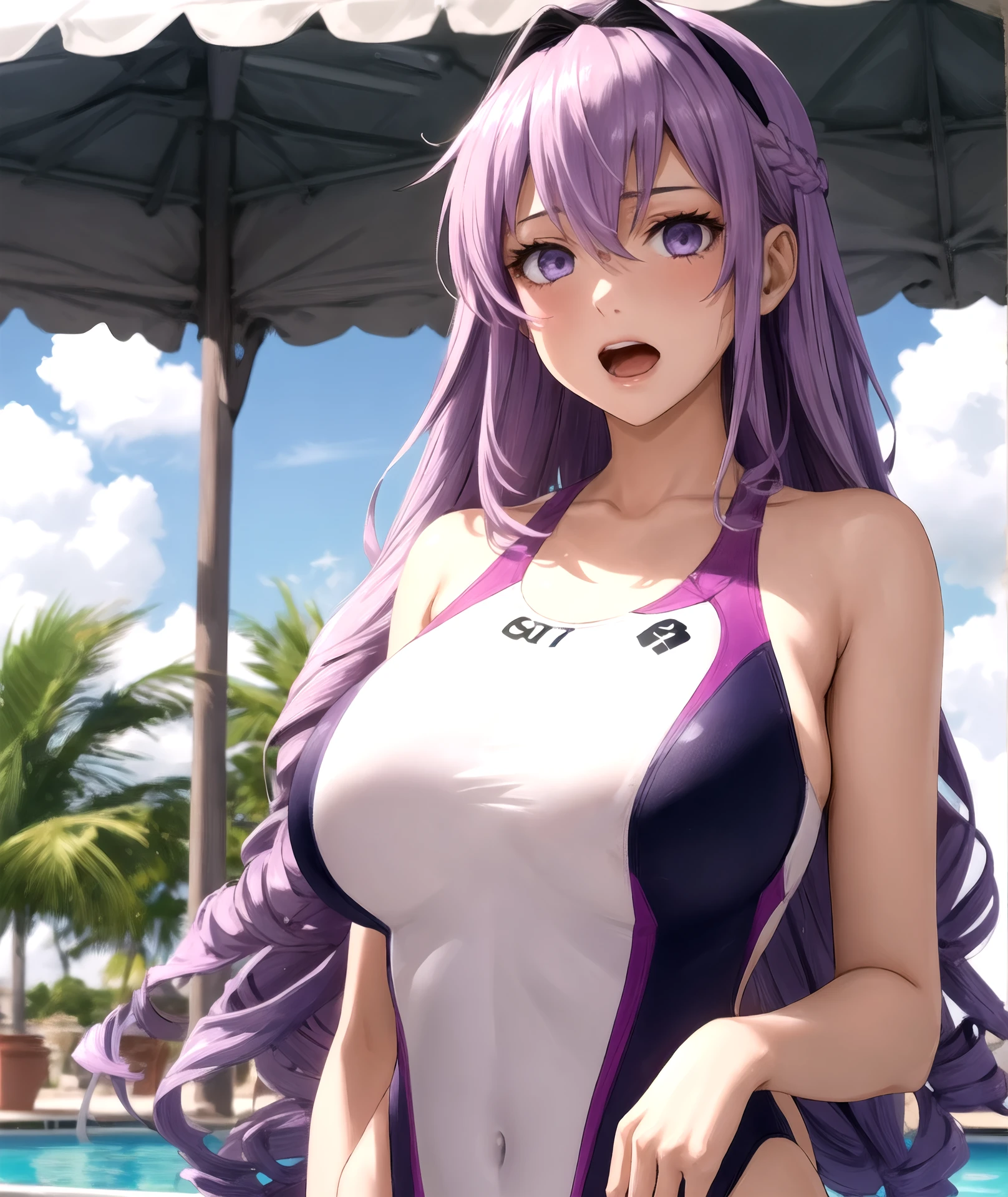 I recommended for use next promts: <lora:Junko_Hokaze_V4:0.7>, swimsuit, school uniform, purple hair, medium or large breasts and etc