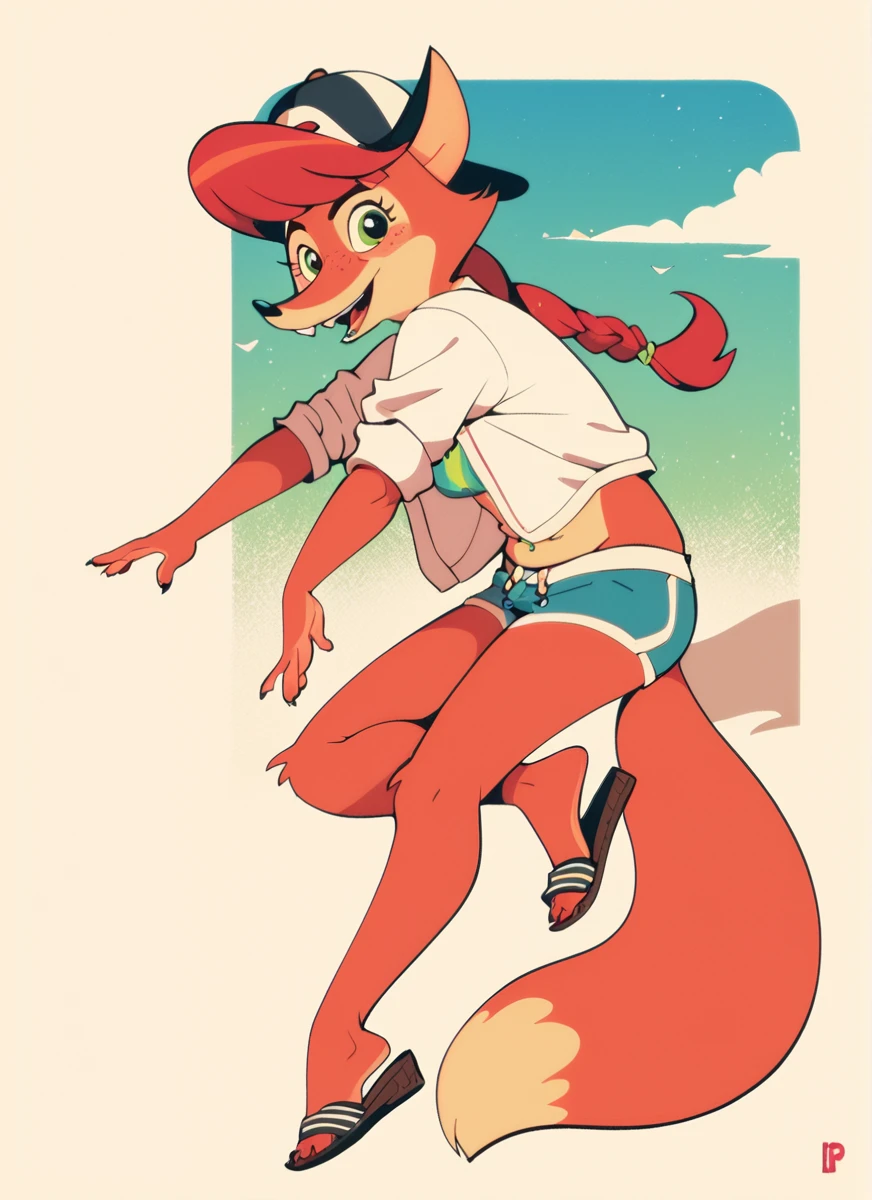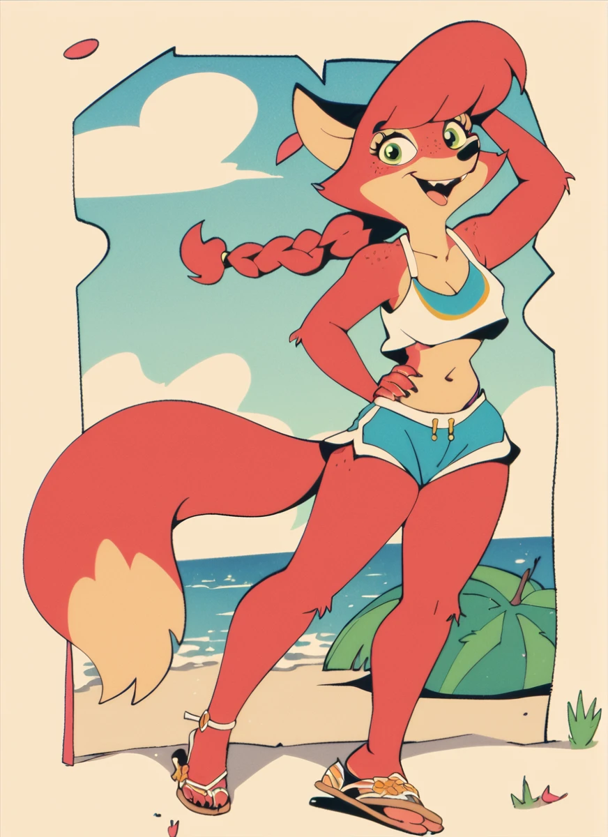 Reinforcement Tags: green eyes, fox, fangs, tail, braided hair