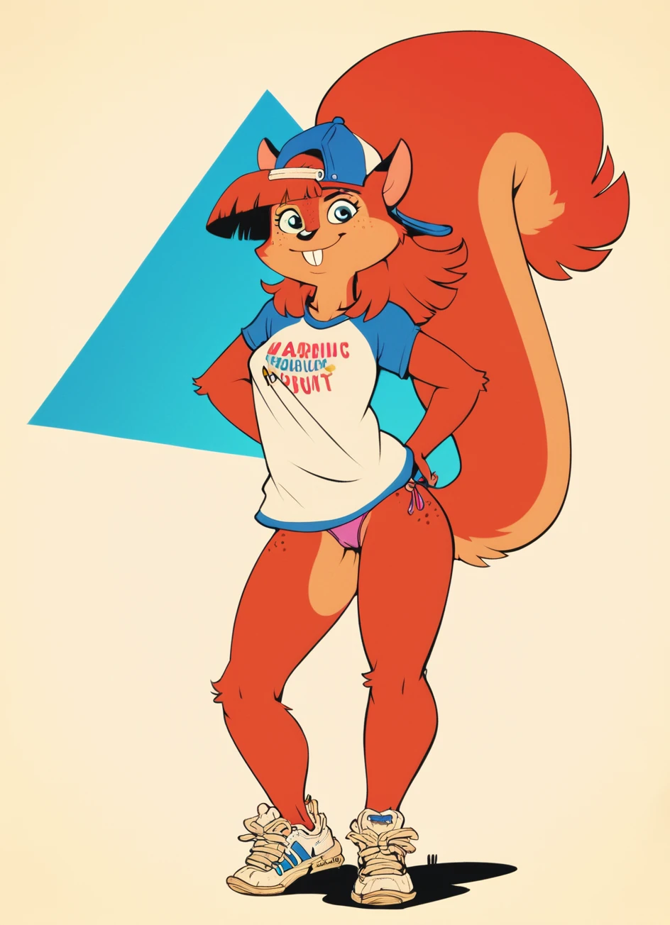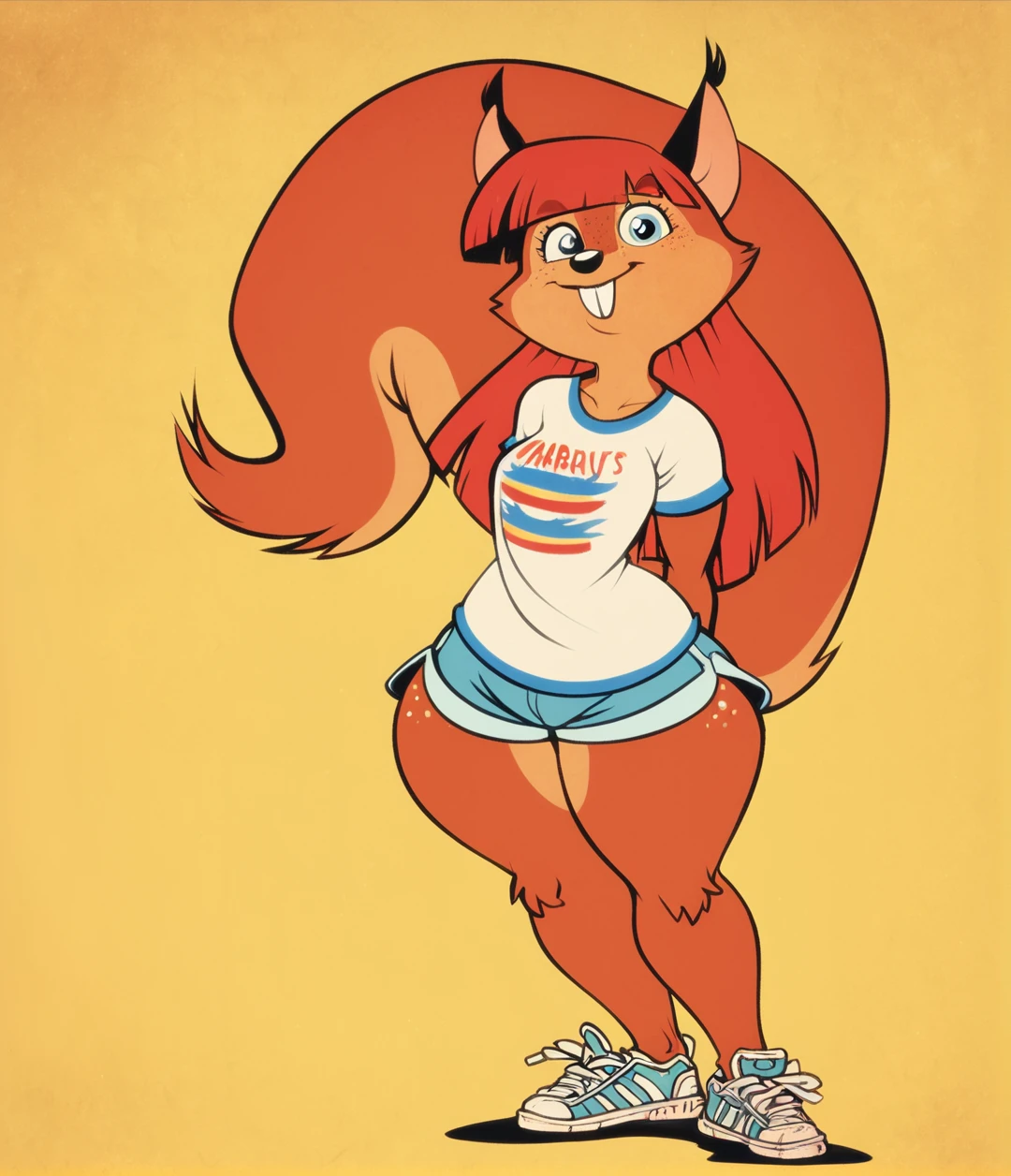 Reinforcement Tags: long bangs, freckles on face, blue eyes, tail, squirrel, buckteeth