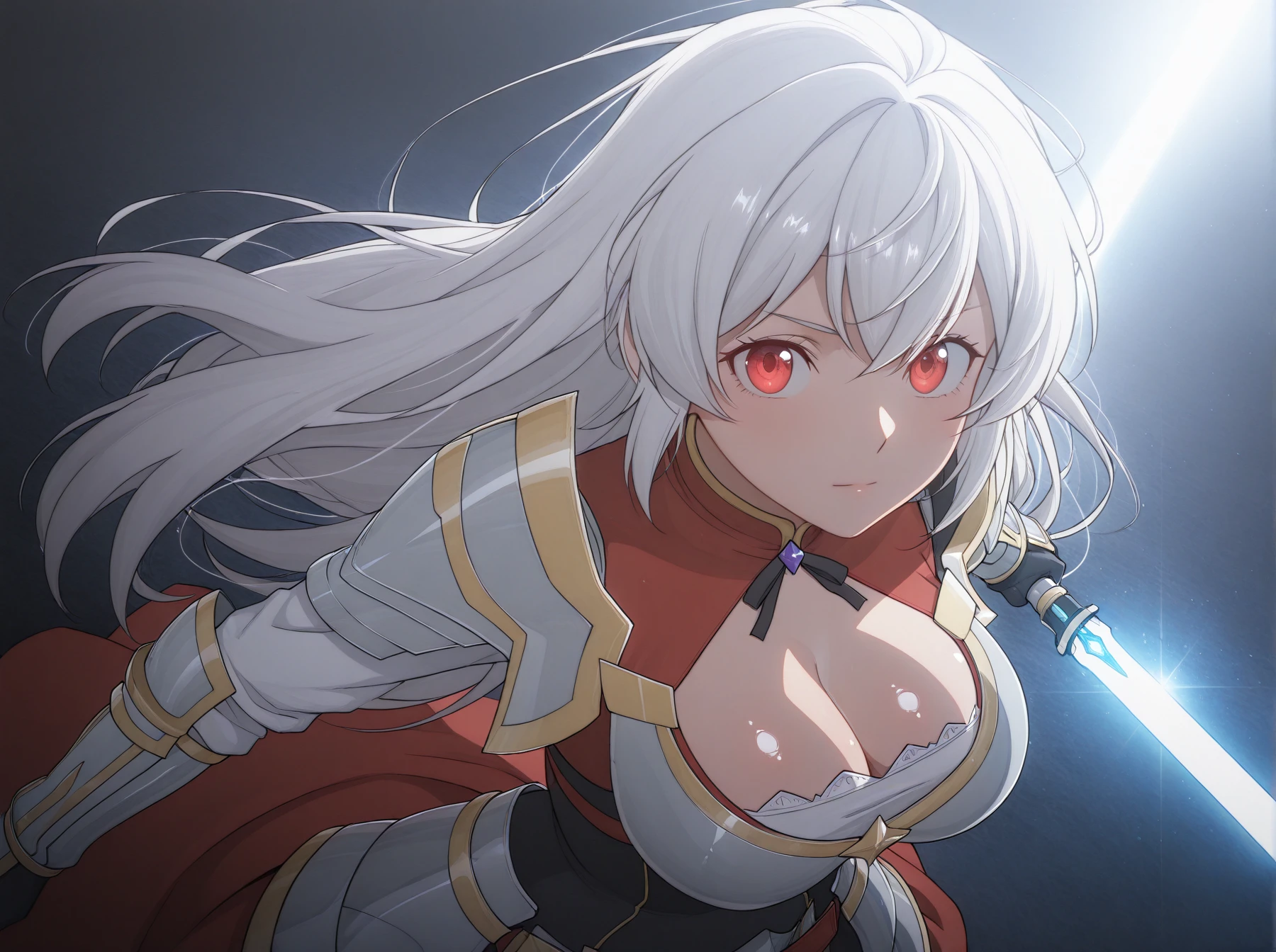 Character: (NazunaMugen, red eyes, white hair, long hair, wild hair)
