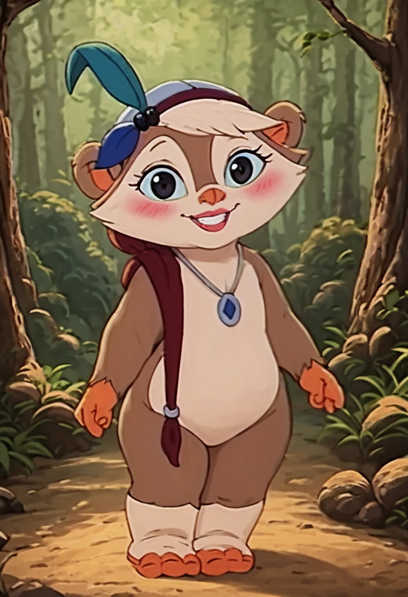 Latara (s2), ewok, 2 tone body, brown body, white body, 2 fingers, 1 thumb, 3 toes, ewok ears, hood, feather accessory,