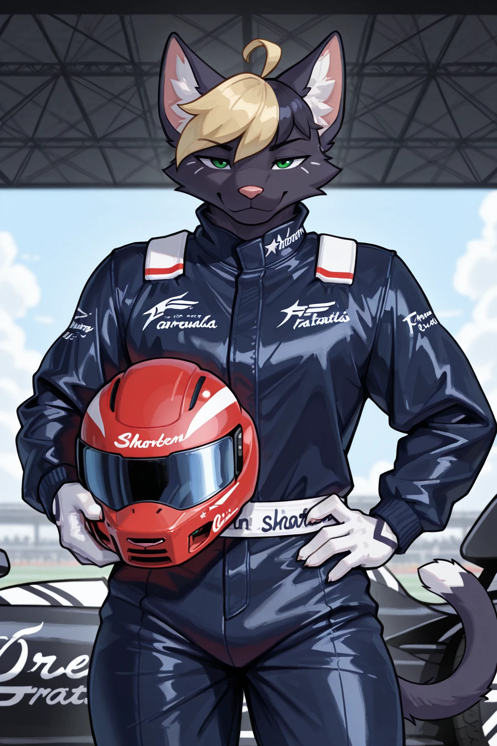 "A russian-blue cat who loves speed. Folmula 1 driver."