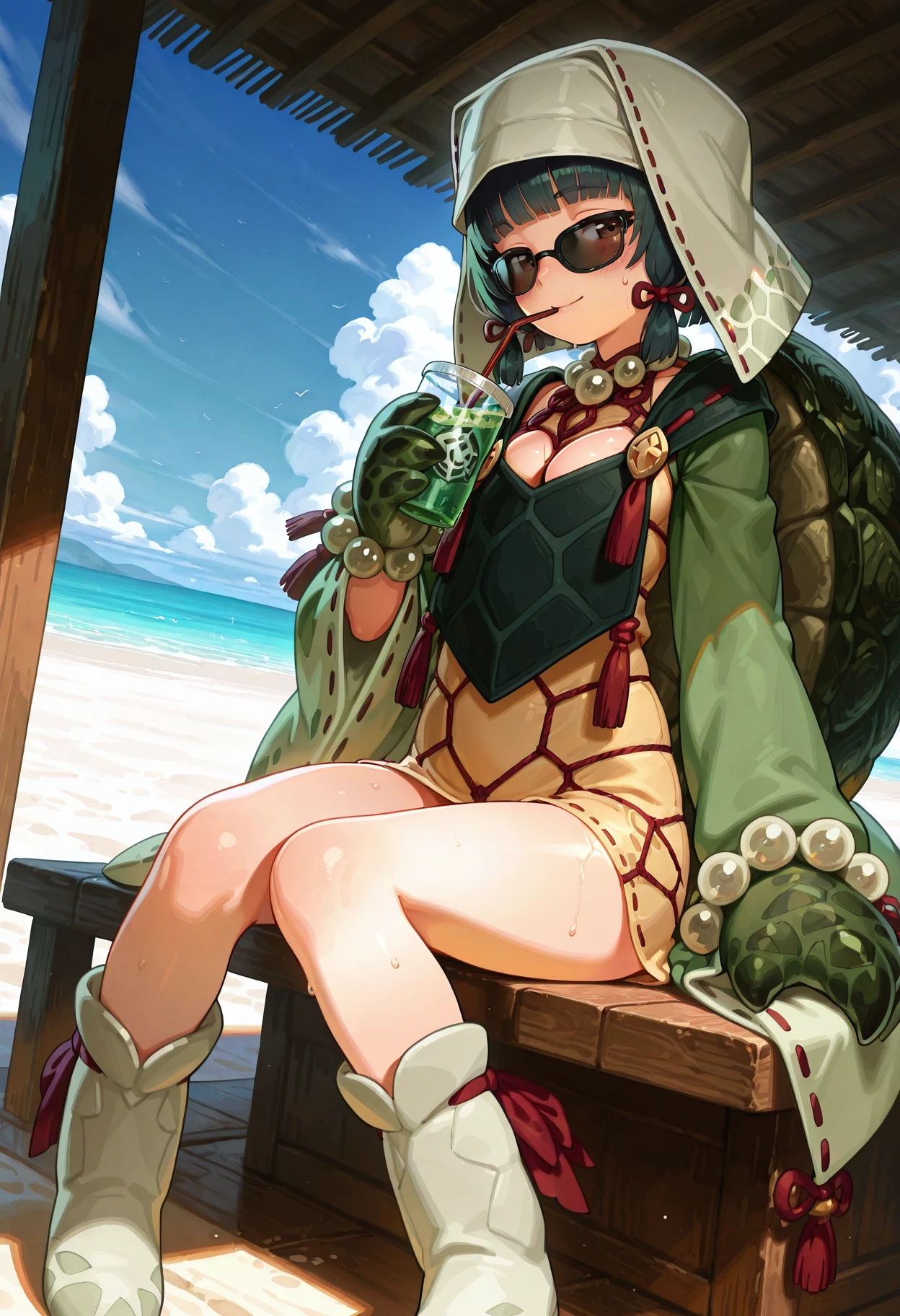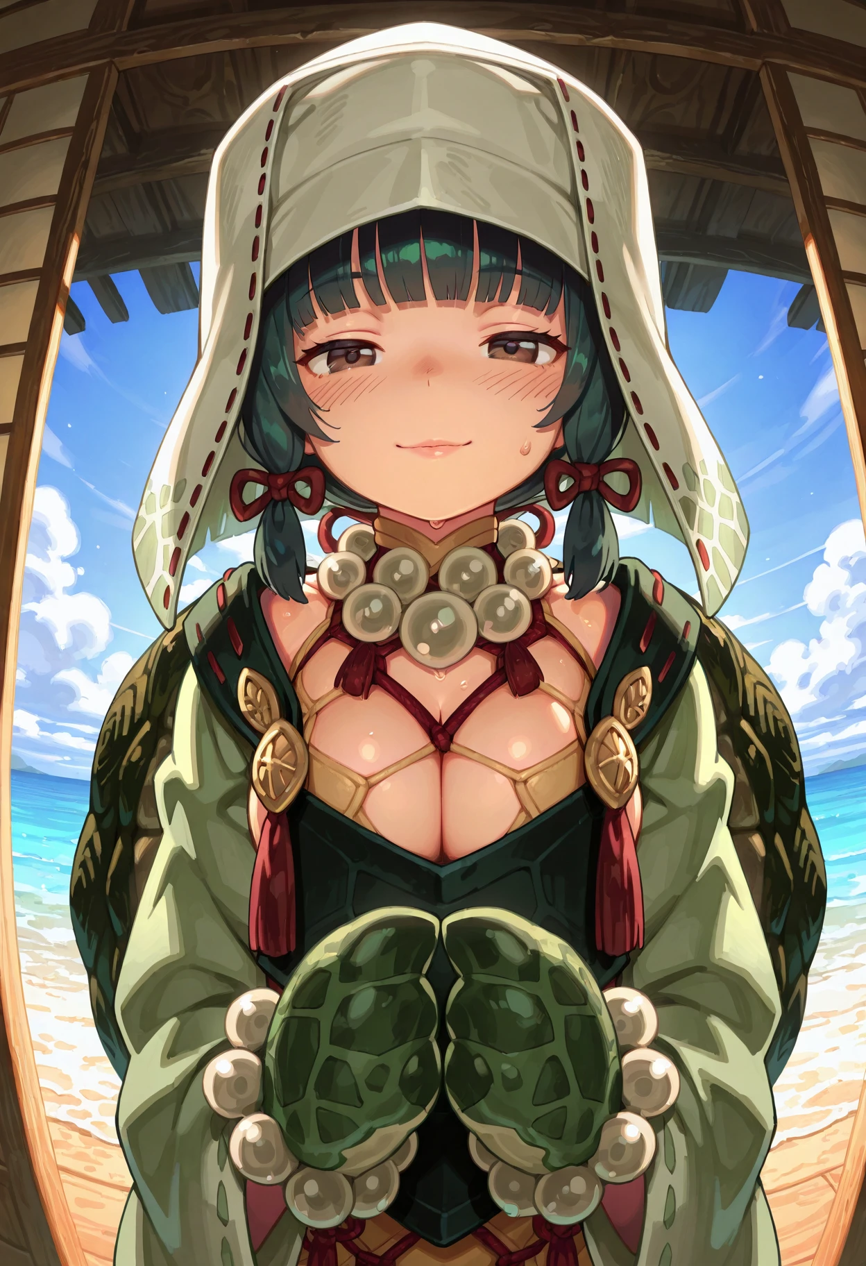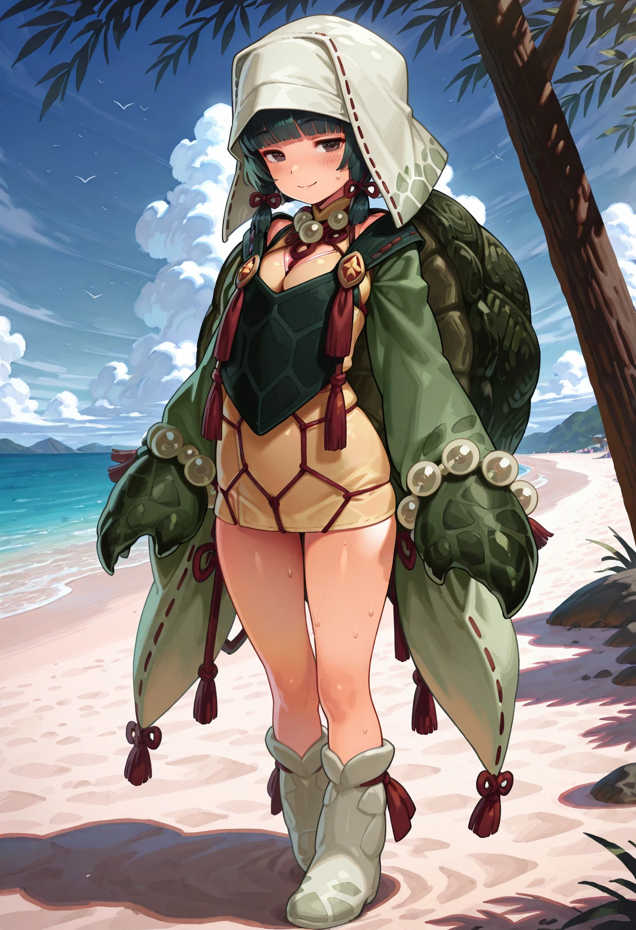 umioshomge, turtle girl, monster girl, animal arms, turtle shell👤 Character Appearance:
