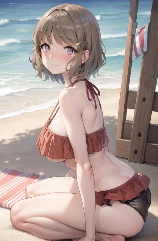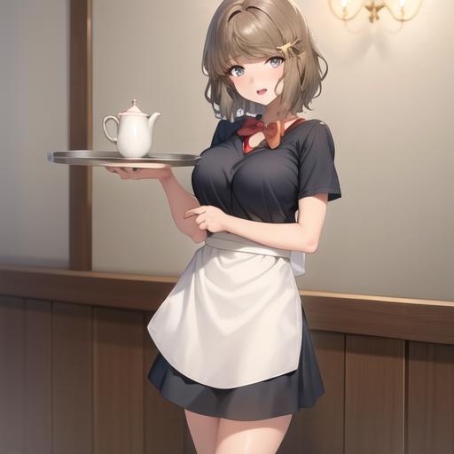 Casual outfit: Frilly shirt, denim shorts, shorts short,employee uniform/ waitress uniform(red colour), black apron,bowtie, frily swimsuit, red one piece swinsuit,
