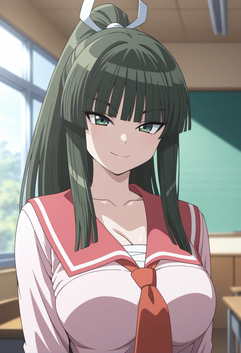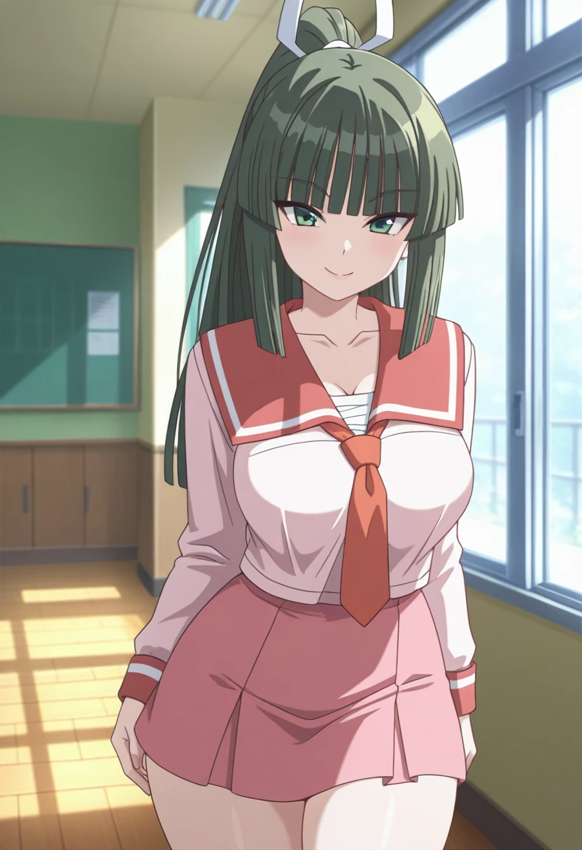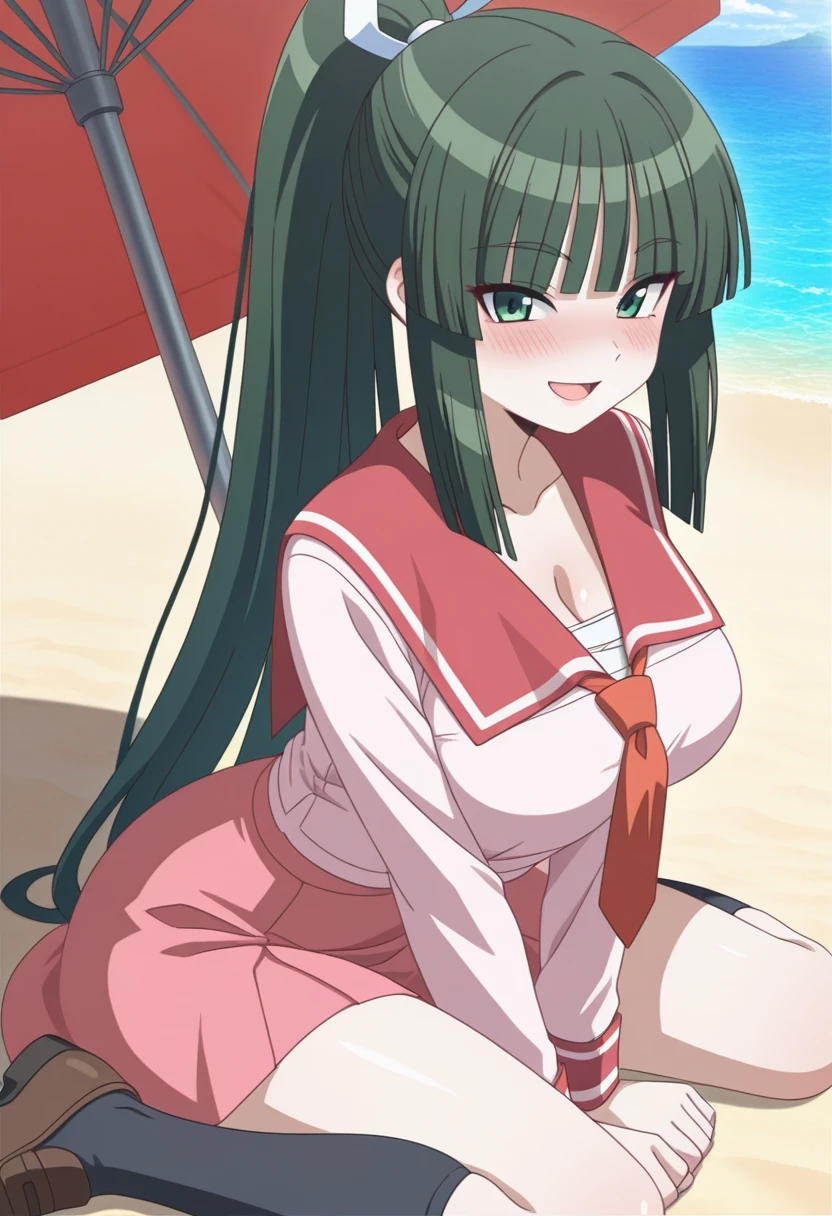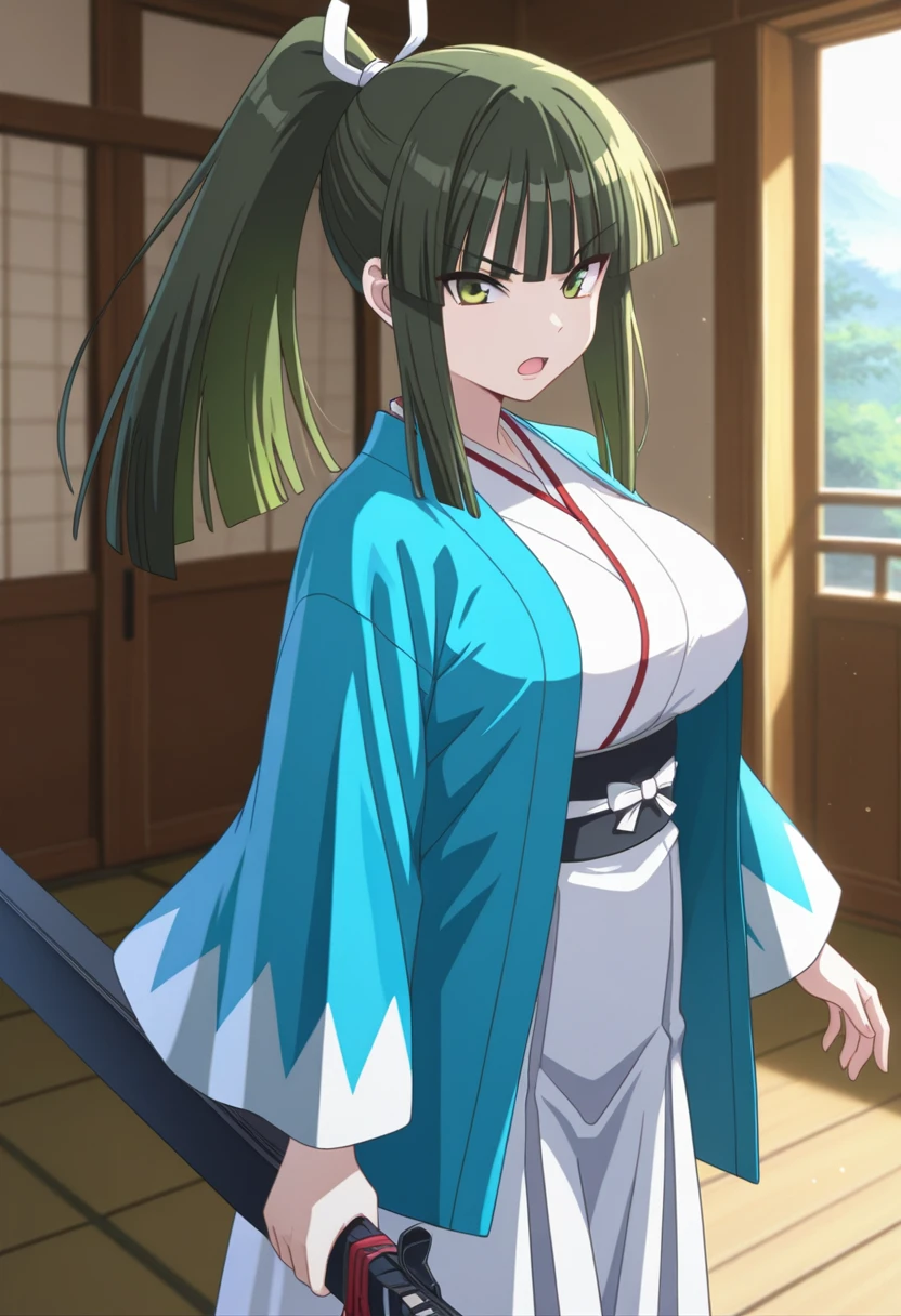 shiranui akeno, green eyes, green hair, long hair, very long hair, ponytail,