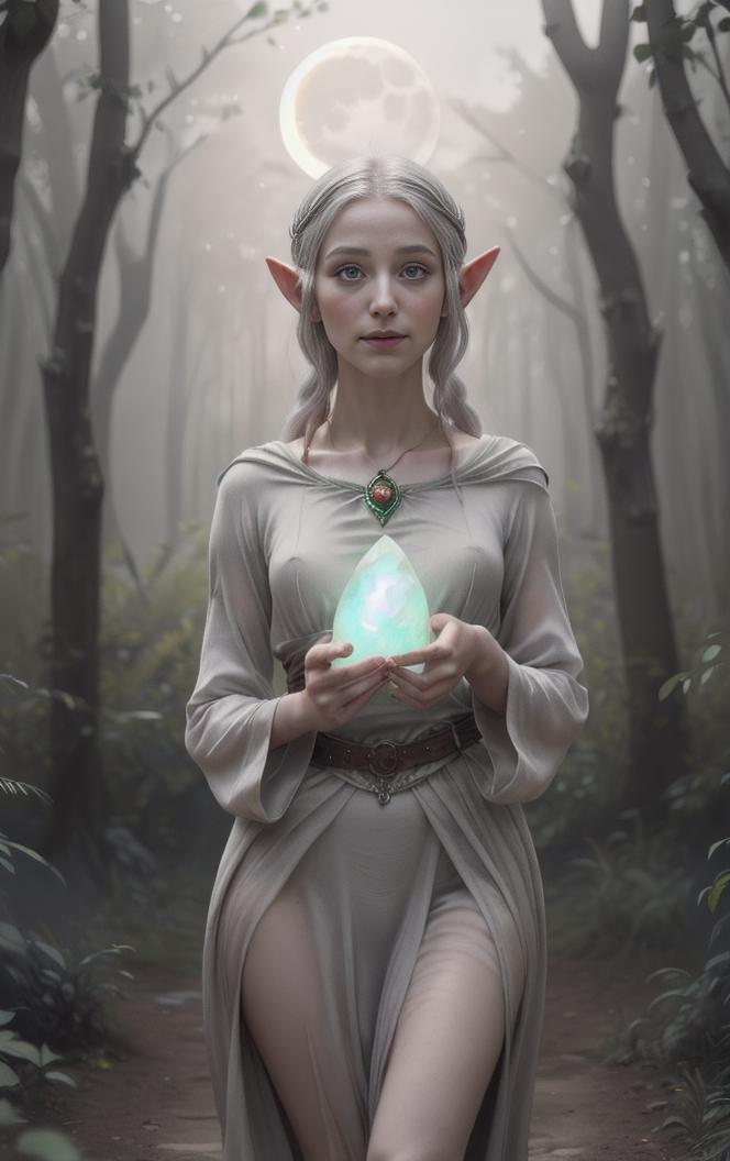 This WC provides s selection of female Elf Characters that belong to the Celtic-Saga. Here is an example: Embracing the ethereal qualities of organza and chiffon, the daughter of Moltinus is draped in garments that appear to shimmer with the very essence of nature itself. Delicate layers of fabric flow gracefully around her, mirroring the gentle movement of leaves in the breeze. Intricate laces, meticulously woven, adorn her attire, their patterns reminiscent of ancient Celtic symbols. Despite the ethereal quality of her attire, her figure emanates a palpable sense of fertility and vitality, accentuated by the soft curves that adorn her form.