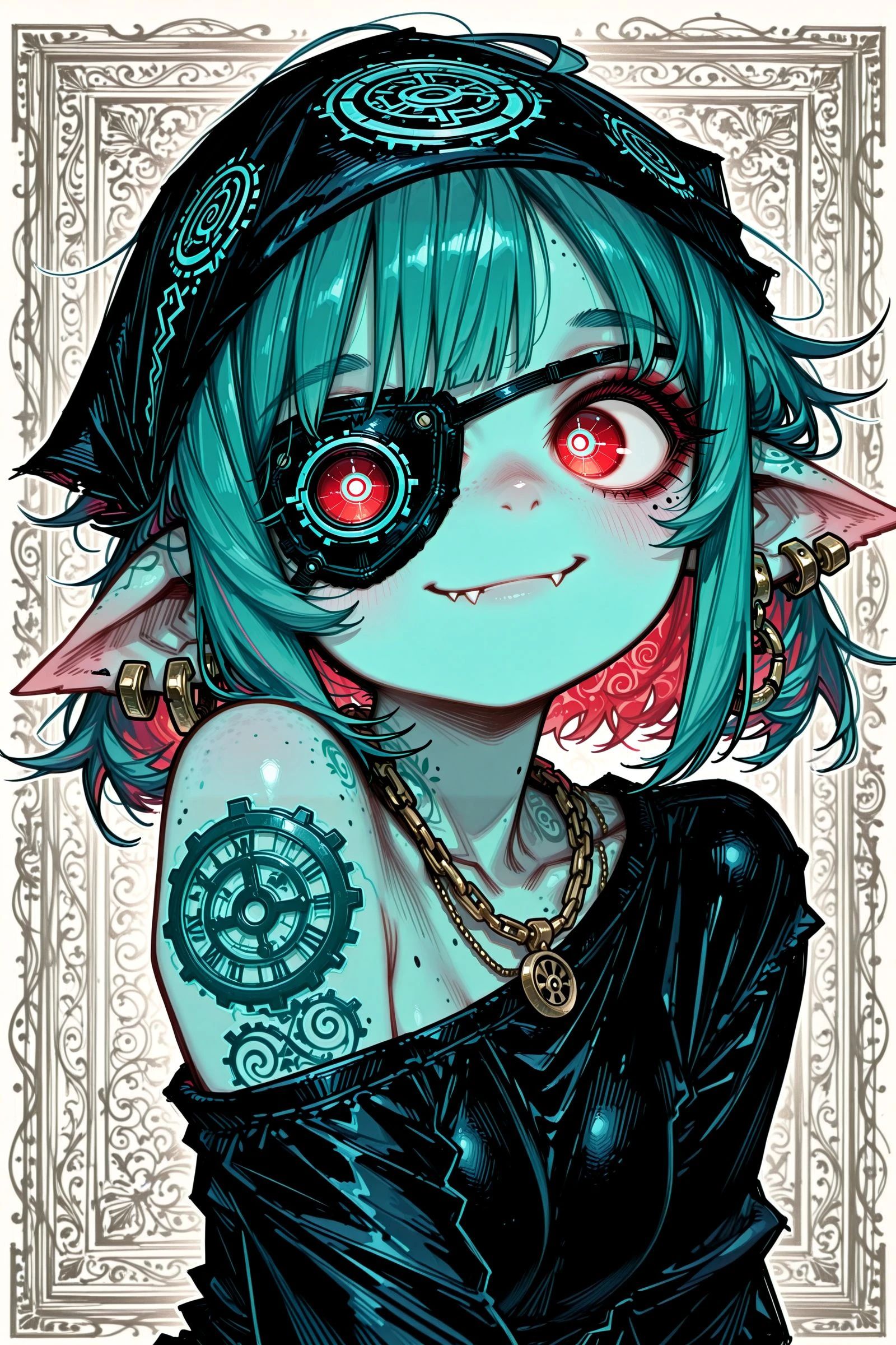 Weight: 1.0 - 1.3The LoRA is trained on images that frequently had two things in common. One, a white border that the images would often intrude into in some way, not unlike what might happen when you're illustrating with a Bristol board (at least in my experience). Two, the characters would more frequently than not have spiral, spinning shapes within their eyes.