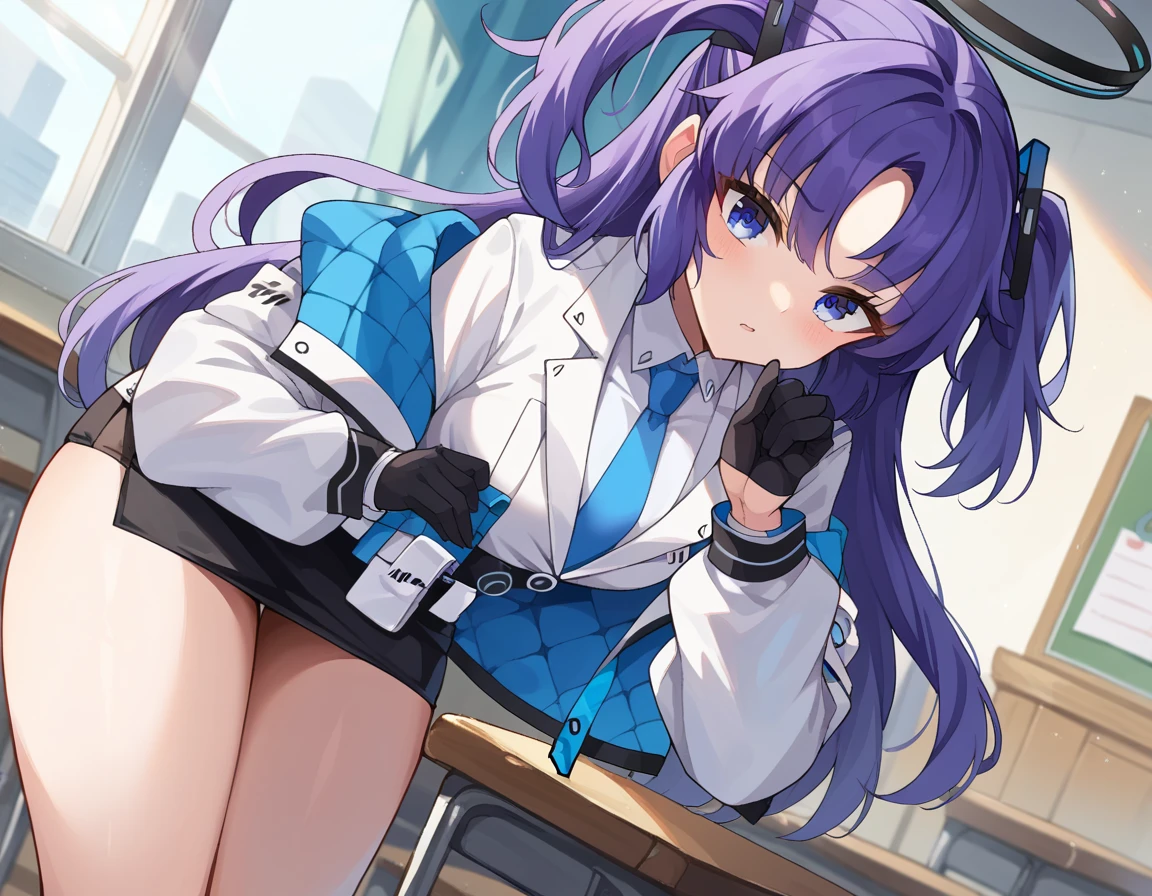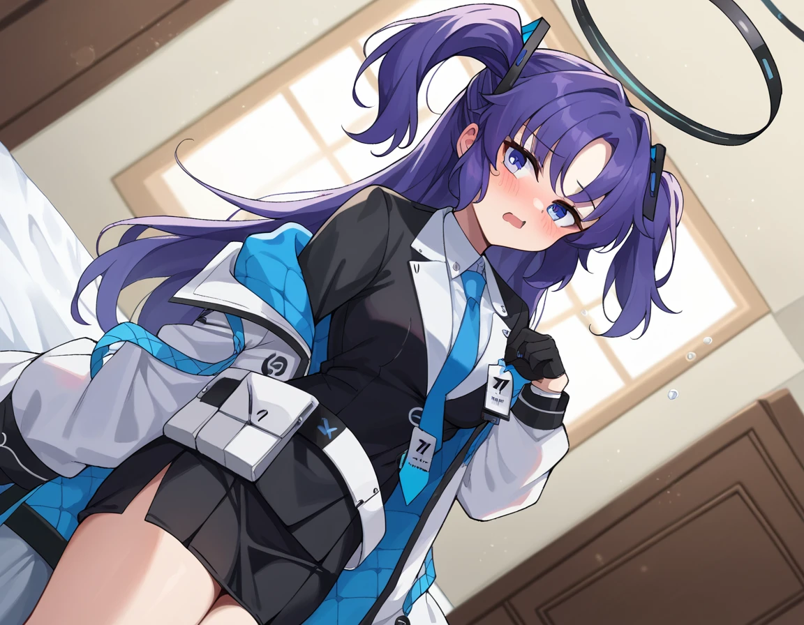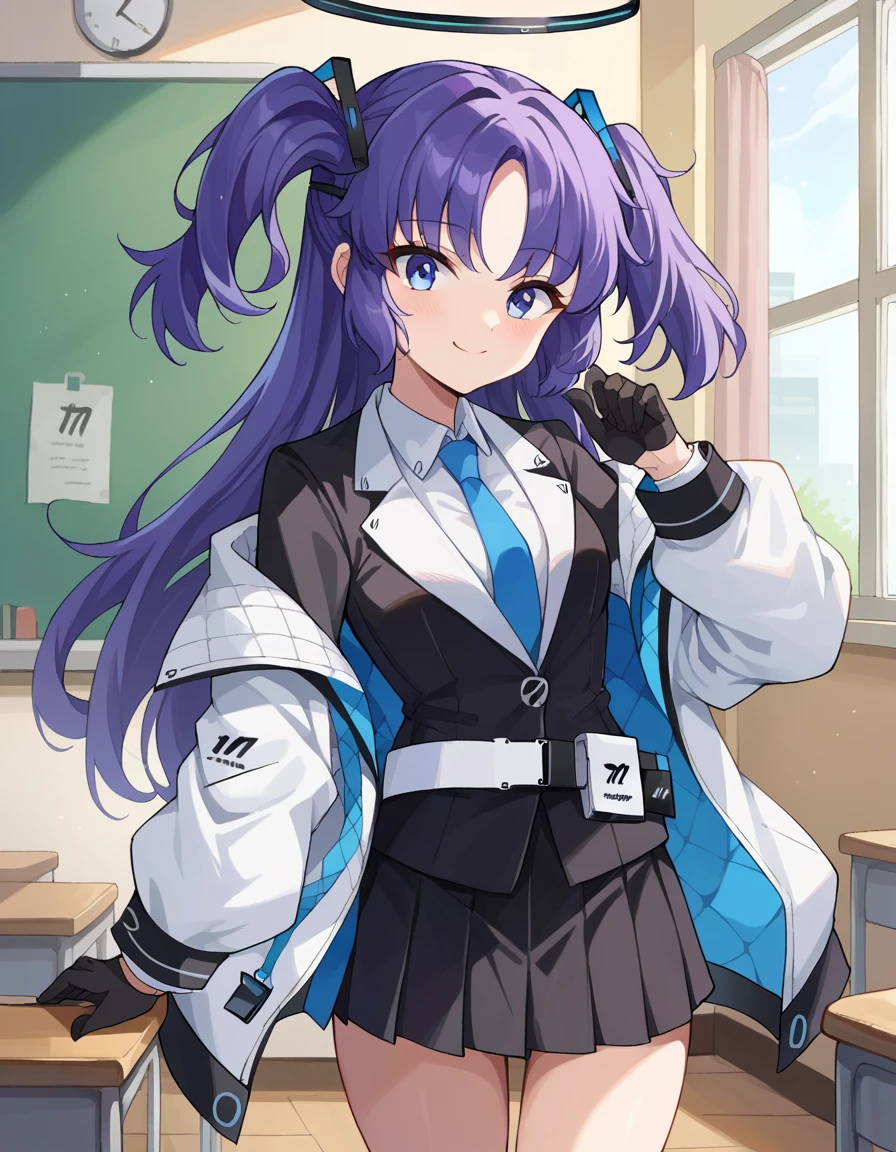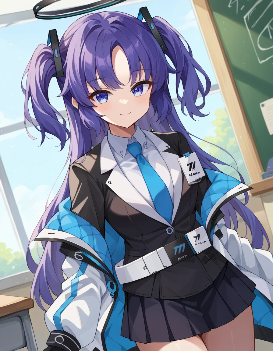 yuuka, blue eyes, halo, purple hair, two side up, long hair,