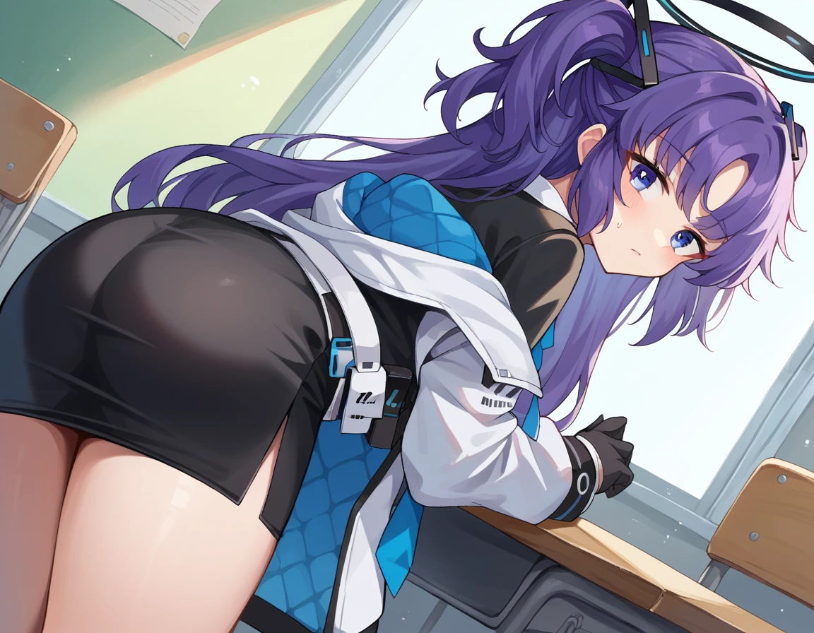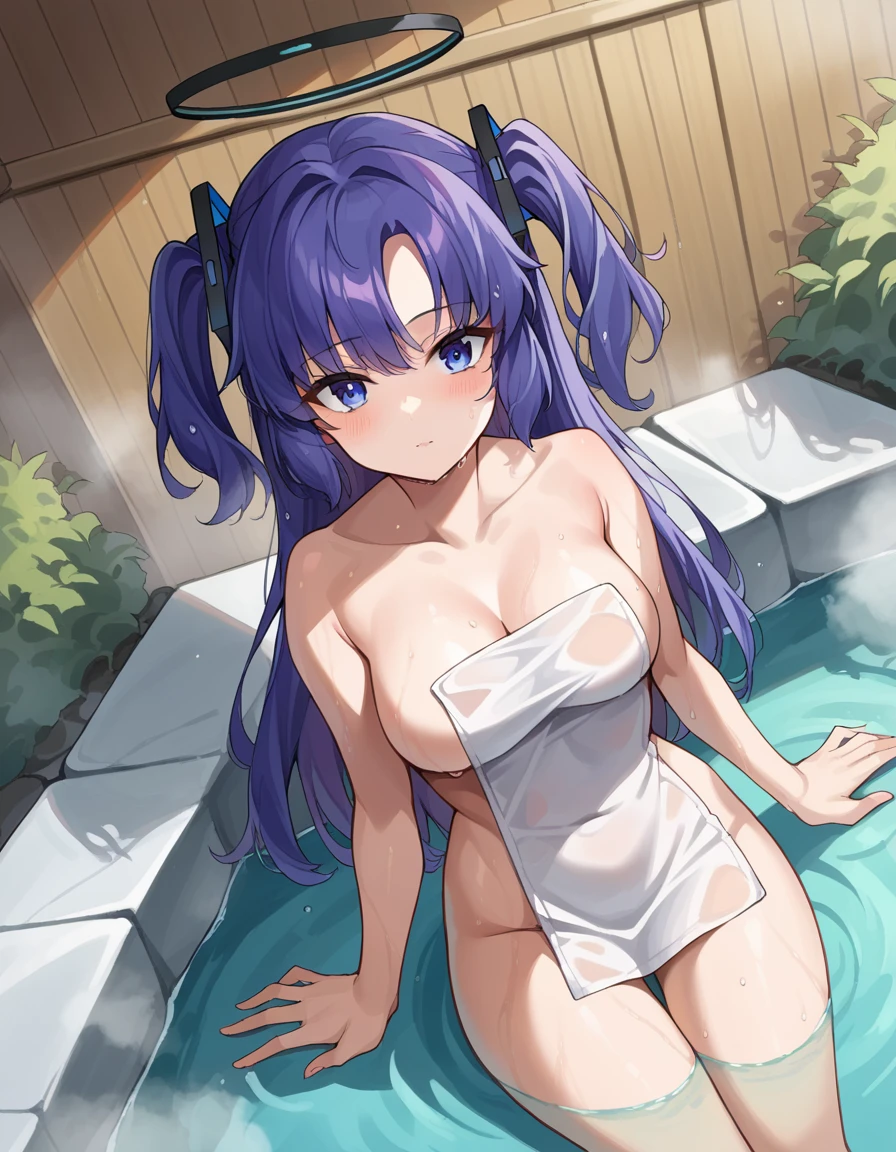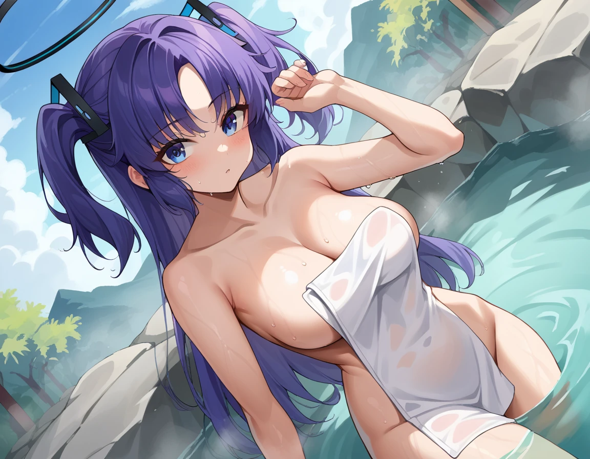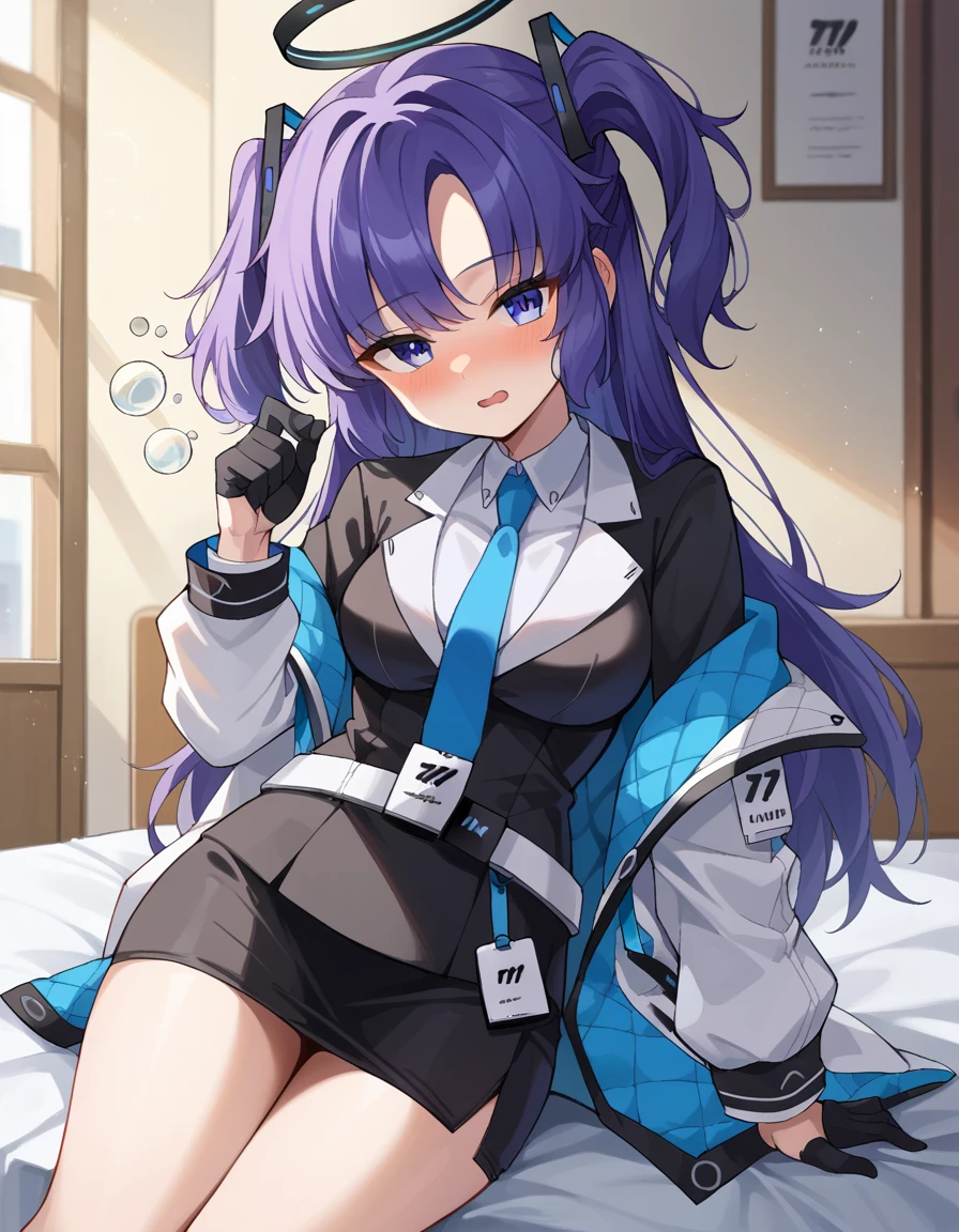 yuuka, blue eyes, halo, purple hair, two side up, long hair,
