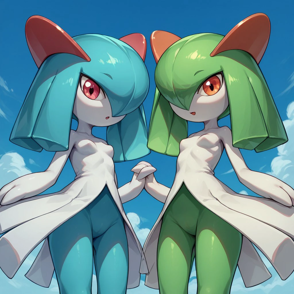 Shinykirlia, blue_hair, blue_skin, white_skin, Multicolored_skin, shiny_pokemon