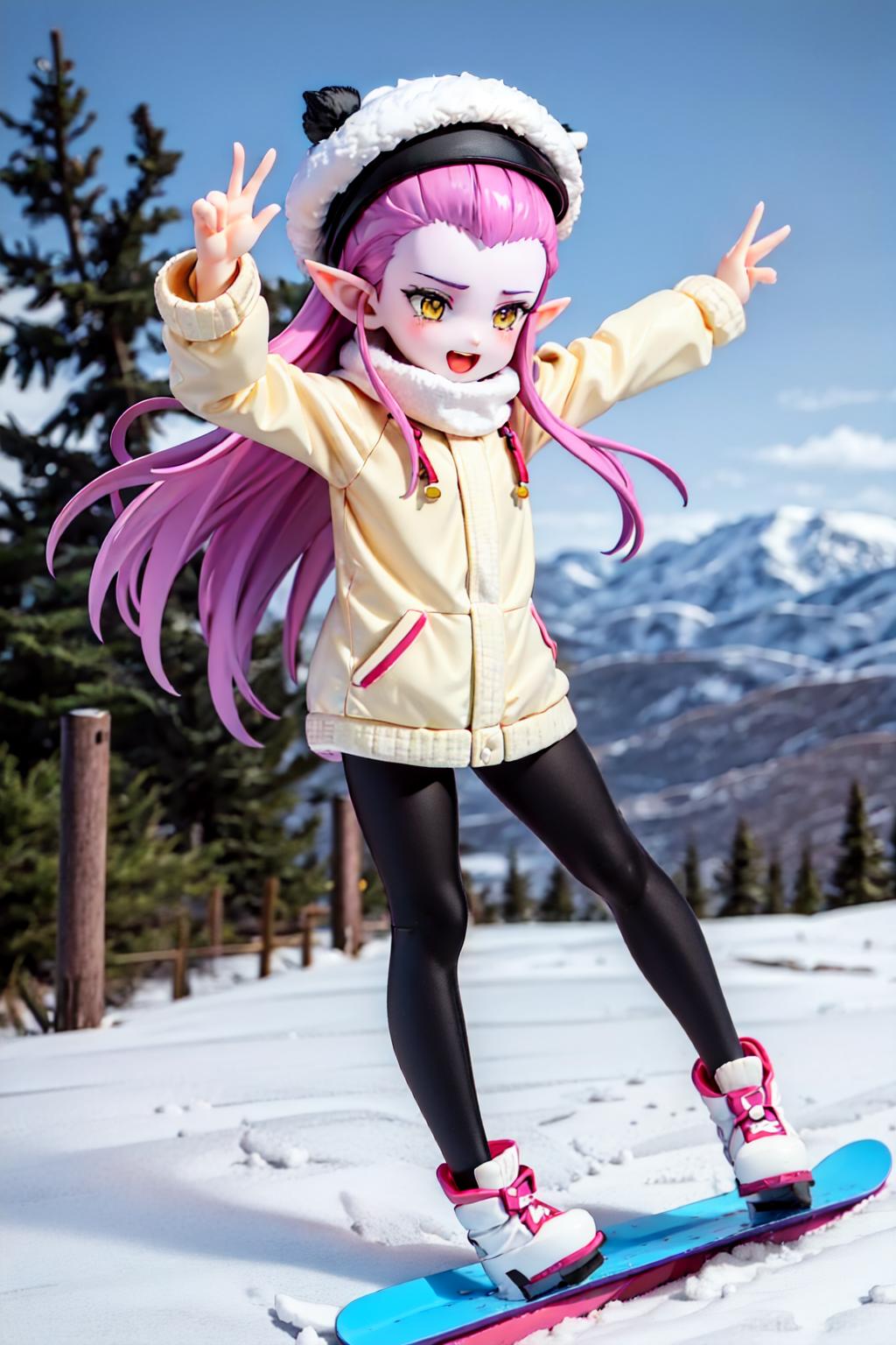 About the LoRA, her appereance is cocotte, 1girl, purple skin, pointy ears, long hair, yellow eyes, purple hair, purple lips. As always, I'll leave examples in the gallery, I didn't inpaint or adetailer anything, so there's always room for improvement. All the pictures are made with weight 1.