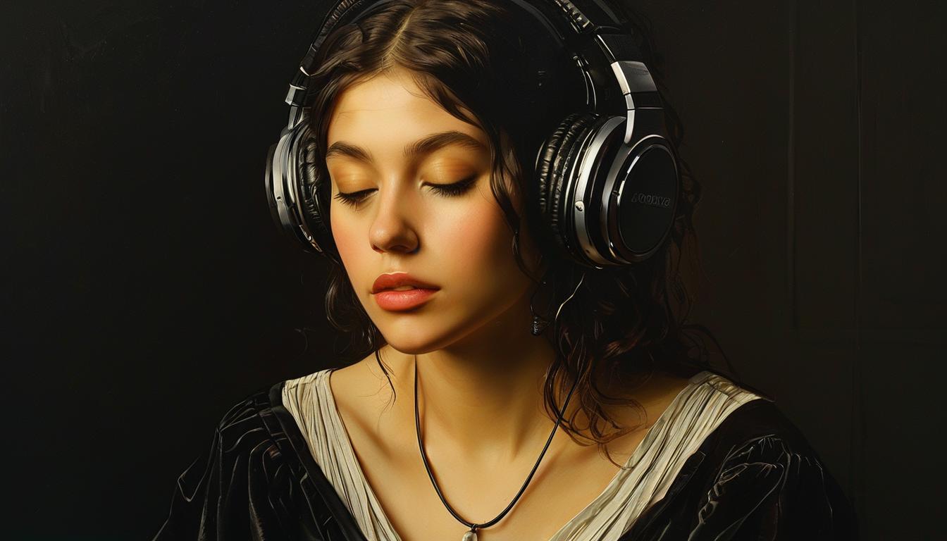 "The Classic" style is a fusion of historical aesthetic with modern technology, where traditional elegance meets contemporary convenience. The attire features a vintage-inspired dress with rich textures and ornate accessories, reminiscent of renaissance or baroque fashion. The overall effect is one of timeless grace coupled with the functionality of today's digital world.