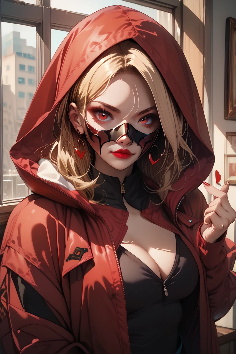with mask, gray hair (Note that her hair is between blonde and gray, so you can use)