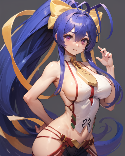bow, ribbon, sidelocks, bare shoulders, halterneck, backless outfit, sideboob, pants, lowleg pants,