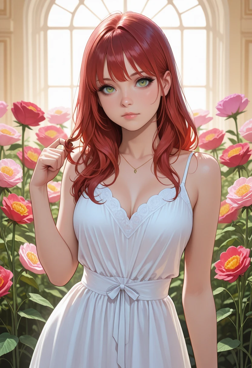 UDAshley, 1girl, closed mouth, red hair, green eyes, long hair, beanie