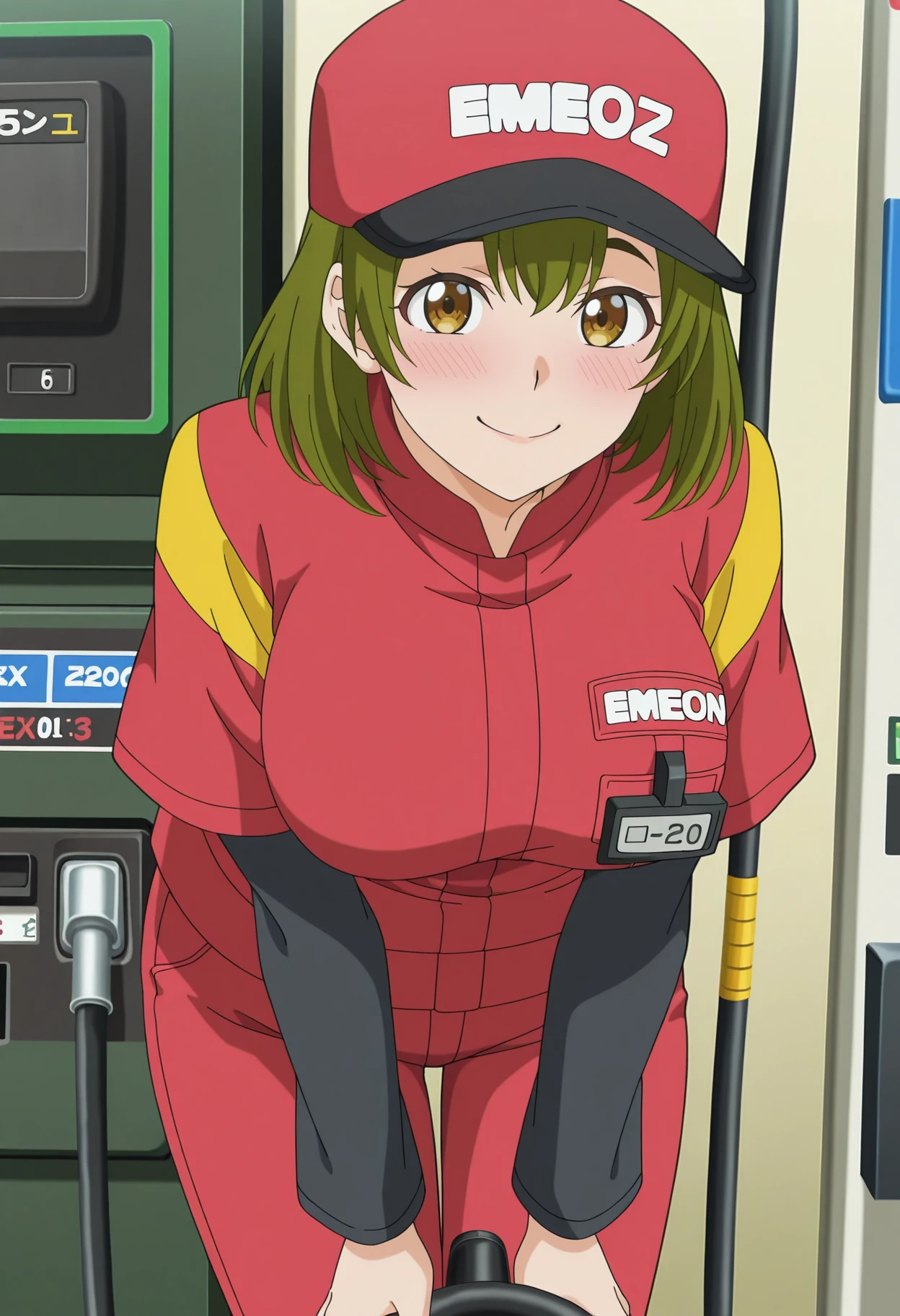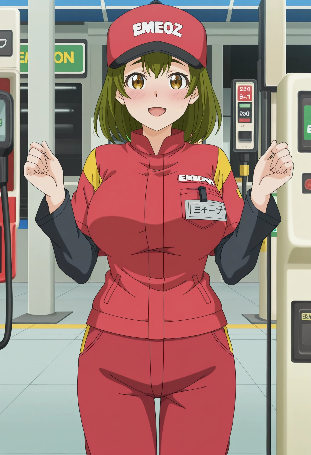 A well-endowed gas station employee.