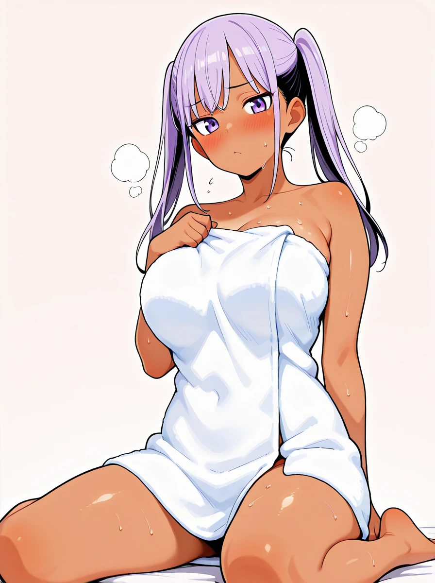 bangs, sidelocks, purple hair, purple eyes, purple and black hair, twintails, dark-skinned female, dark skin, nana yamada