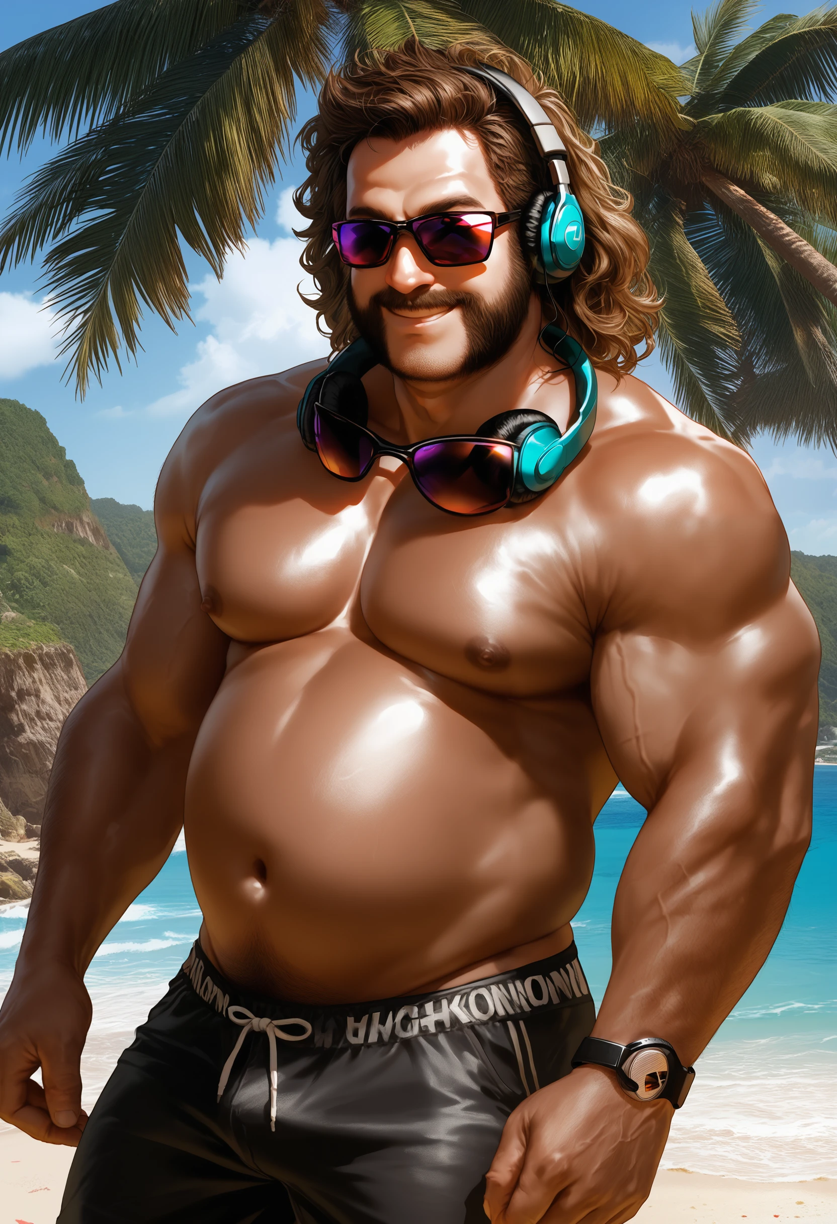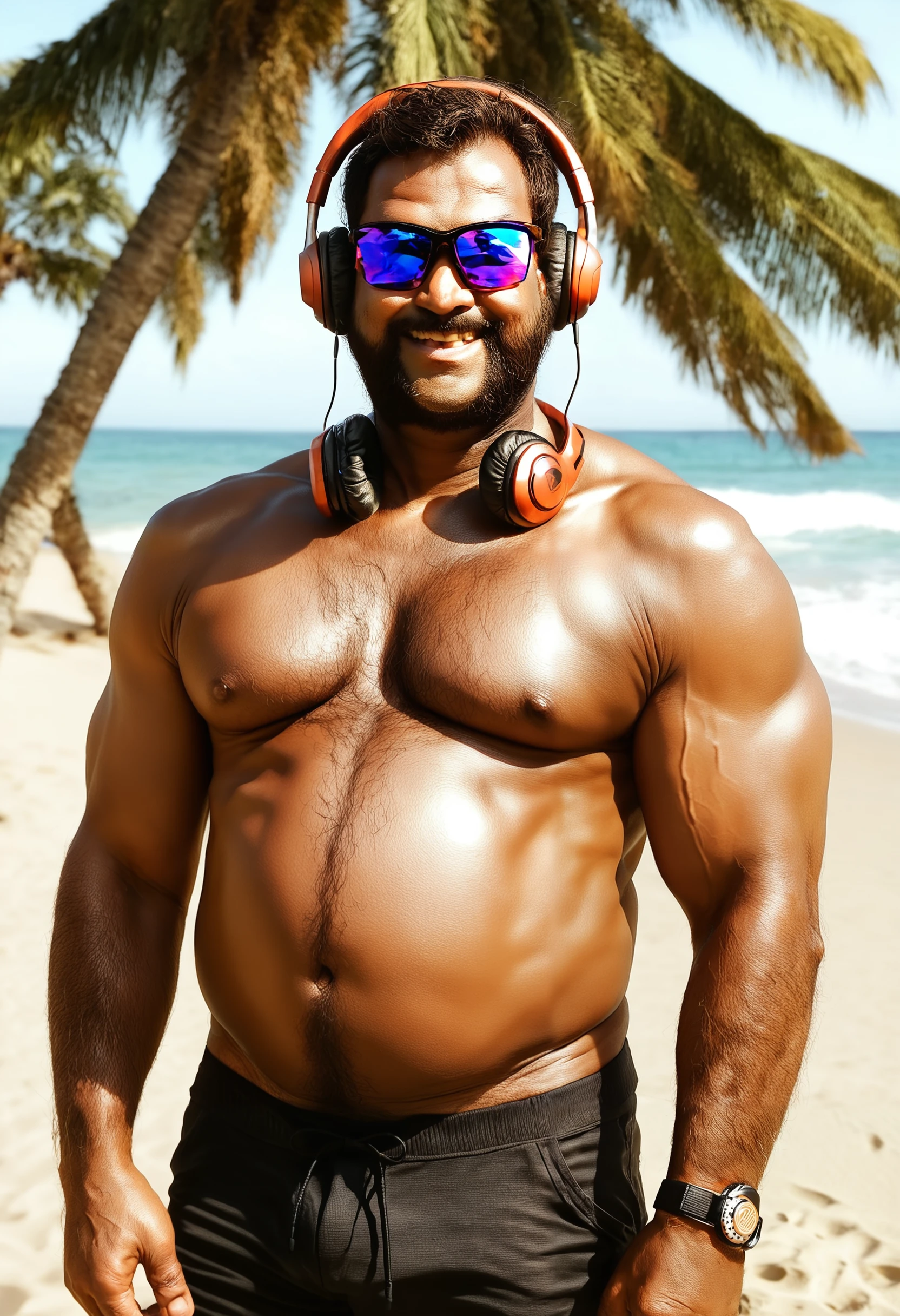 Zebo: real_toonzebo man, brown skin tone, wavy hair, light mutton chops beard, shaved chin, brown skin tone, fat