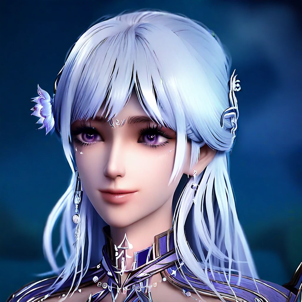 Sheng Cai Er: Cai Er, white hair, hair ornament, long hair, purple eyes, lips