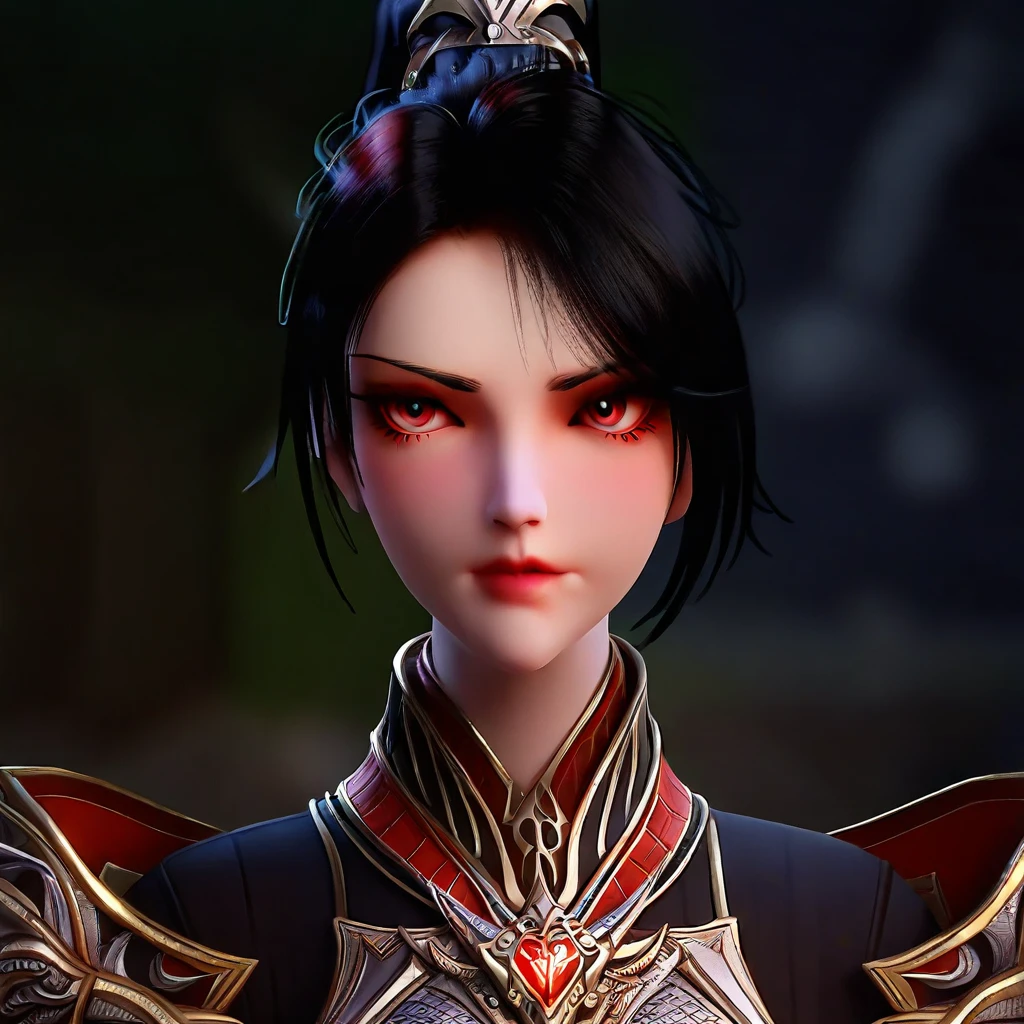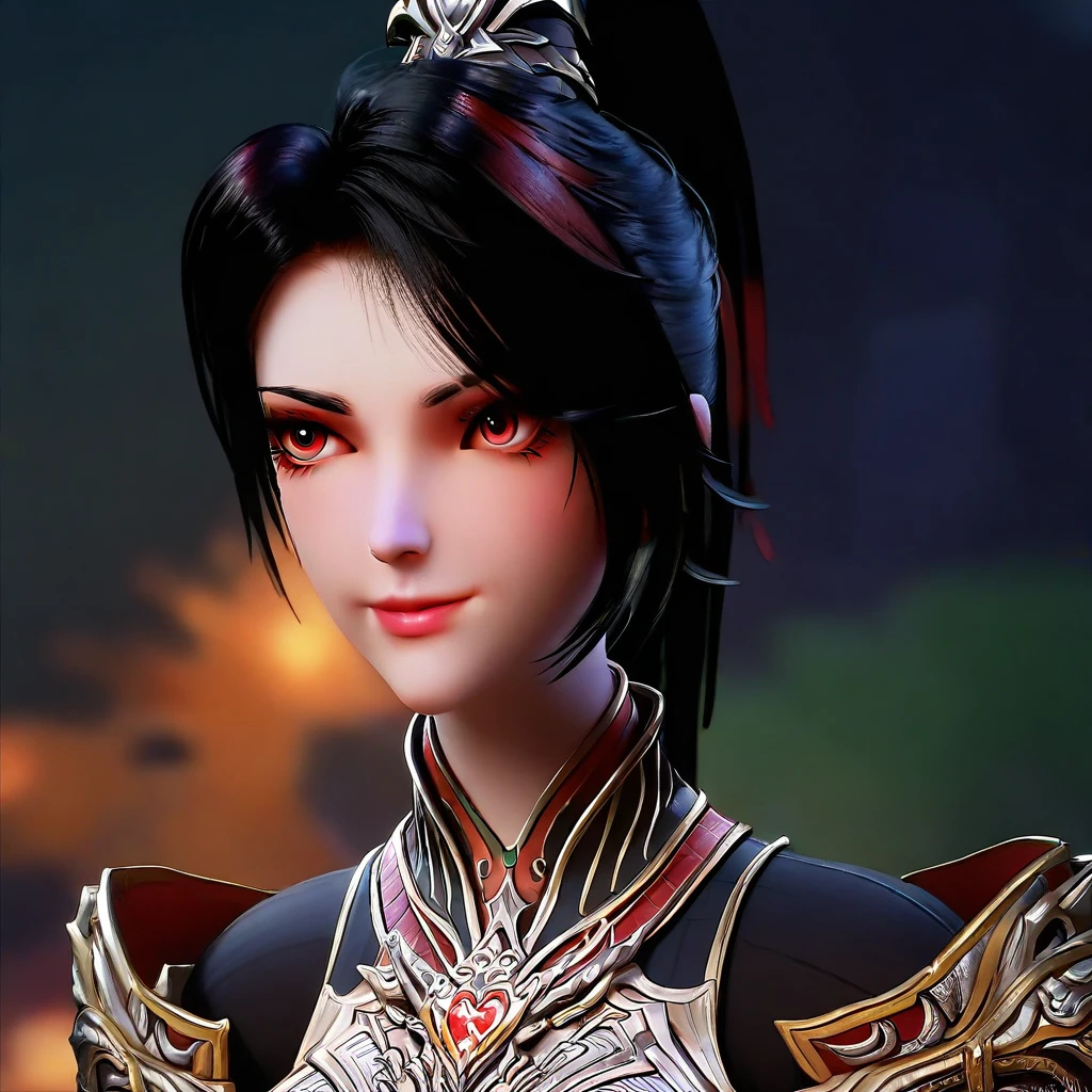 The supreme waifu Wang Yuanyuan: Wang Yuanyuan, high ponytail, red eyes, red lips, armor