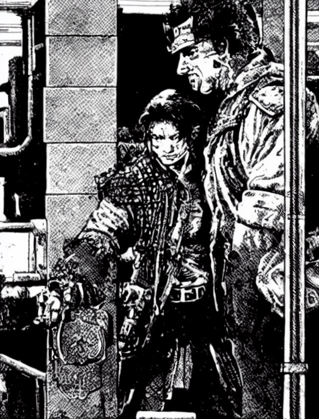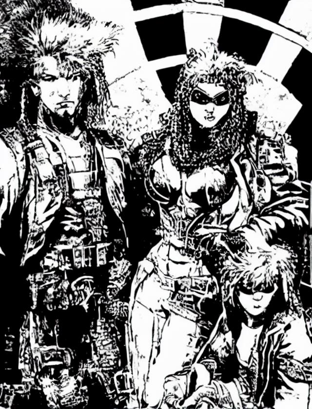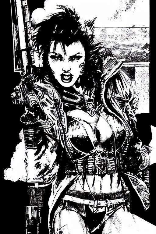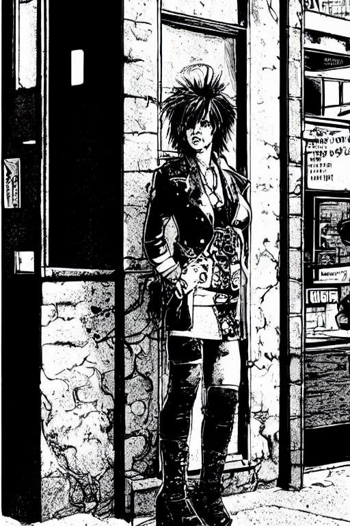 Envisioning a dystopian cyberpunk future ruled by a fusion of man and machine, dreaming up how such a world would look and feel. Back in the late 1980s and early 90s, an exciting new world opened up with RPG's like Shadowrun. Those books' imagery took the reader into a dystopian future by illustrating the cyberpunk world with high contrast, messy and partially disturbing black-and-white ink images. This unique style was used by various artists during that time, just before the advent of computer-aided drawing tools. This model is trained on imagery and drawing techniques employed during that period.