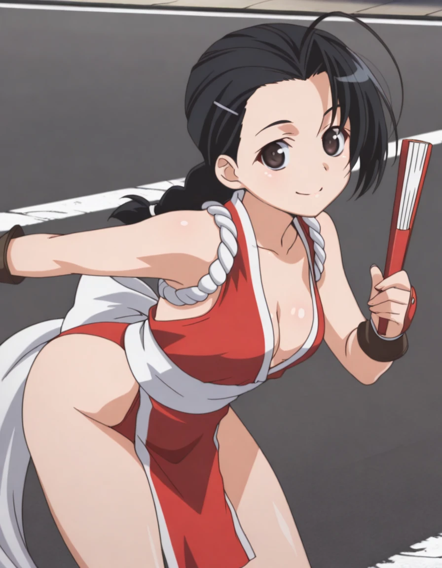 kozue kuranaga, black hair, twintails, braid, ahoge, black eyes, twin braids, mature female, small breasts, anime screencap