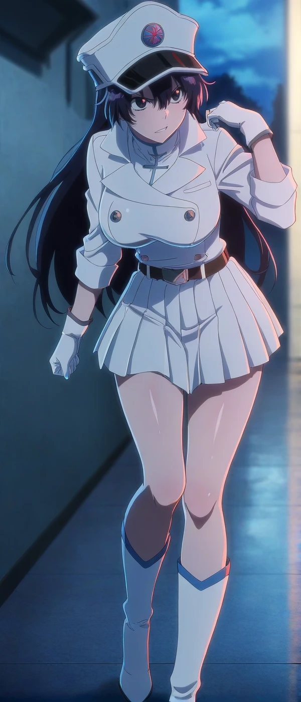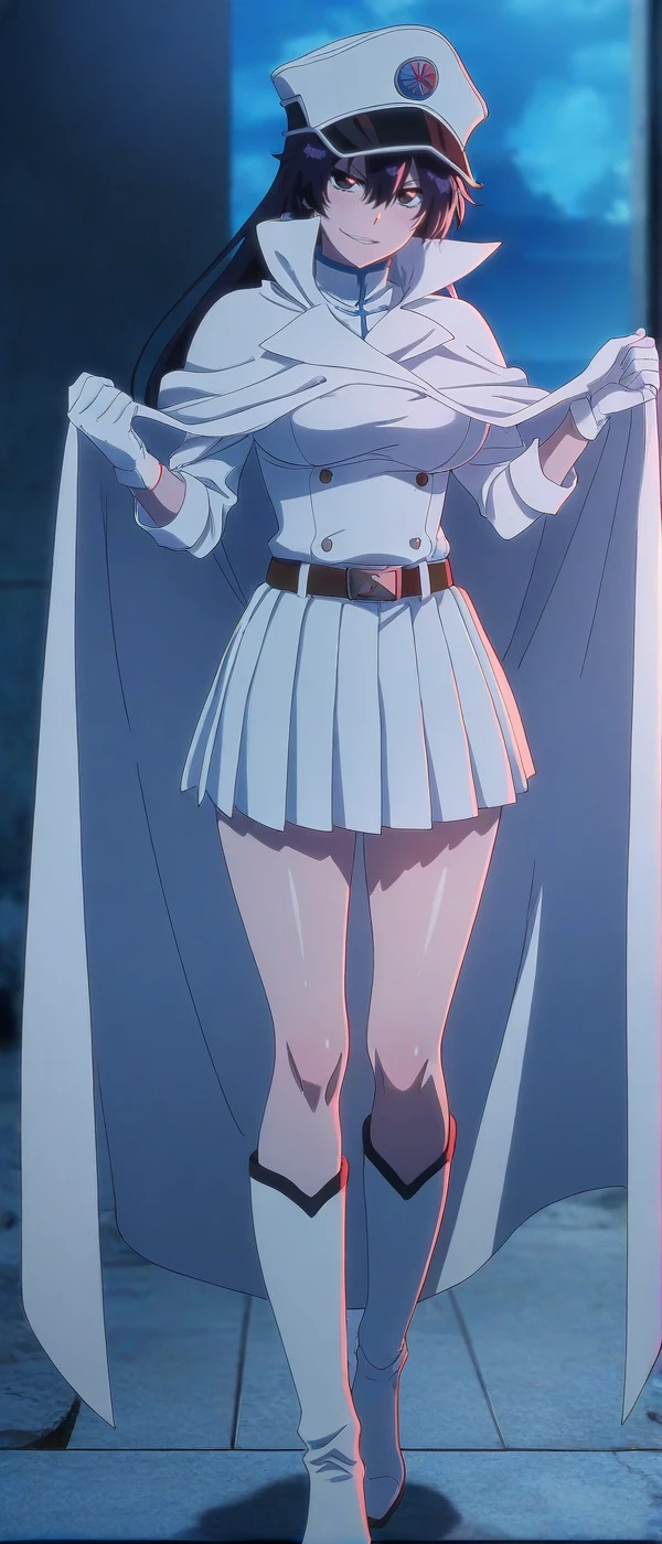 skirt, pleated skirt, belt, boots, gloves,hat, peaked hat, cloak,