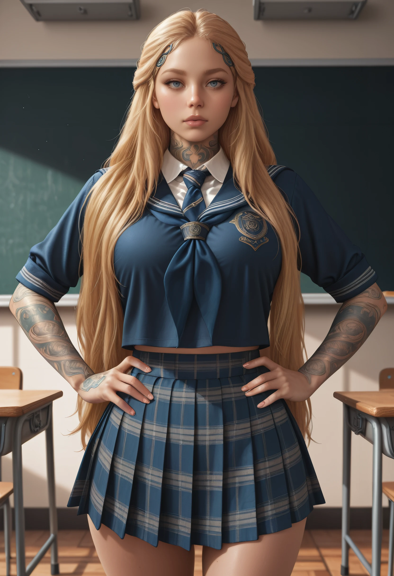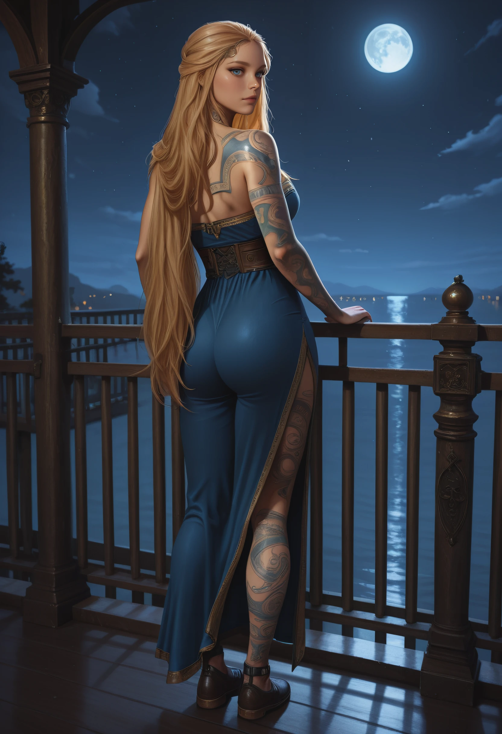 GOWSif, 1girl, blonde hair, blue eyes, long hair, tattoo