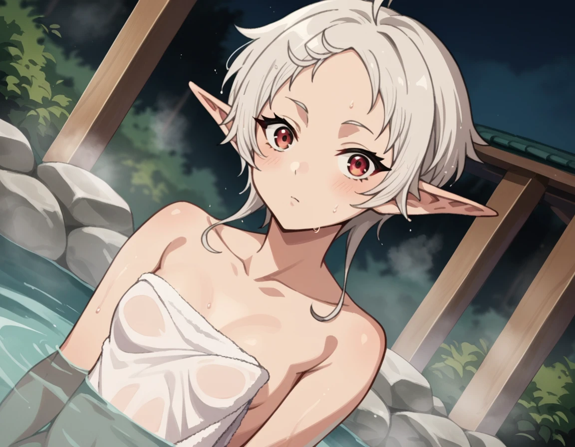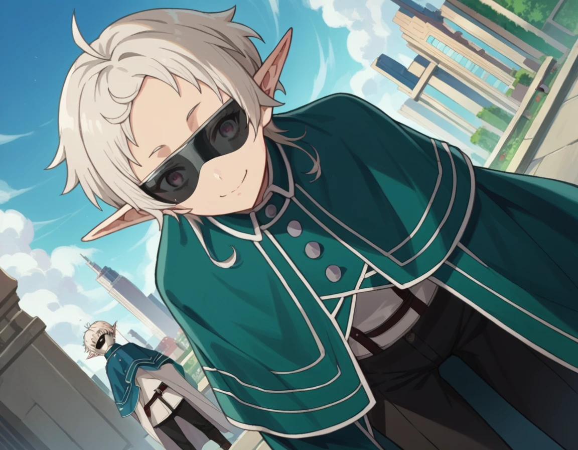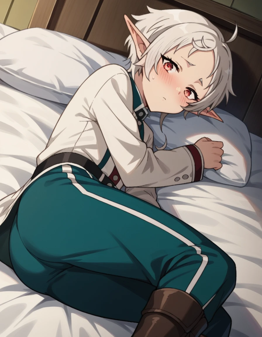 sylphy, short hair, ahoge, white hair, pointy ears, elf,